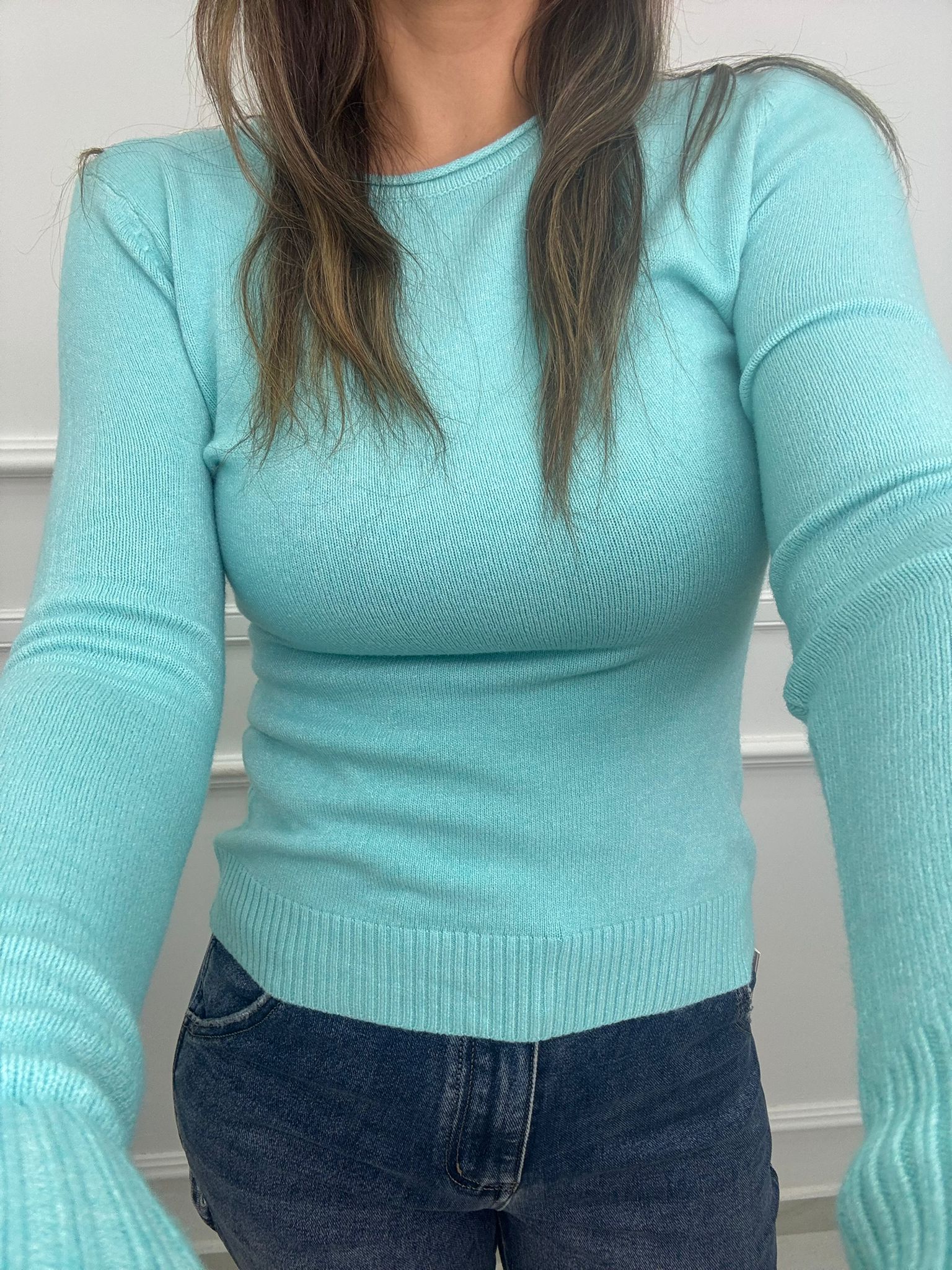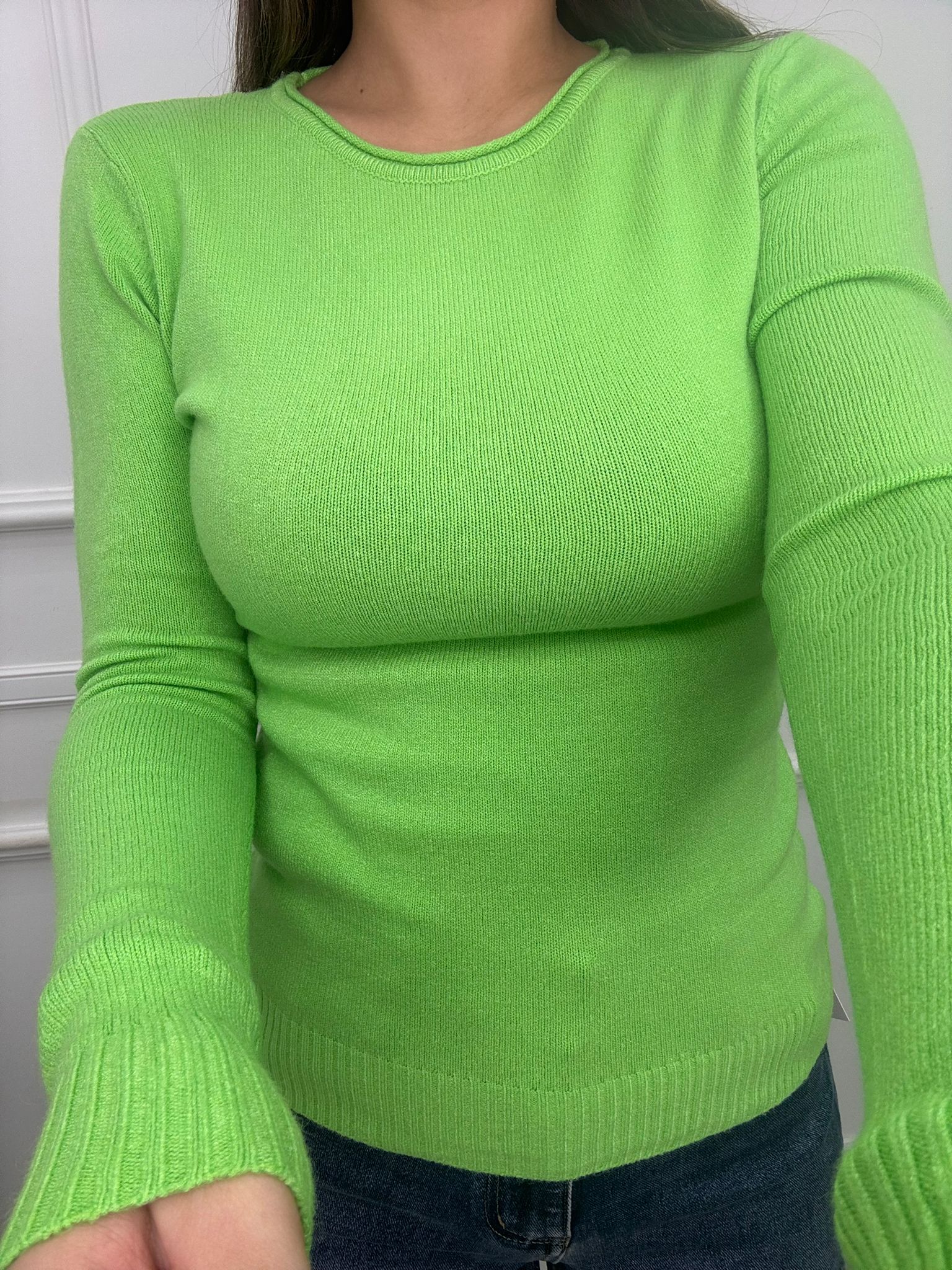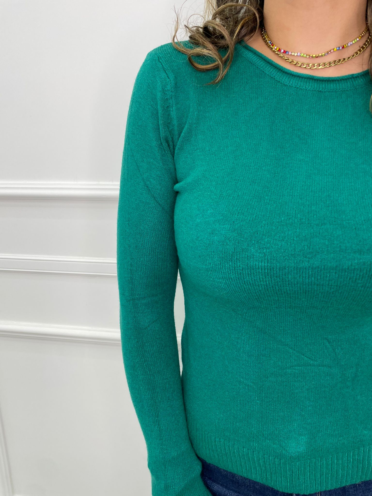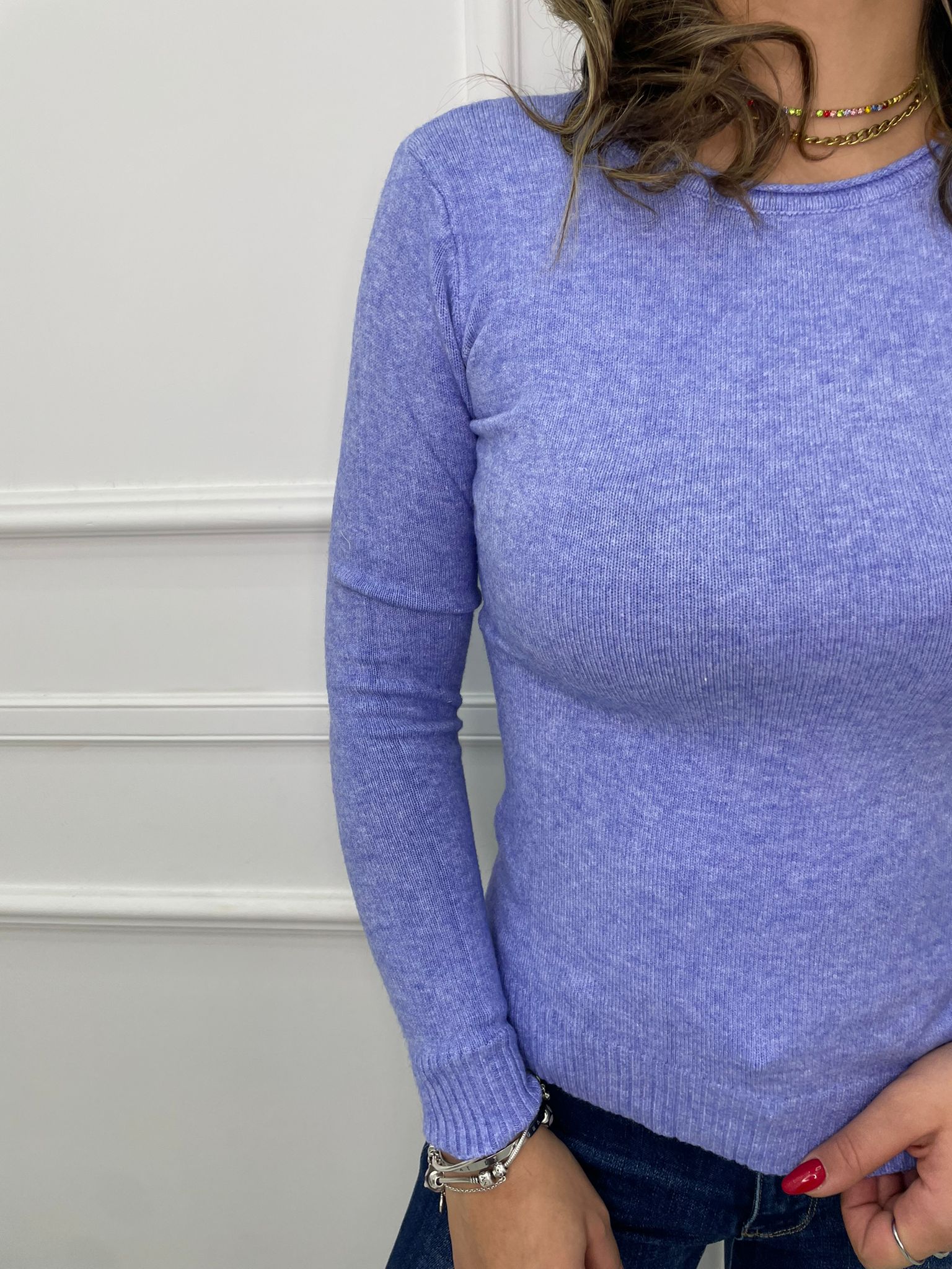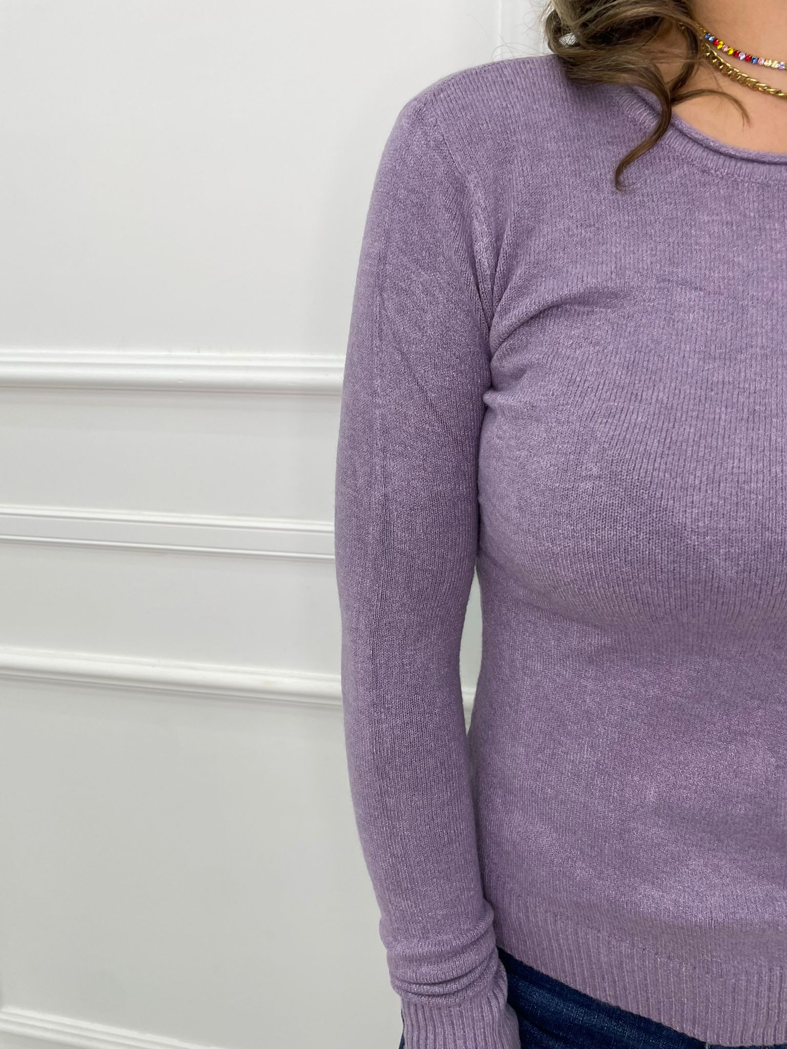 Maglia tinta unita in lana soft giro collo