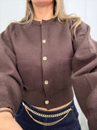 Cardigan giro collo con bottoni oro