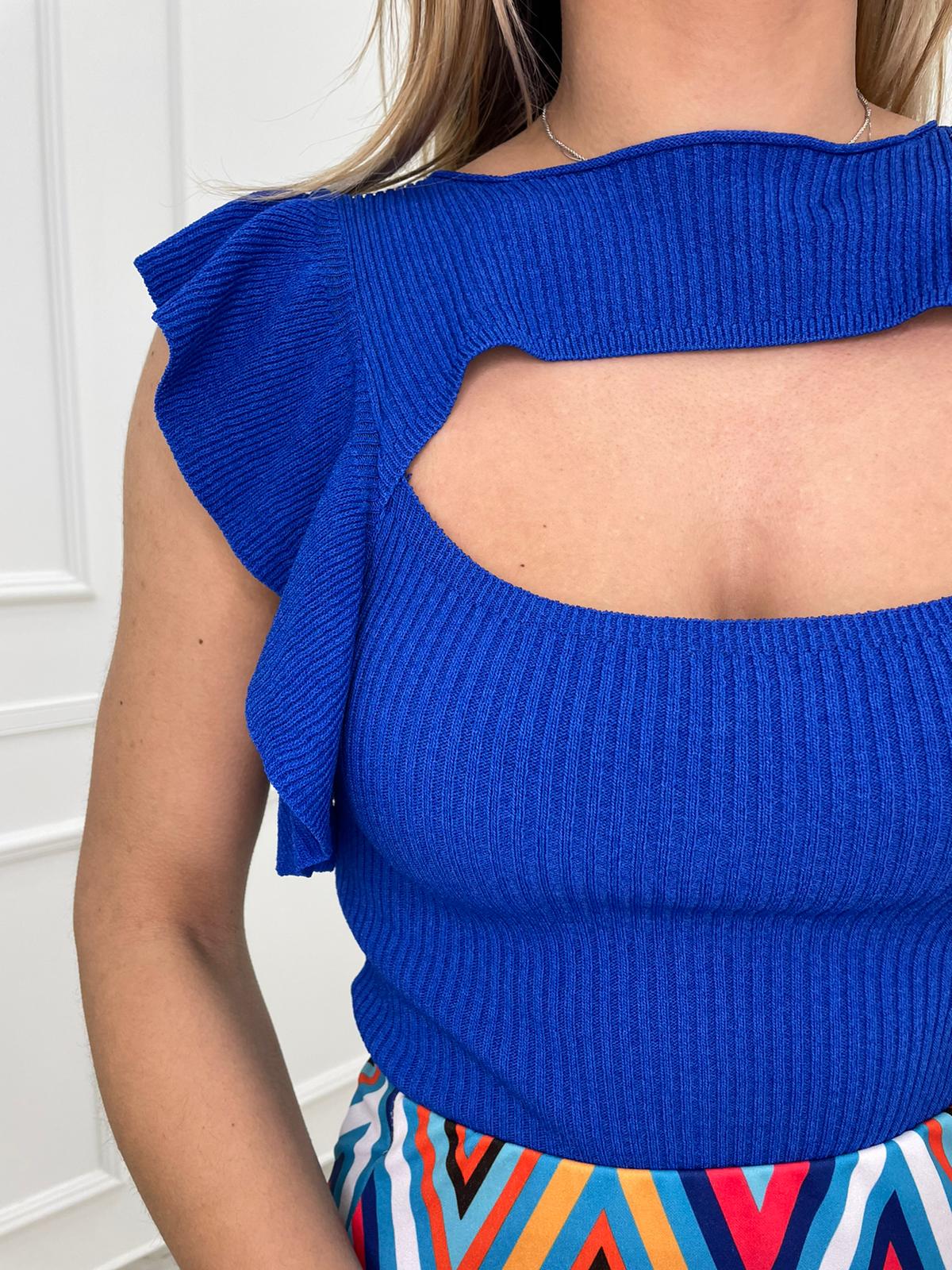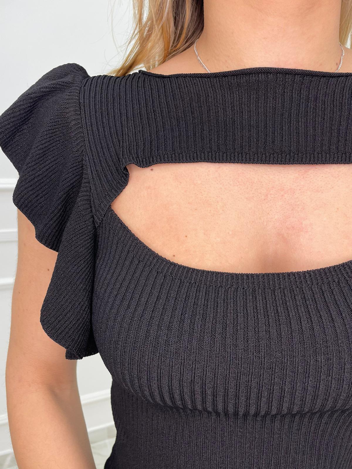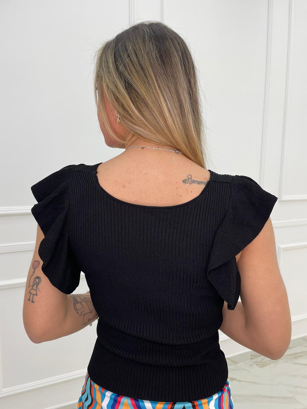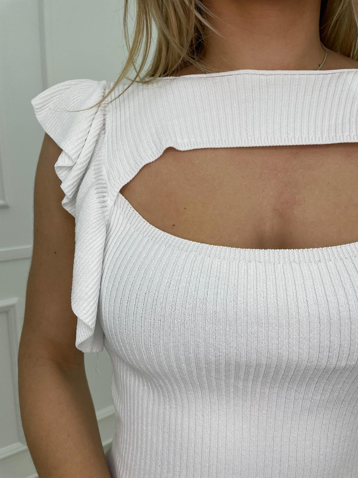 Maglia in filo a costine con apertura e rouches