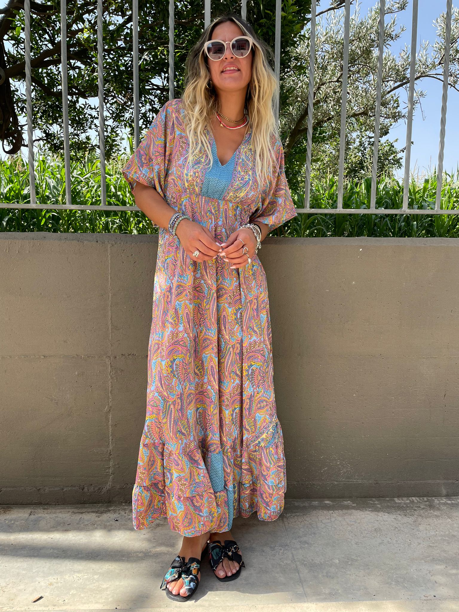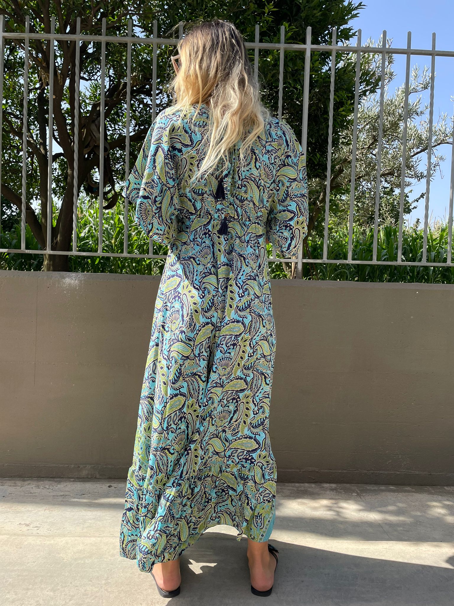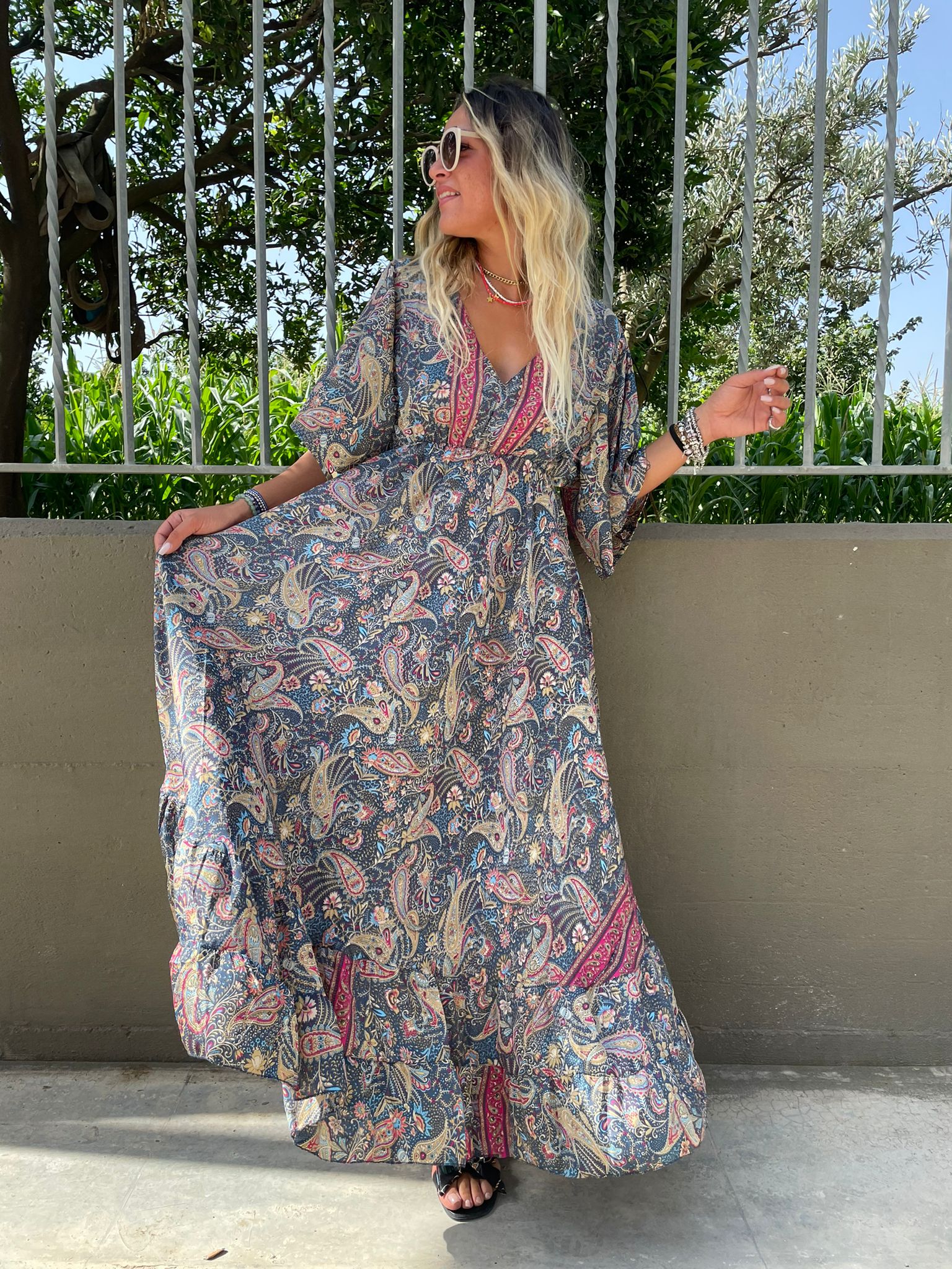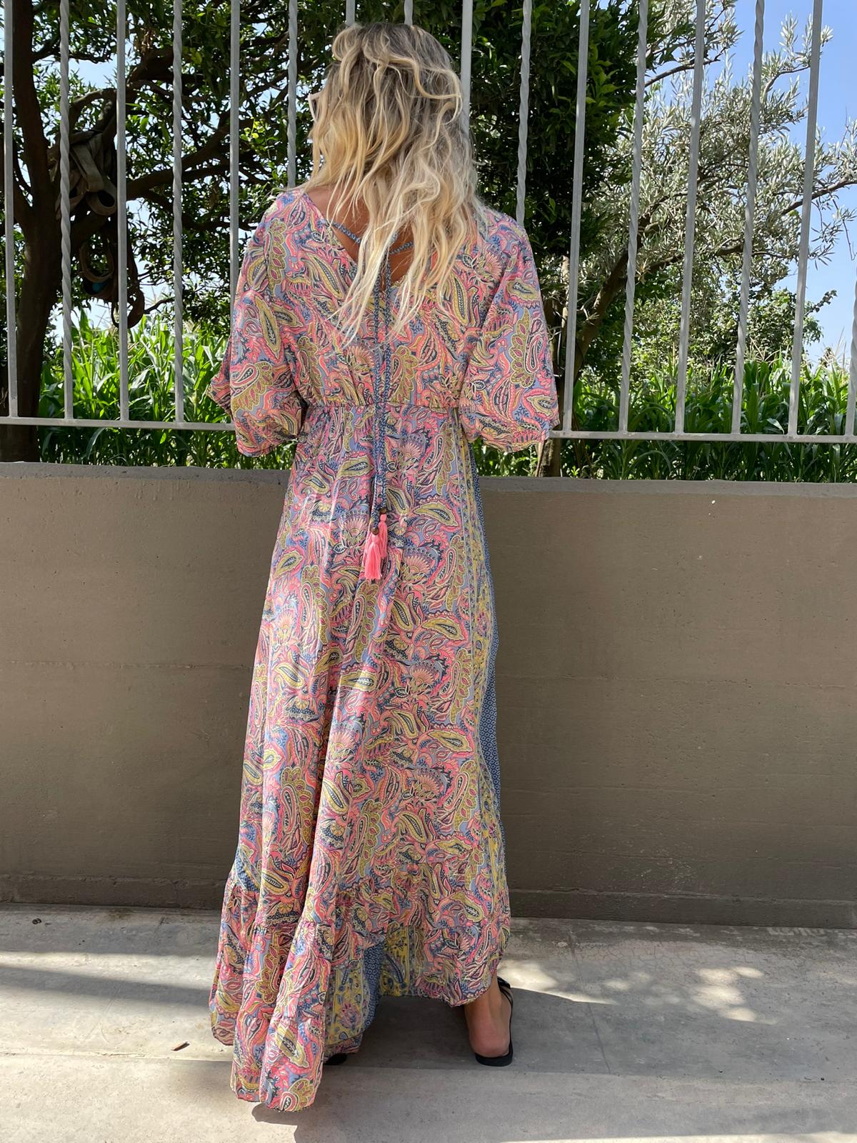 Vestito lungo India con maniche a pipistrello