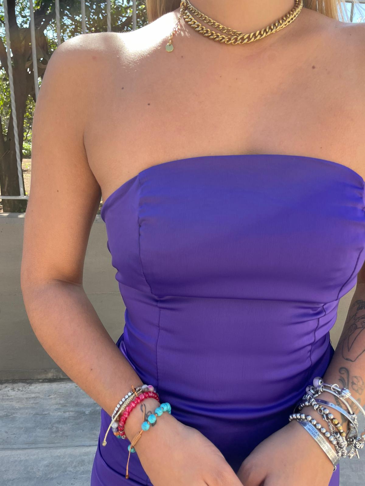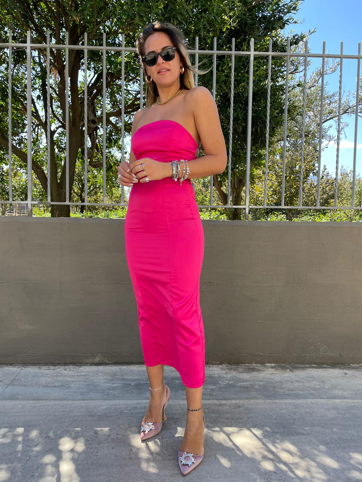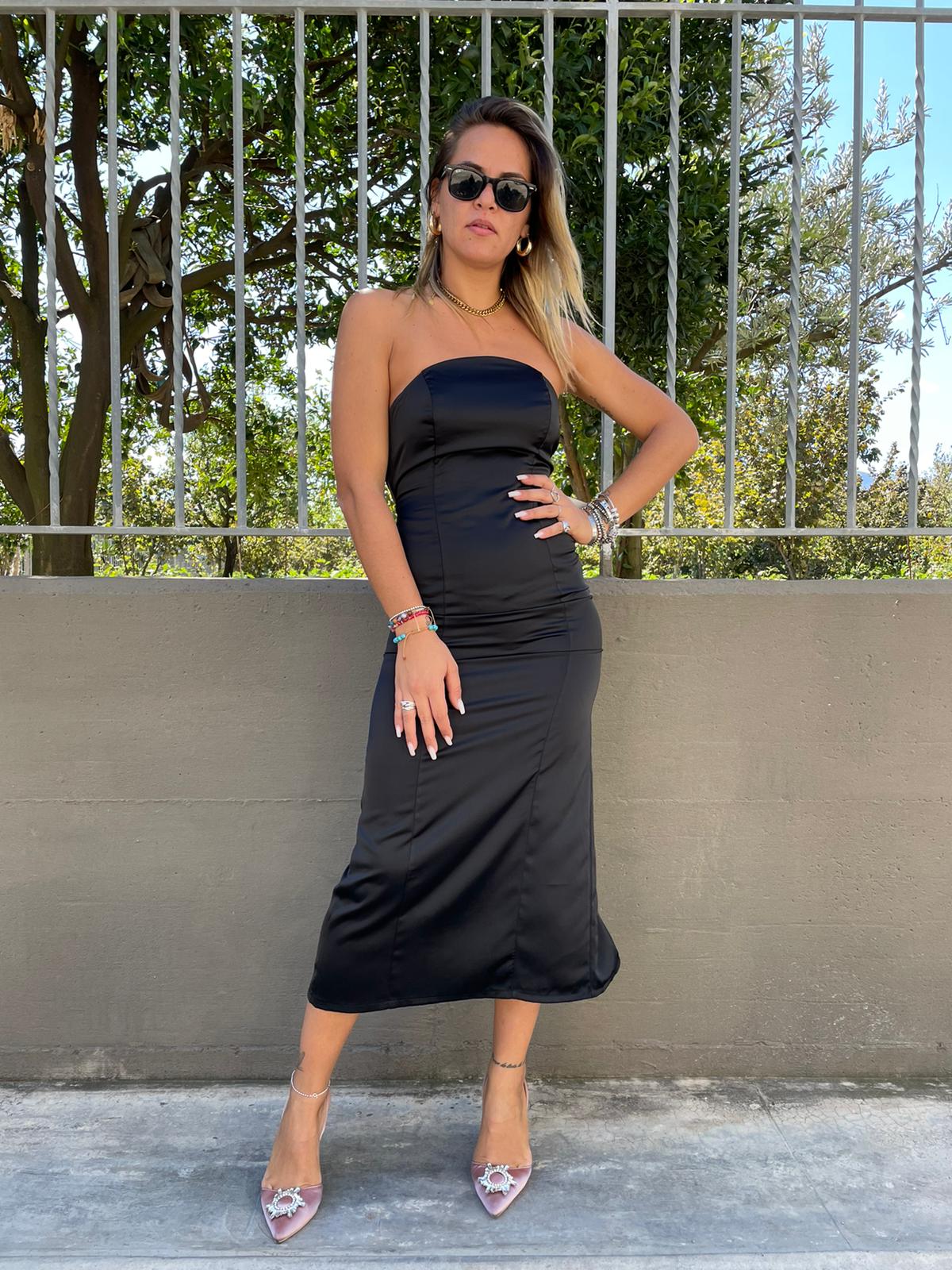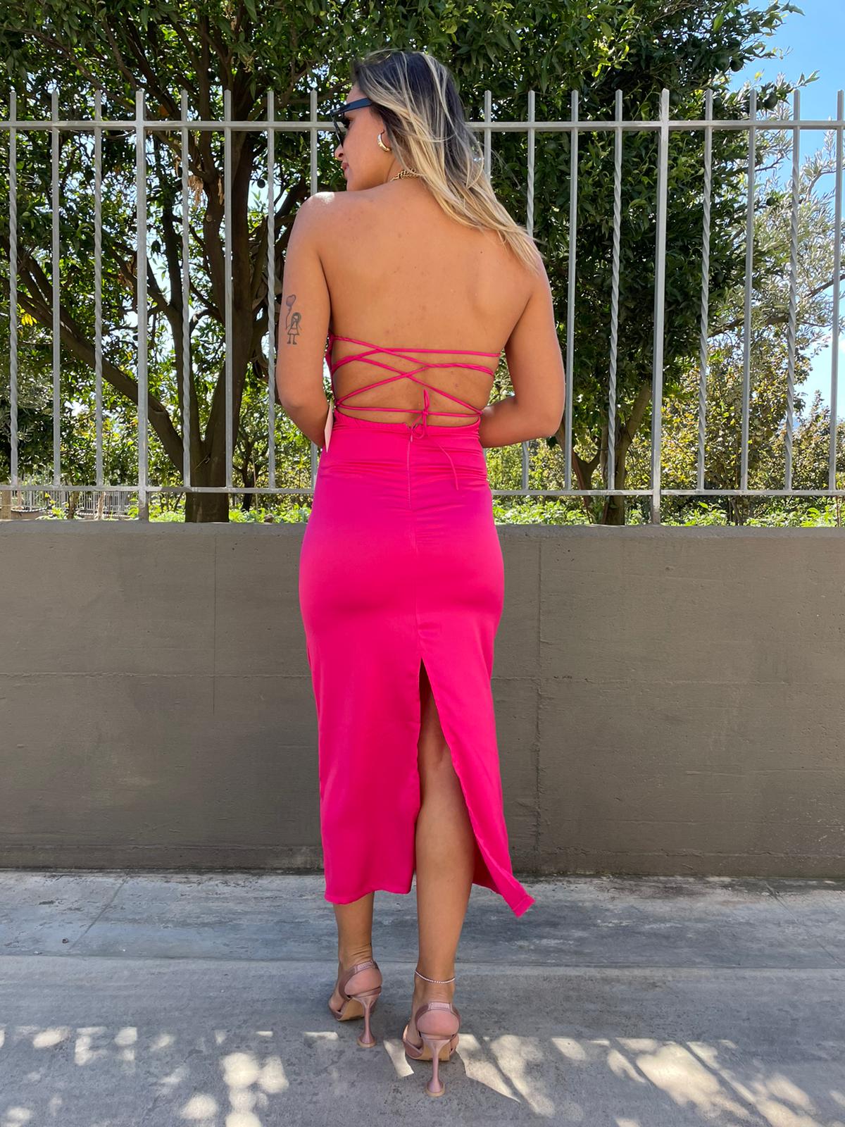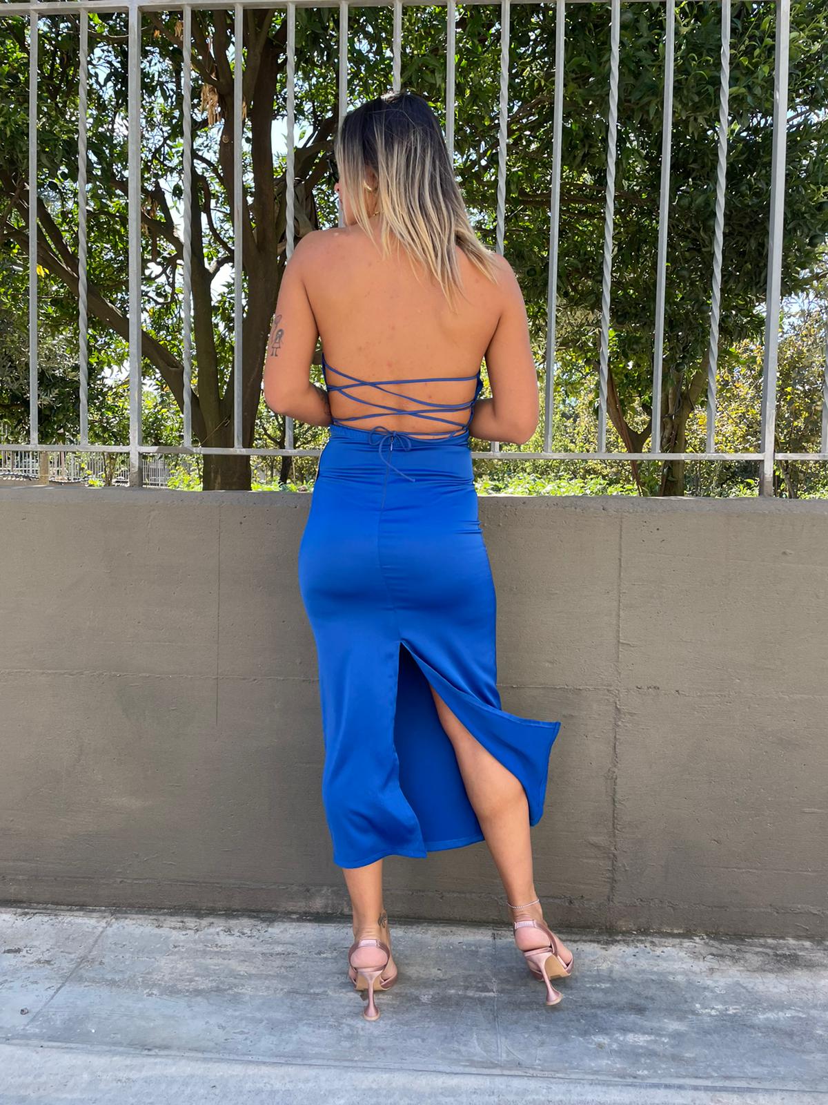 Vestito lungo effetto seta con lacci alla schiena