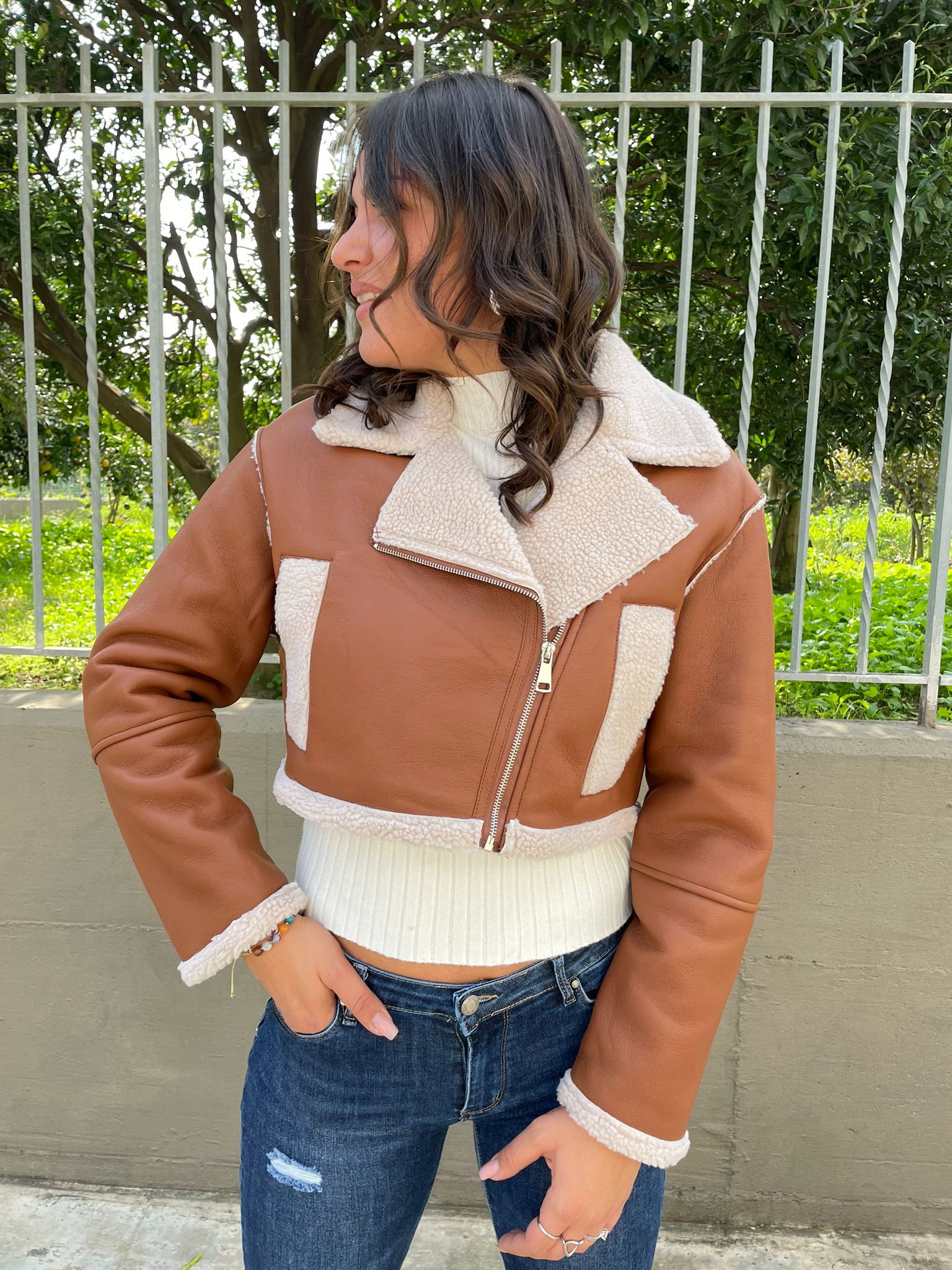 Maglioncino crop con fili laminati