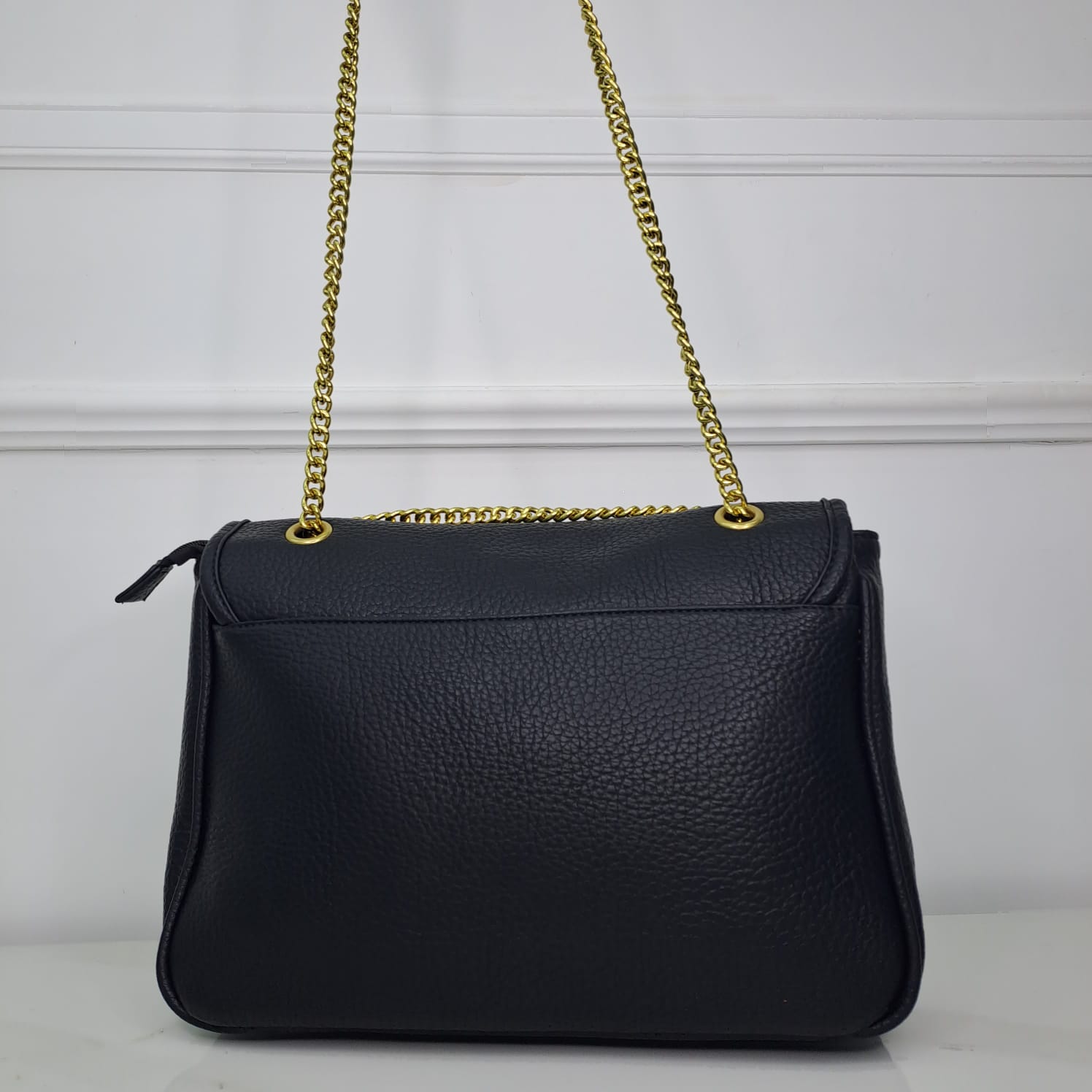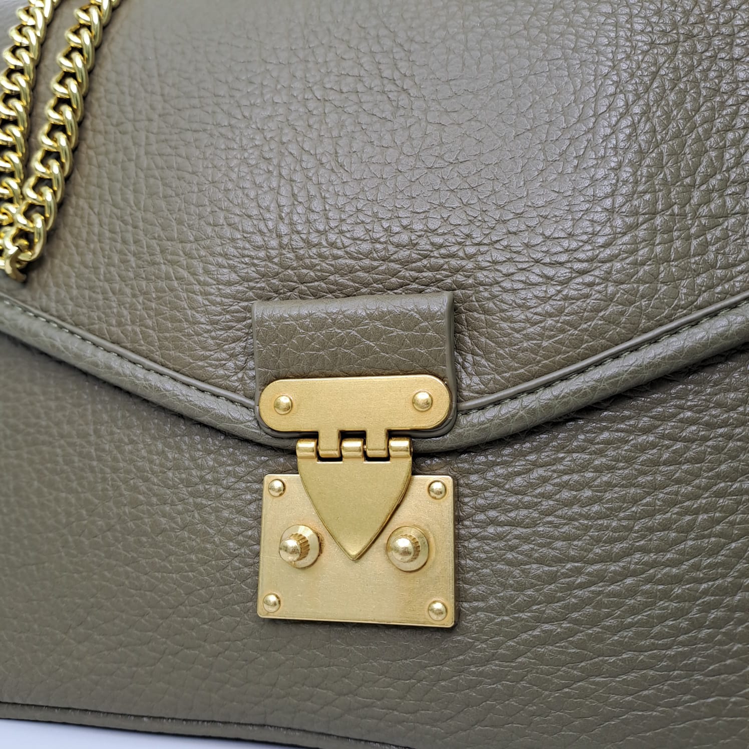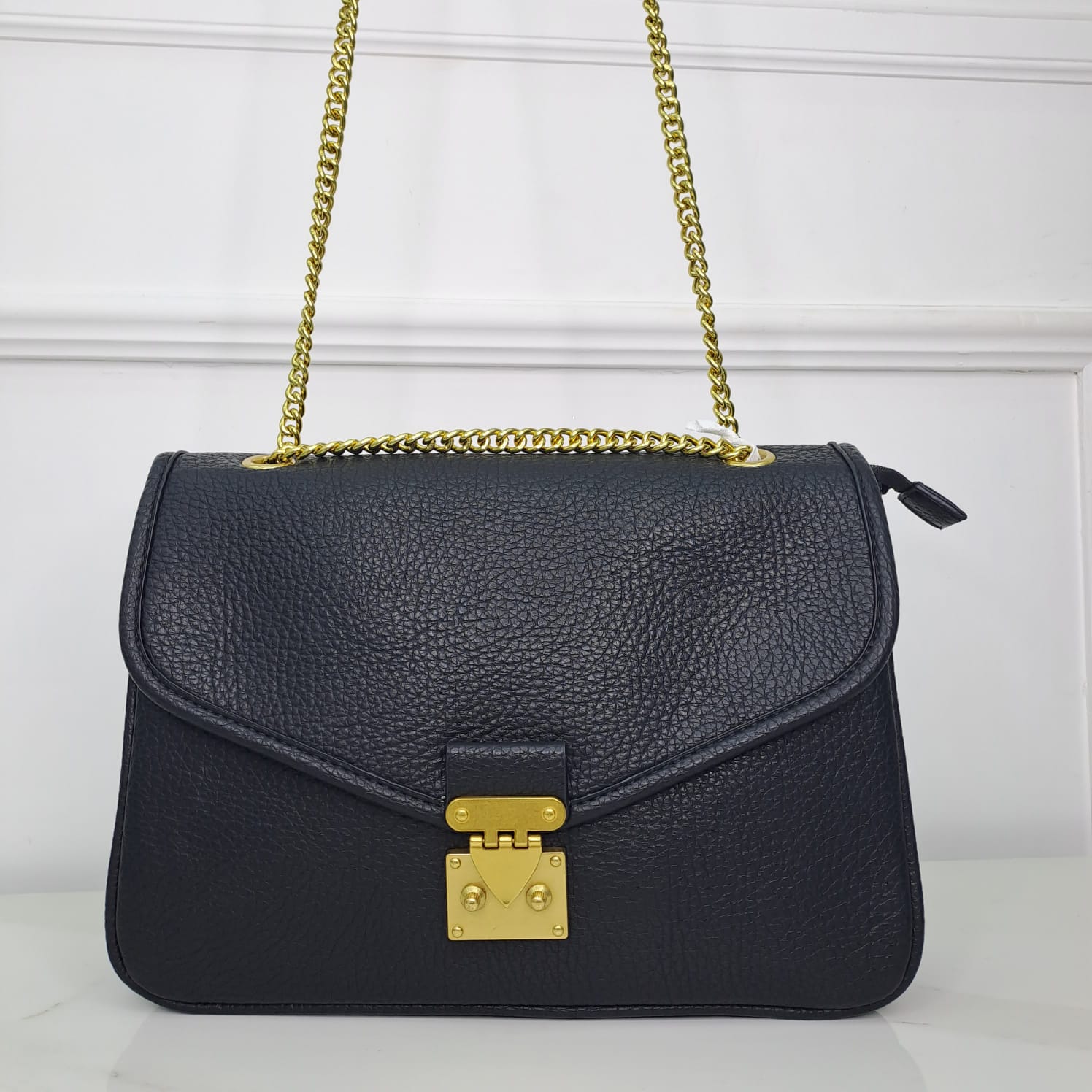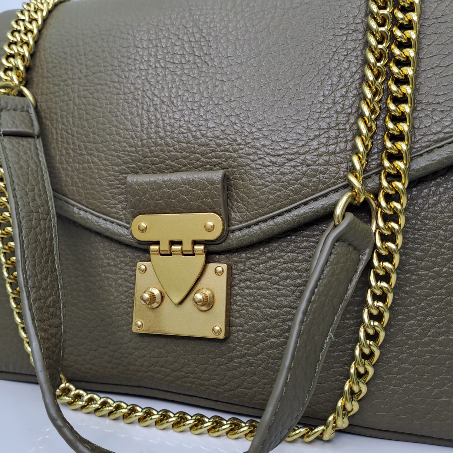 Borsa ampia rettangolare con catena oro e chiusura vintage