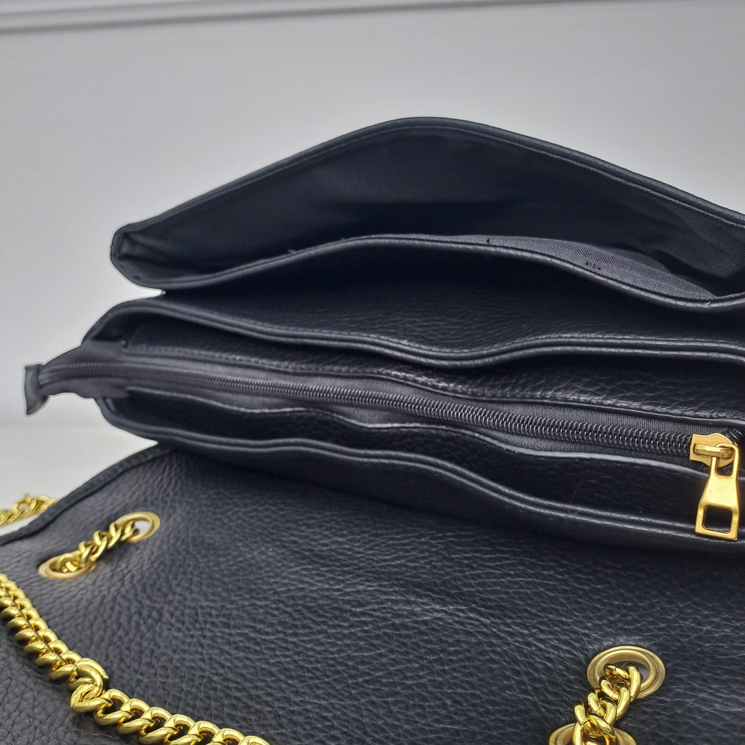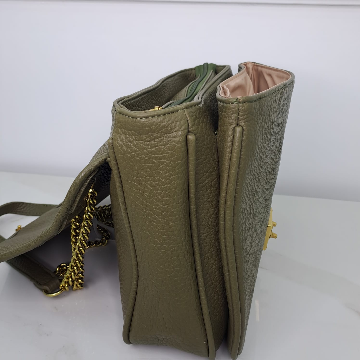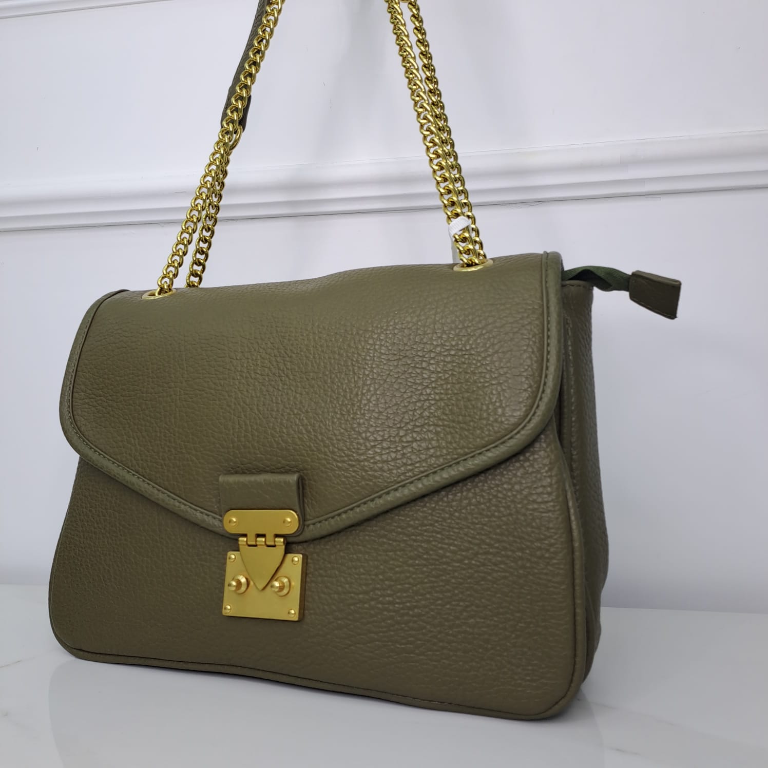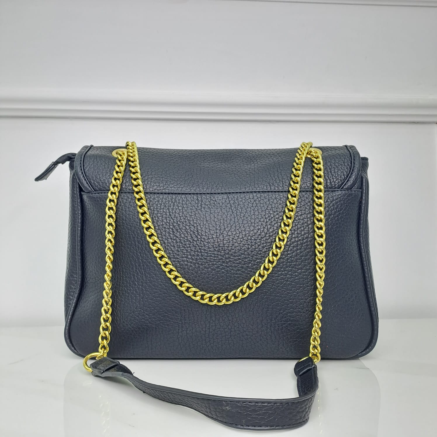 Borsa ampia rettangolare con catena oro e chiusura vintage