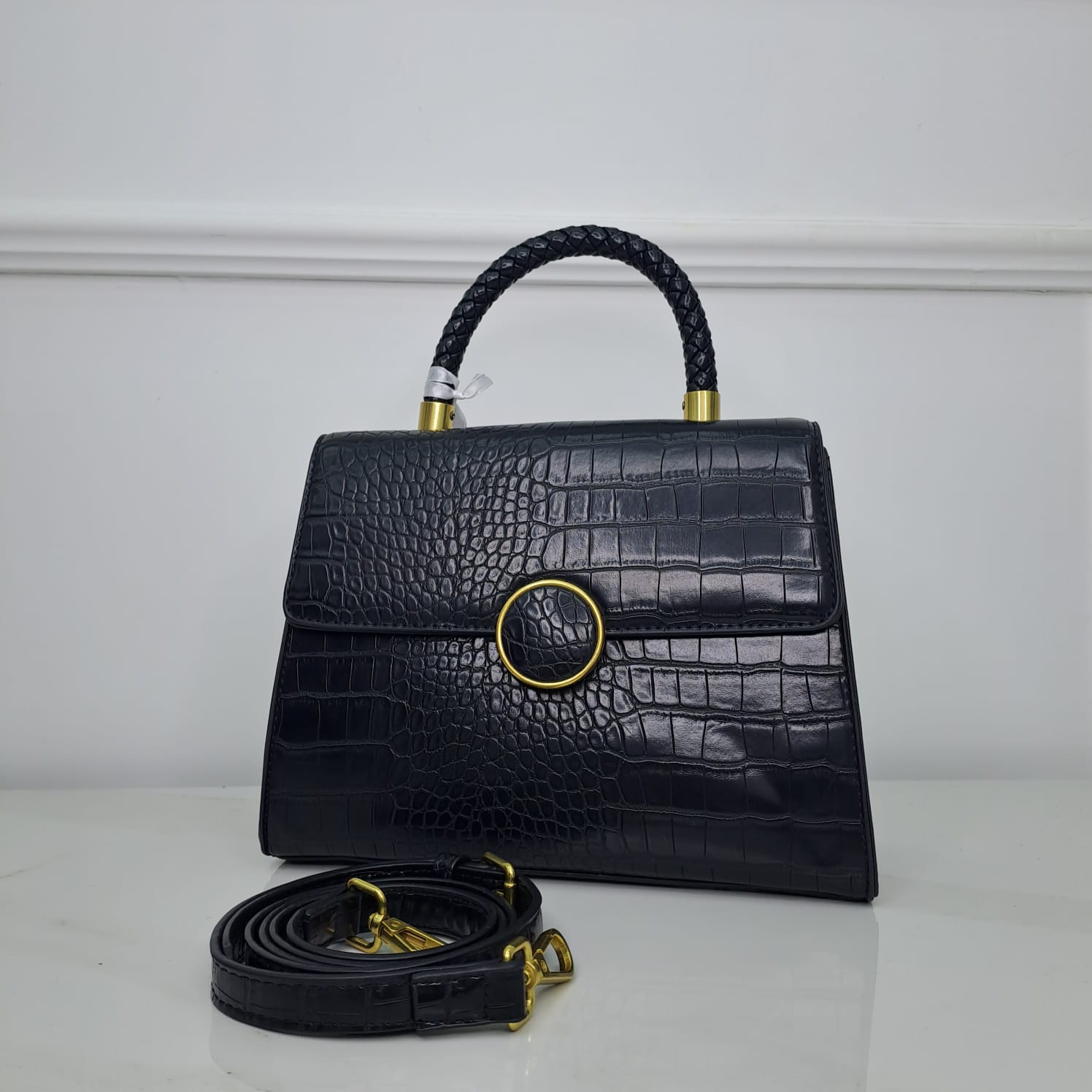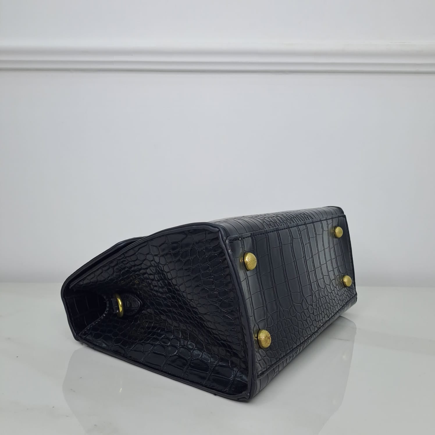 Borsa rigida eco pelle con giancio oro