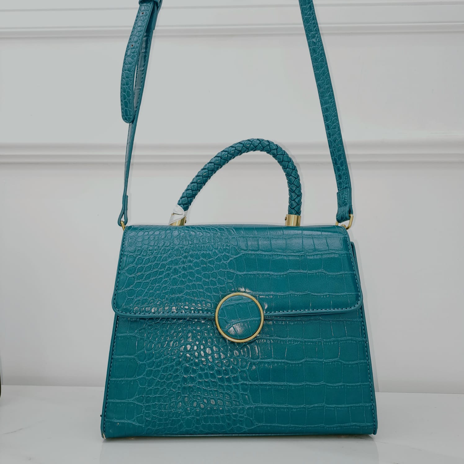 Borsa in eco pelle tinta unita con chiusura nascosta