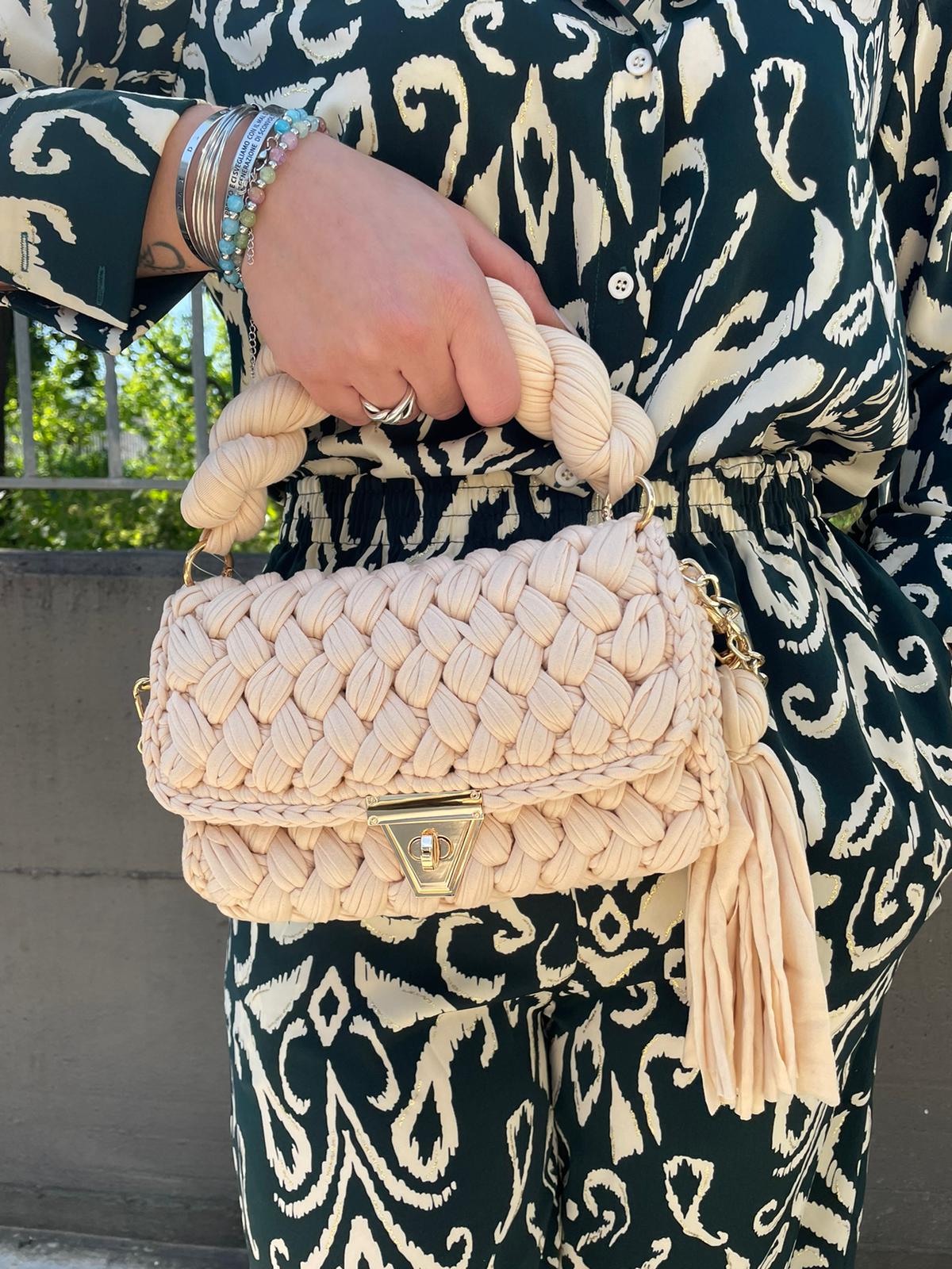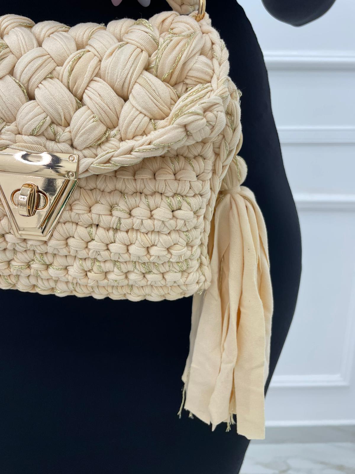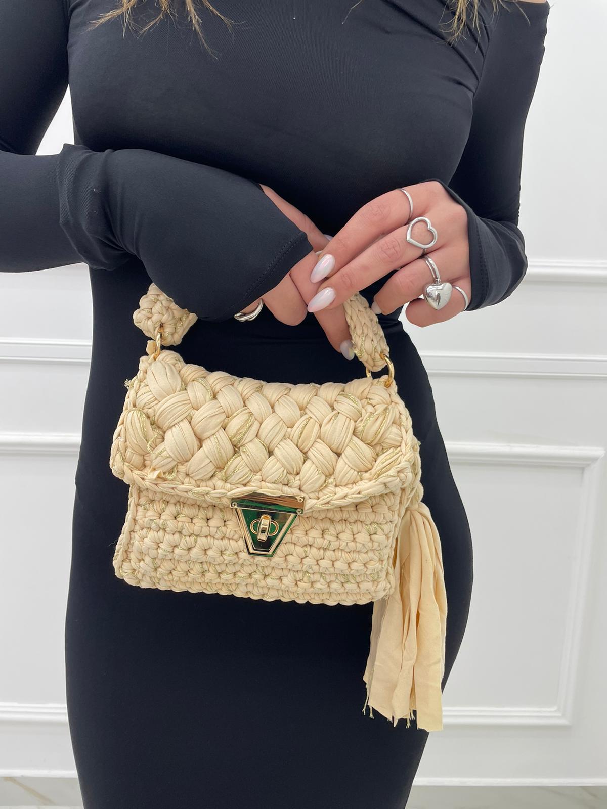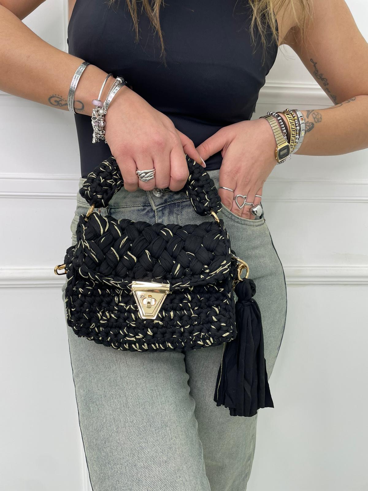 Borsa uncinetto con manico corto e gancio oro