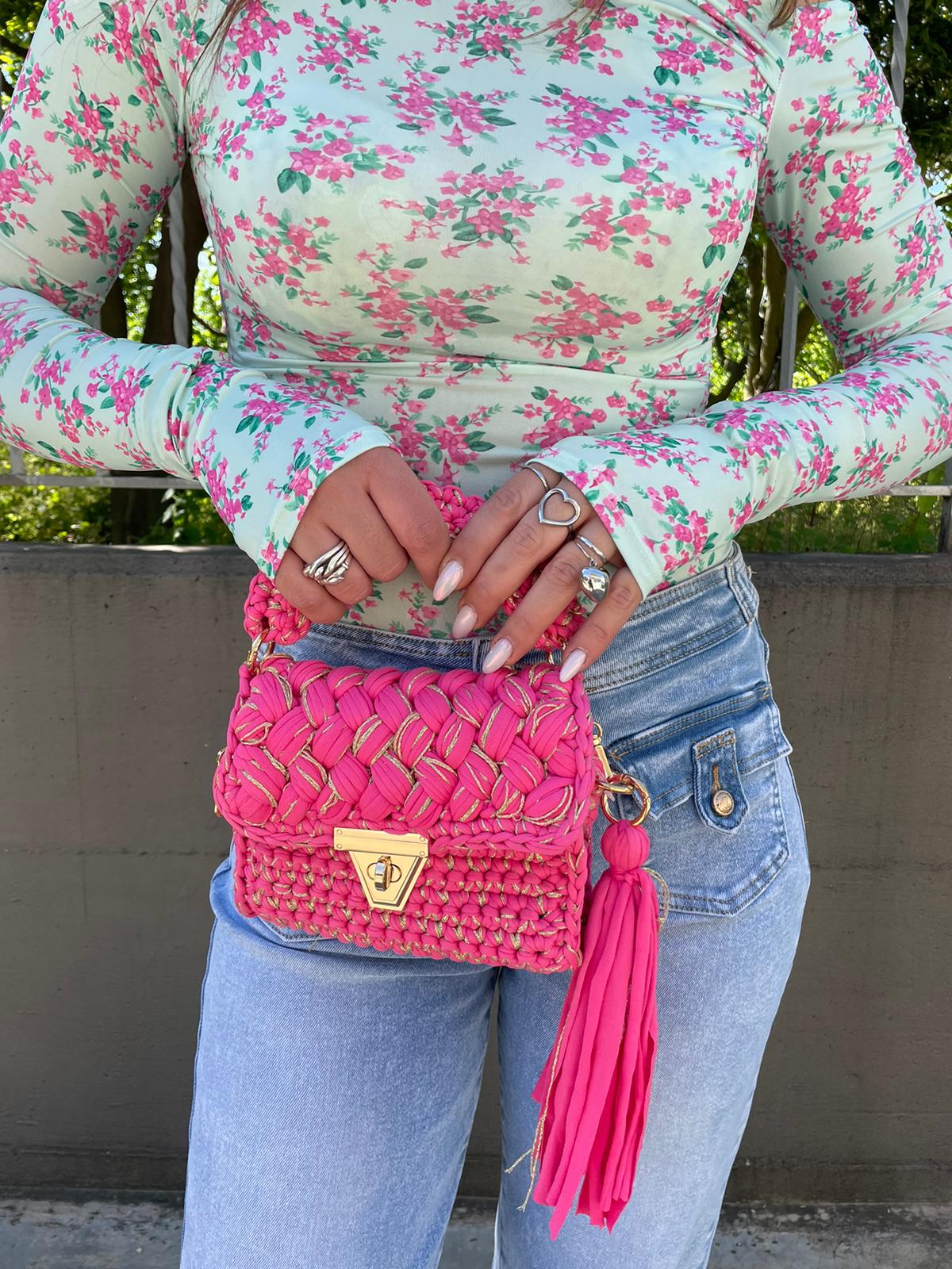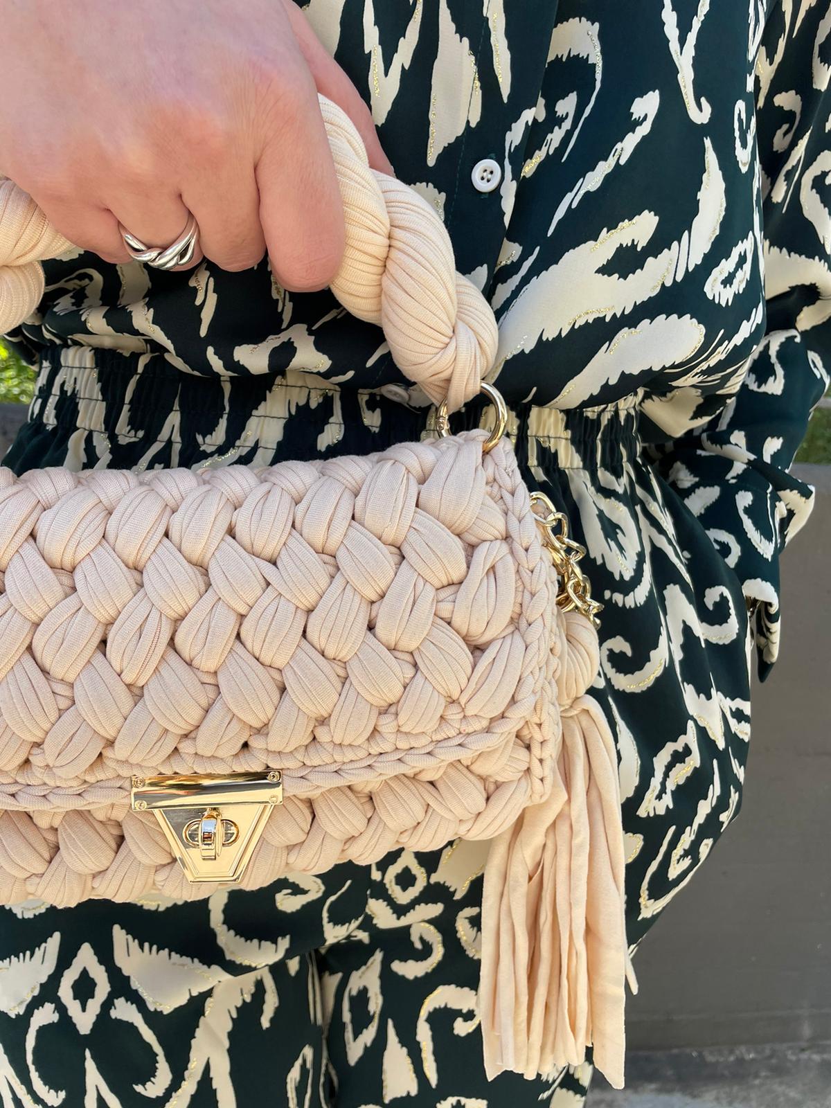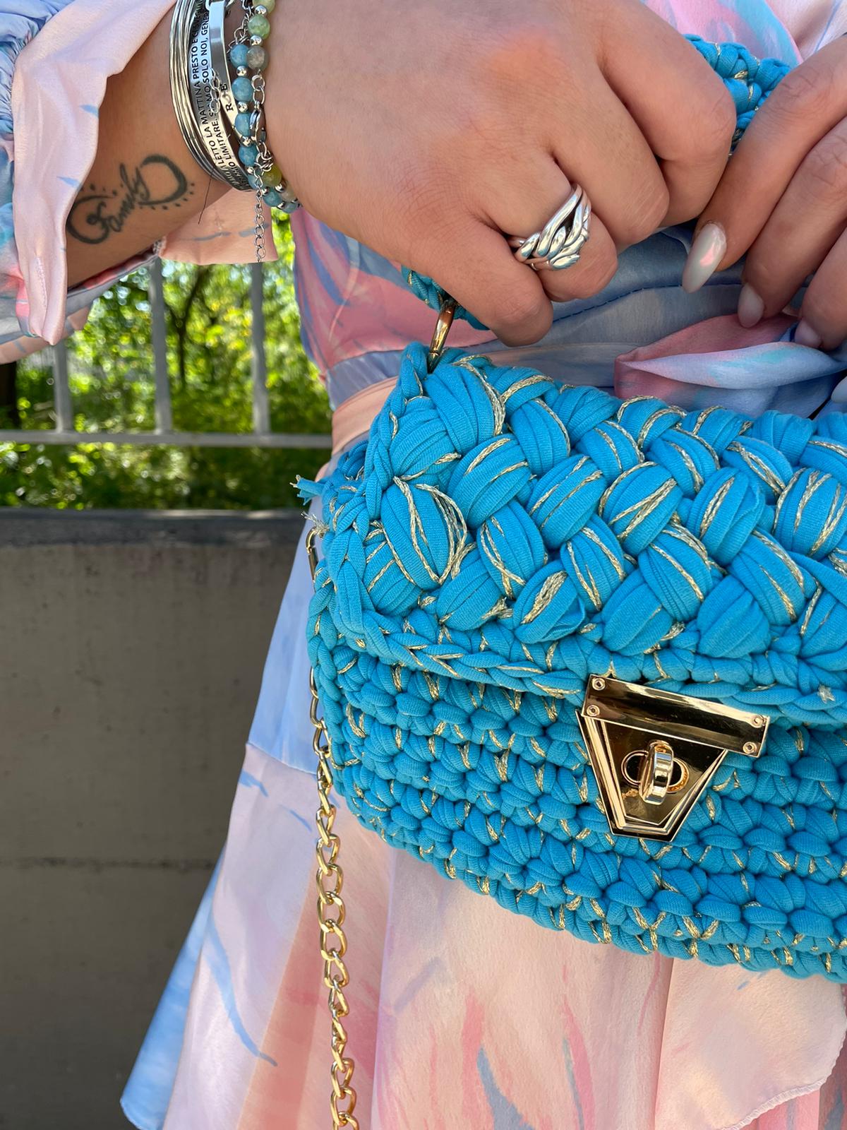 Borsa uncinetto con manico corto e gancio oro