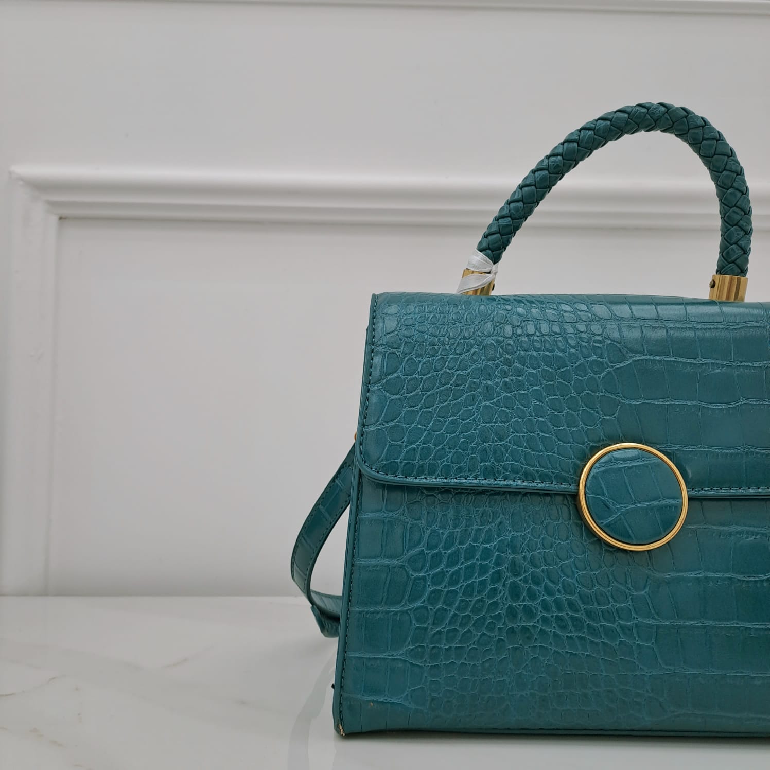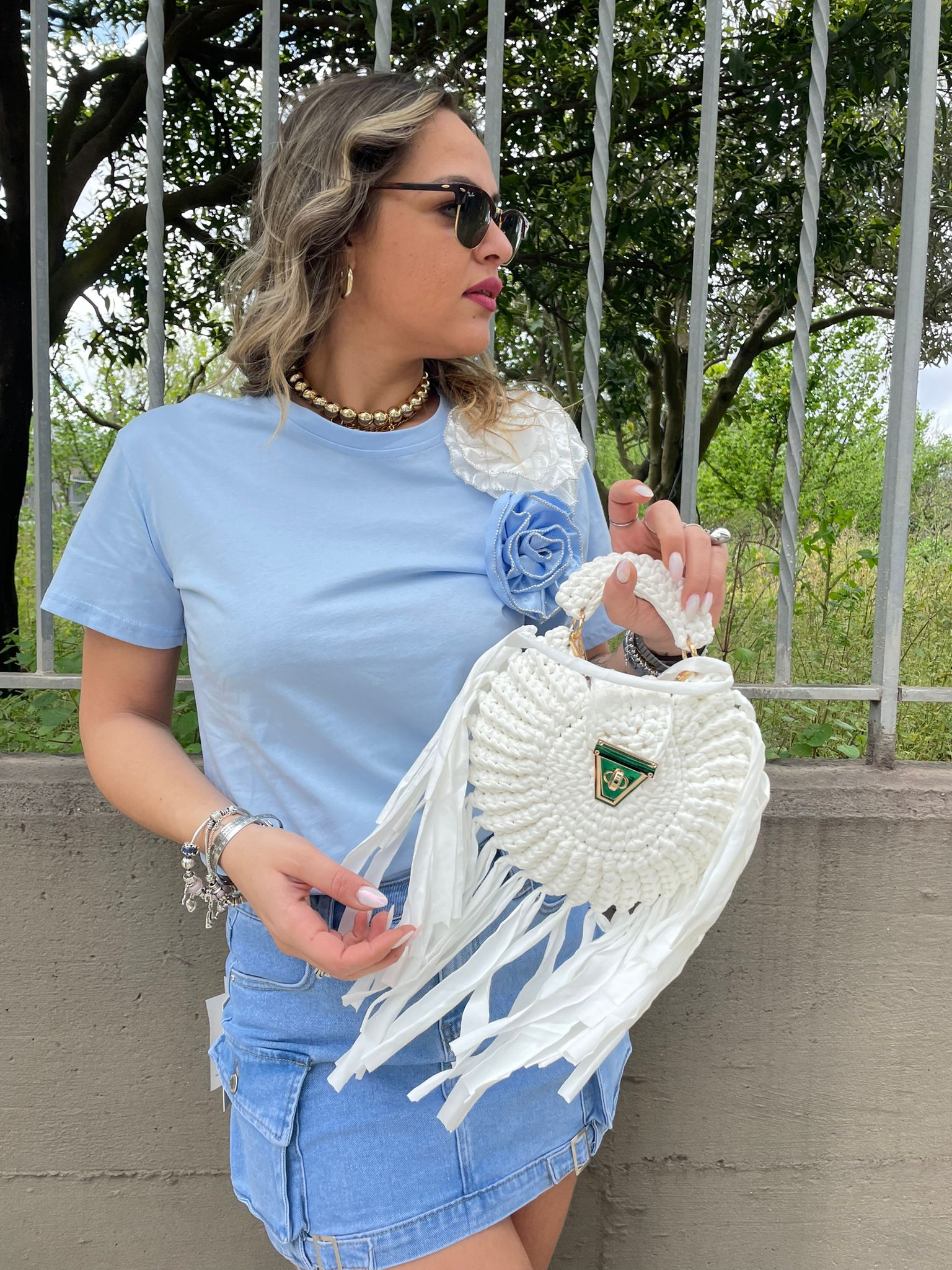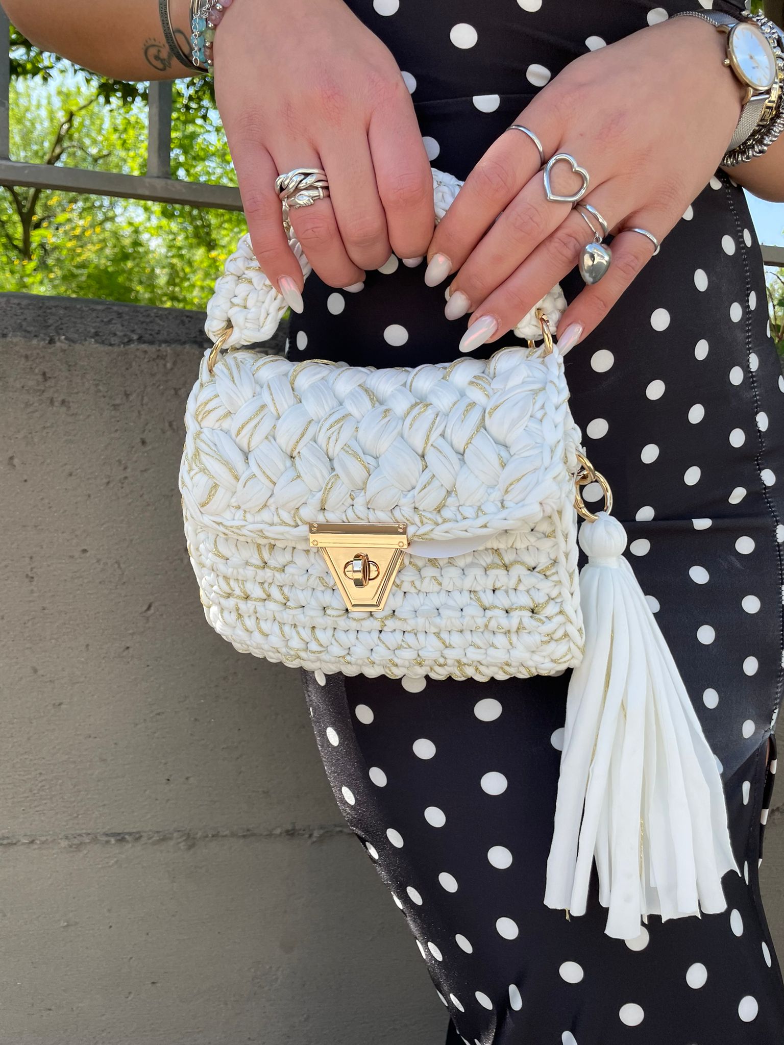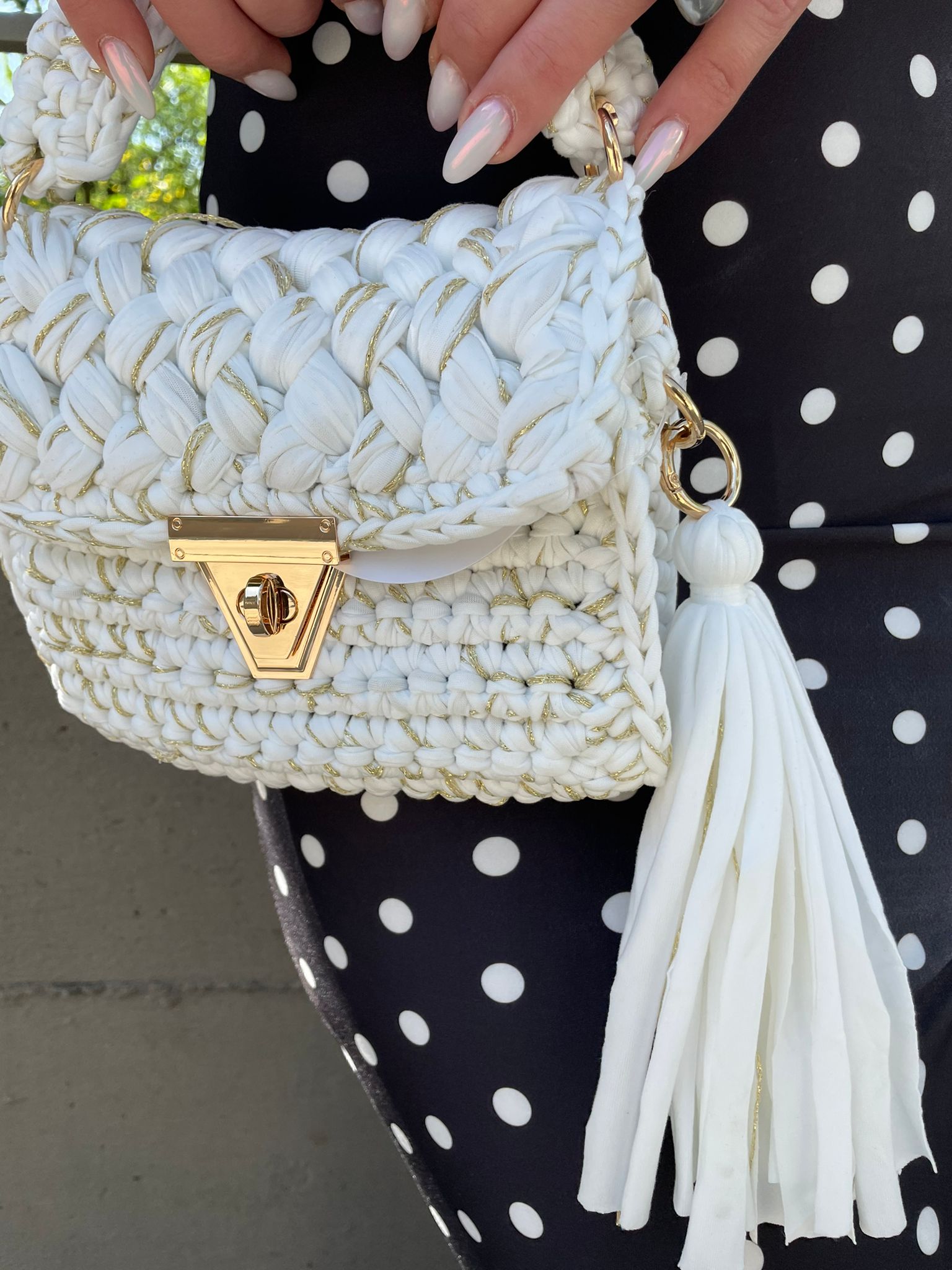 Borsa uncinetto con manico corto e gancio oro