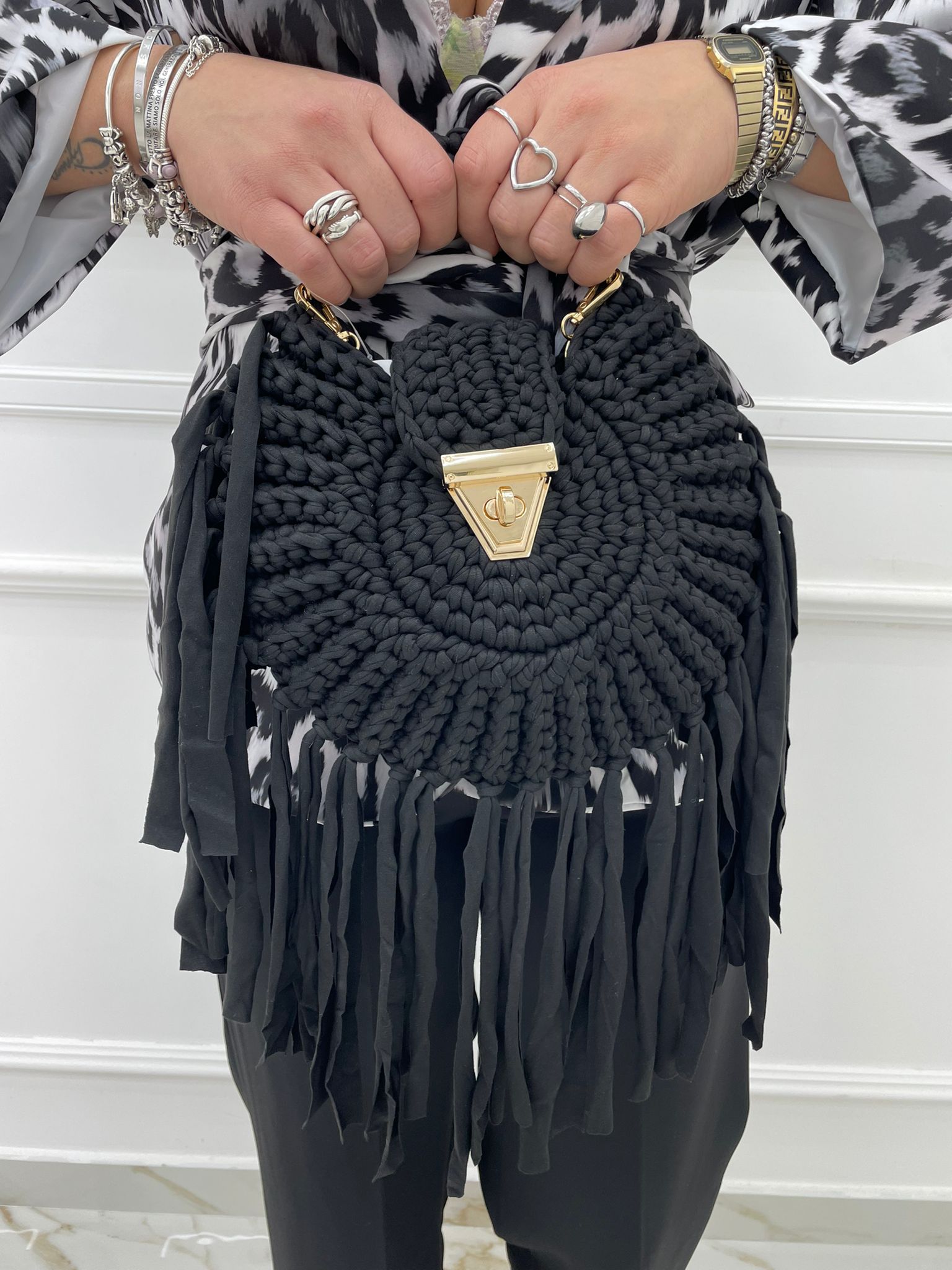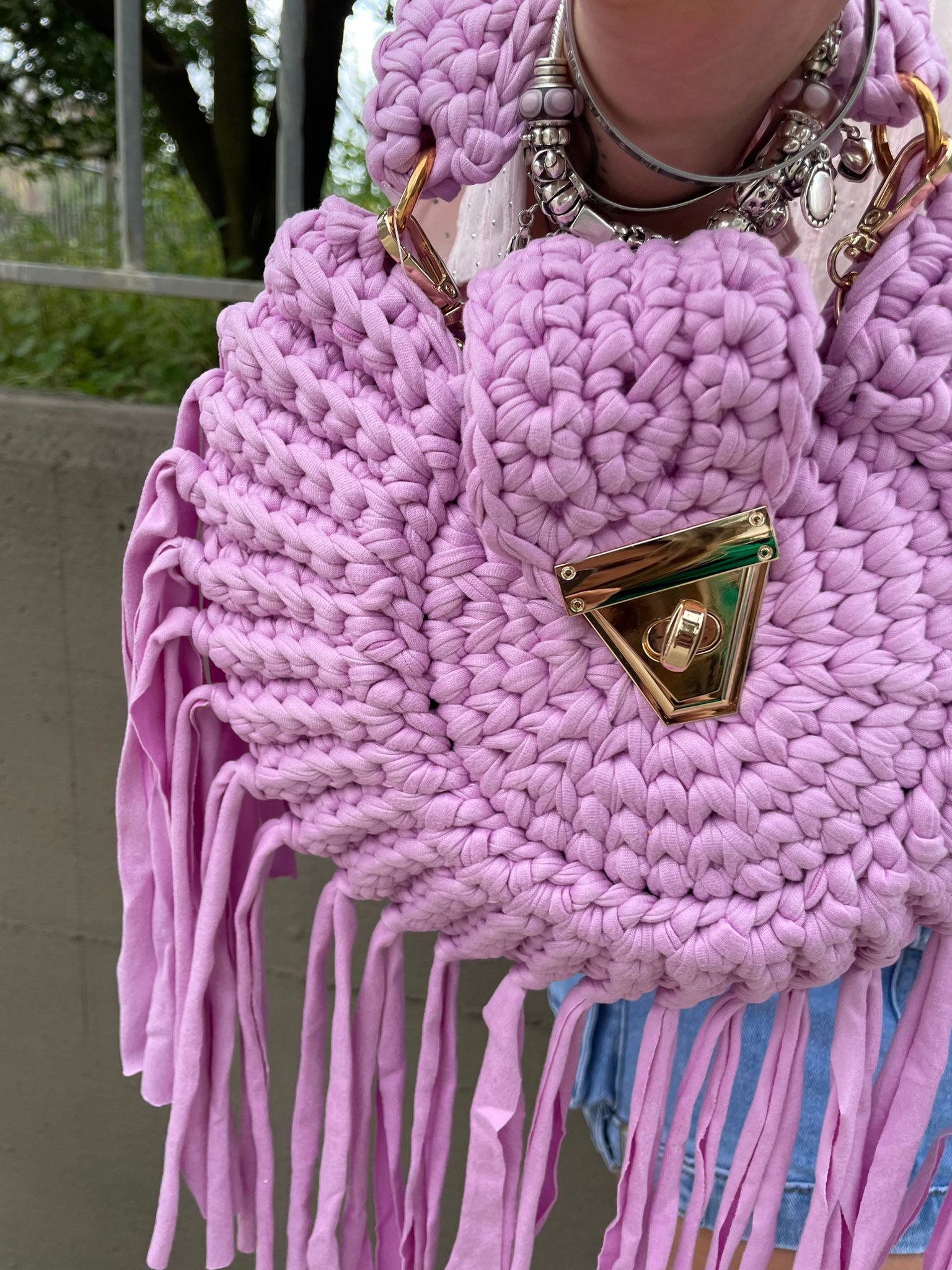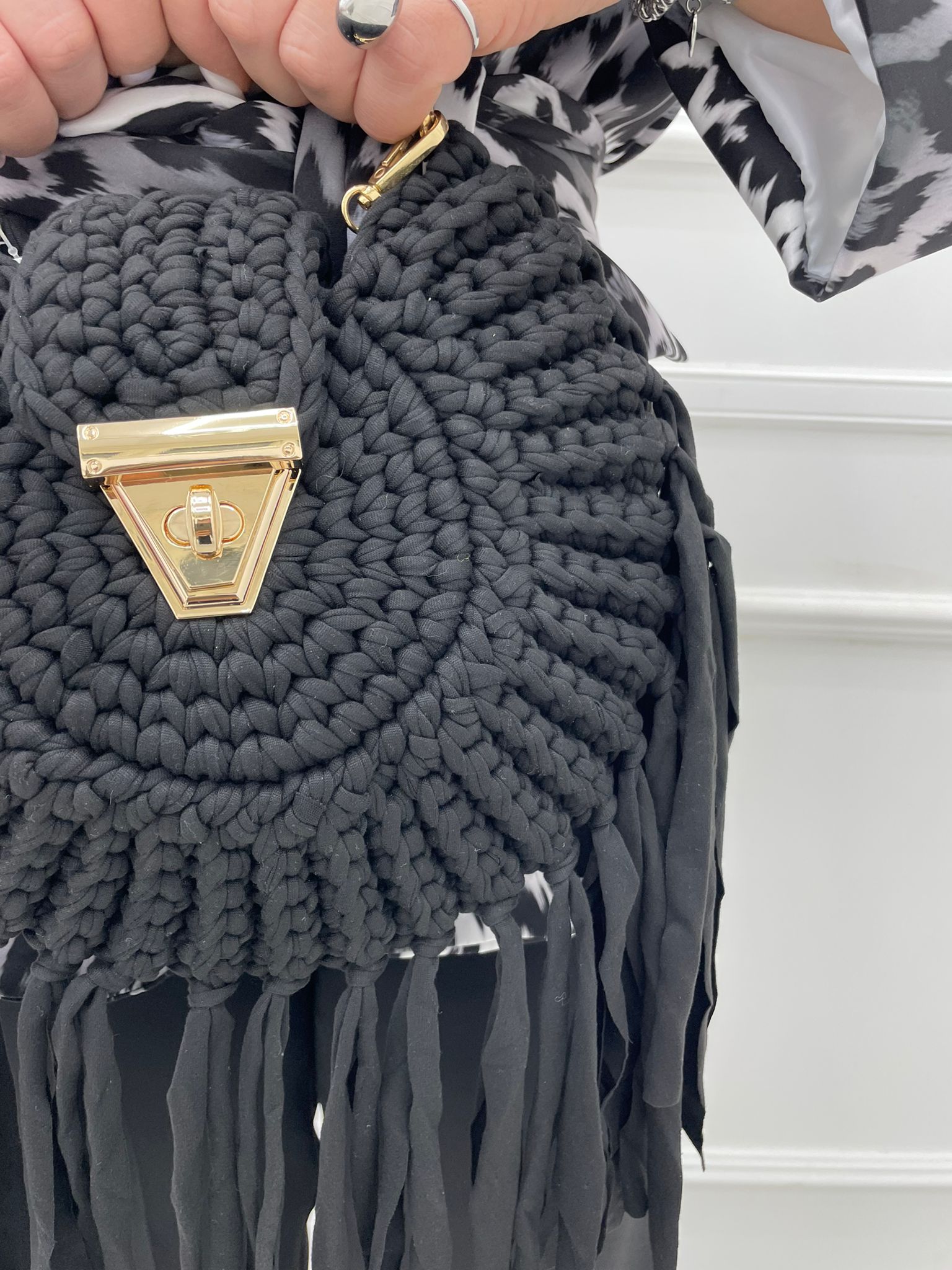 Borsa uncinetto tinta unita con frange