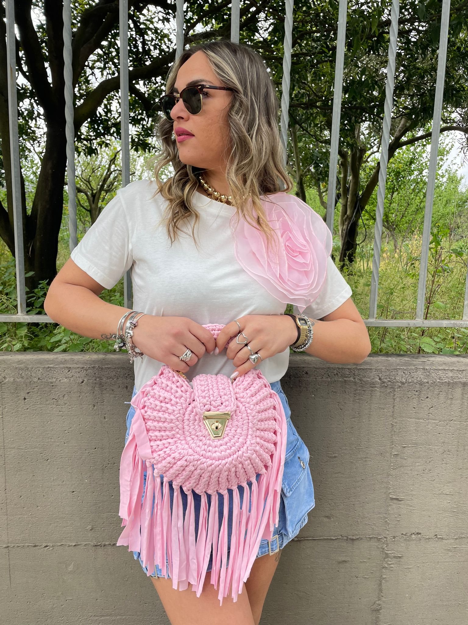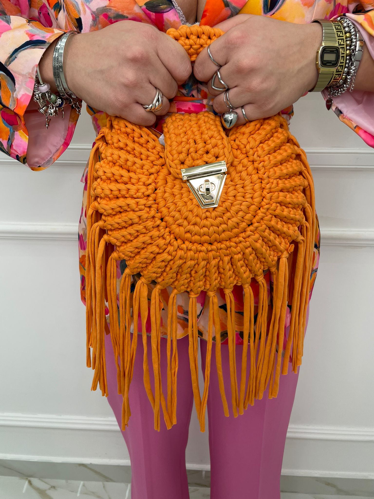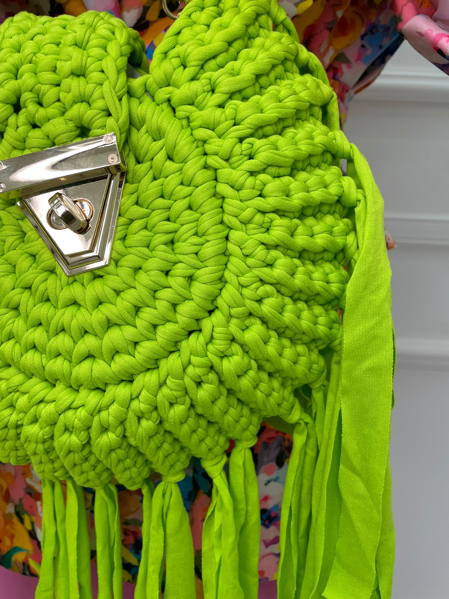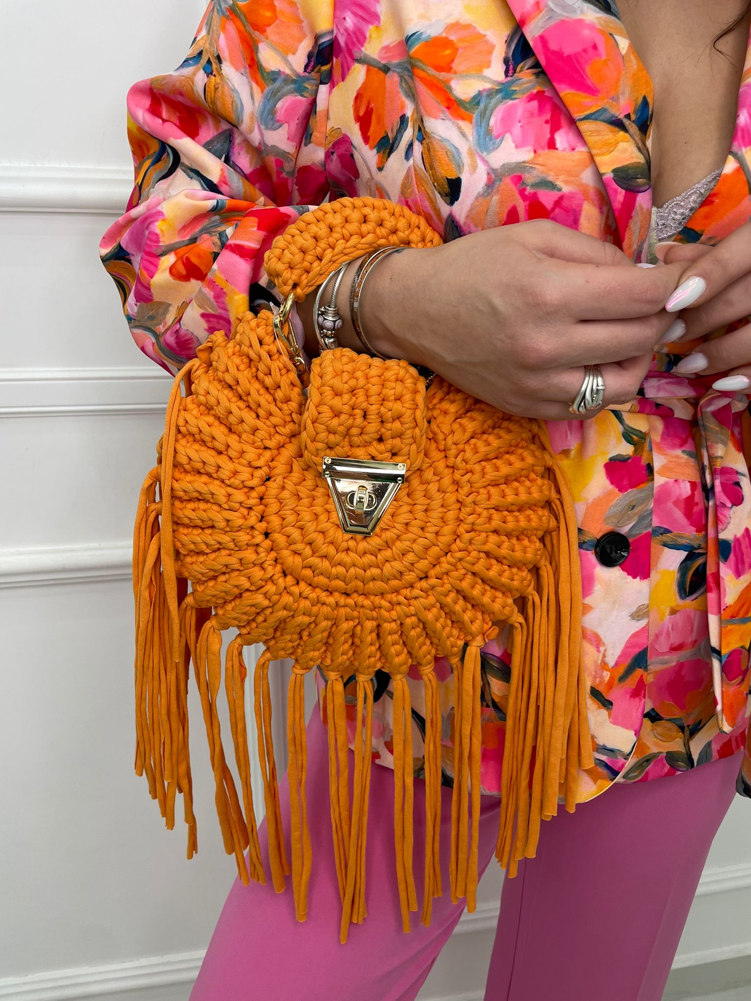 Borsa uncinetto tinta unita con frange