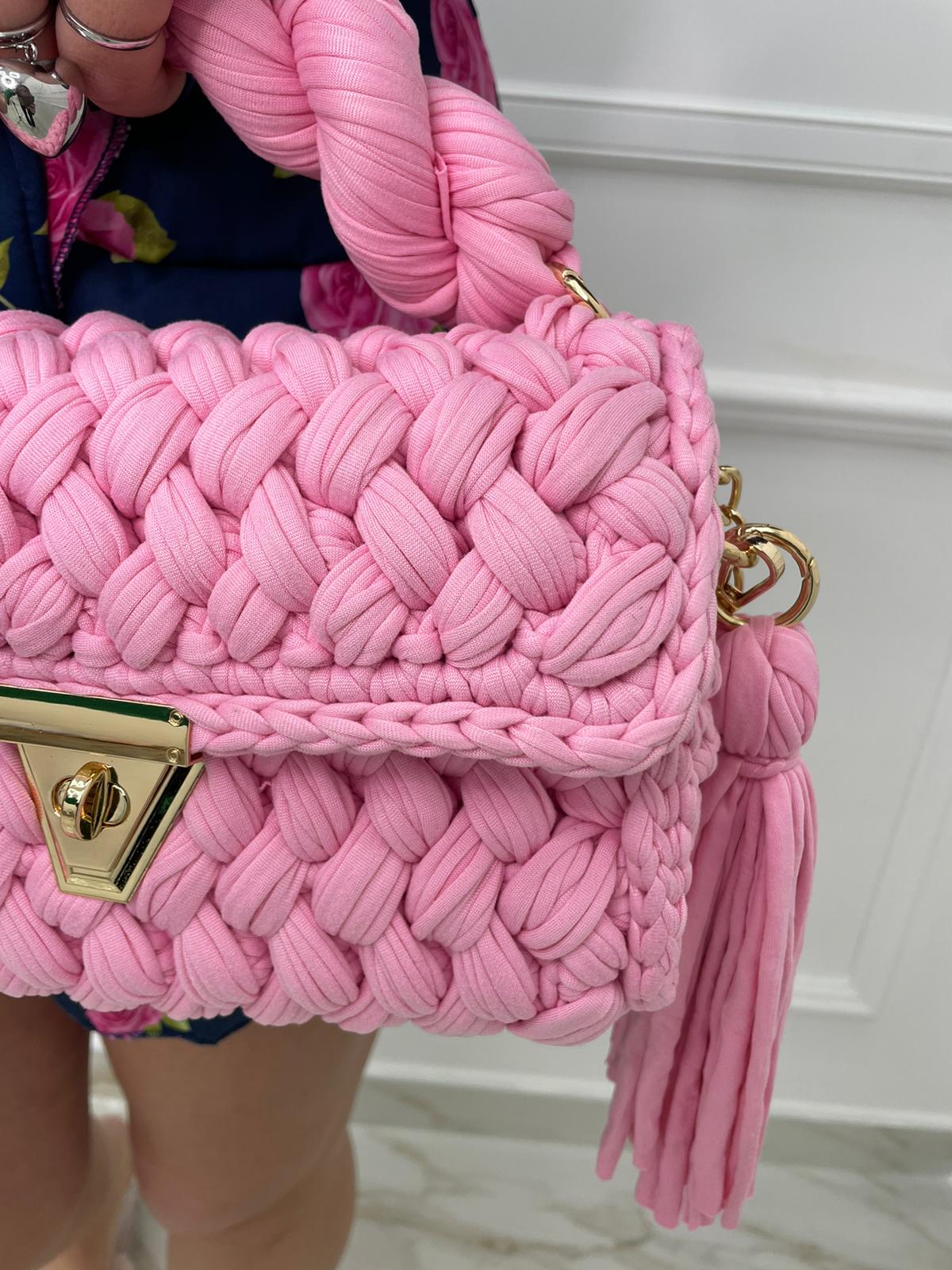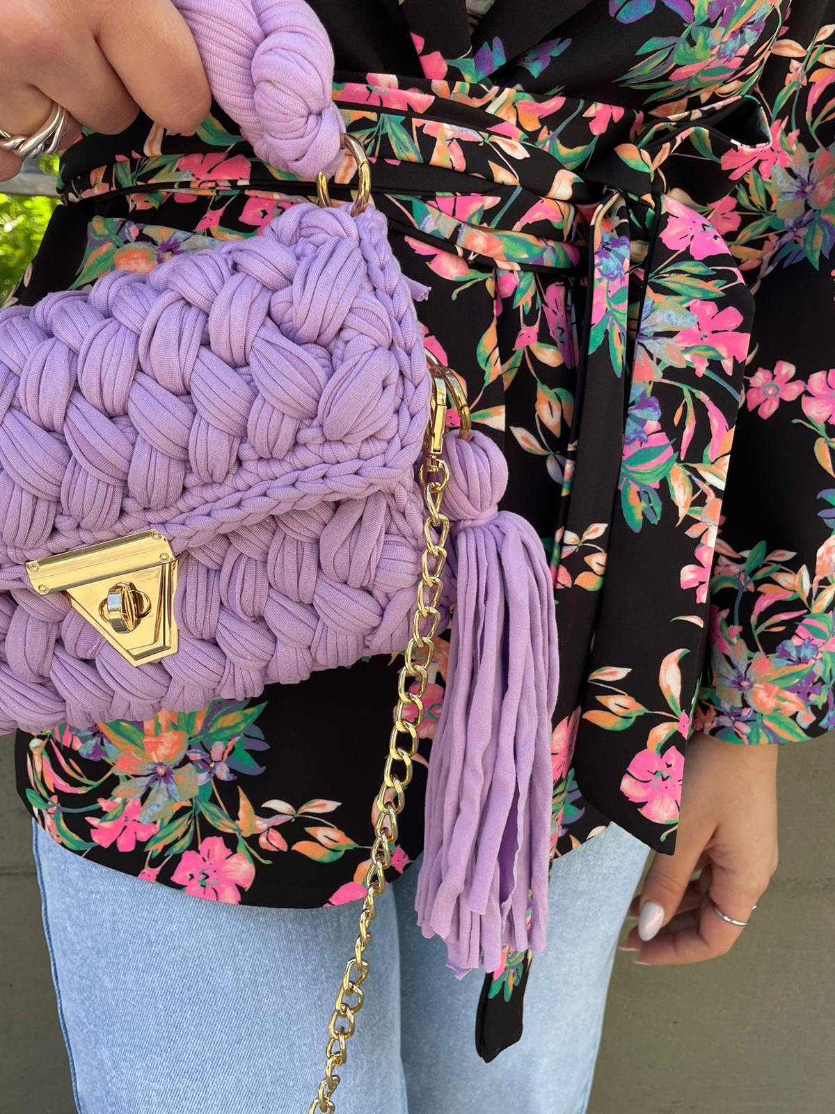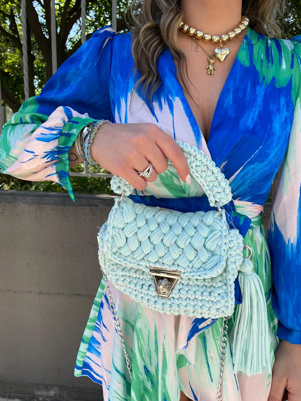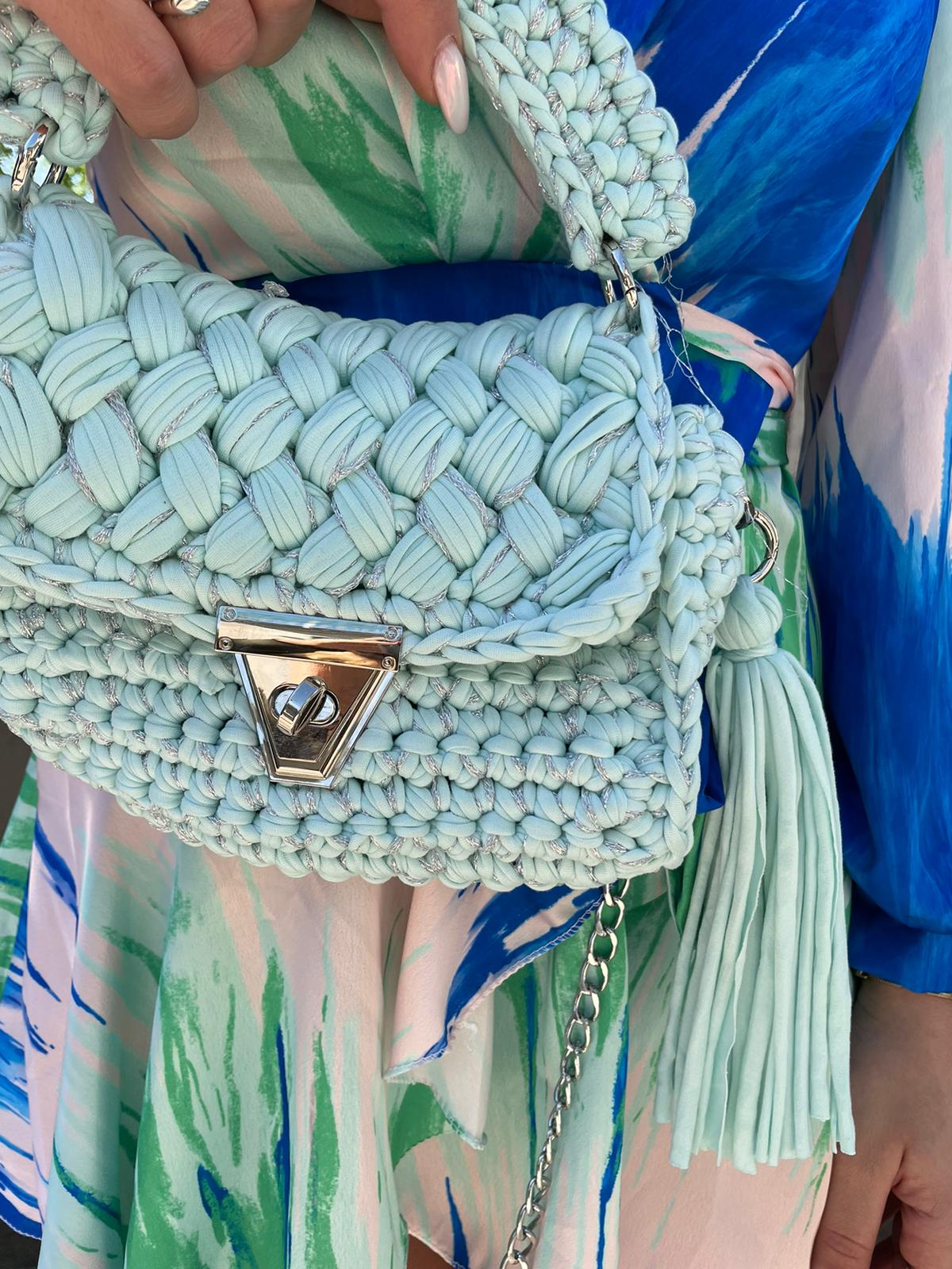 Borsa uncinetto con inserti laminati