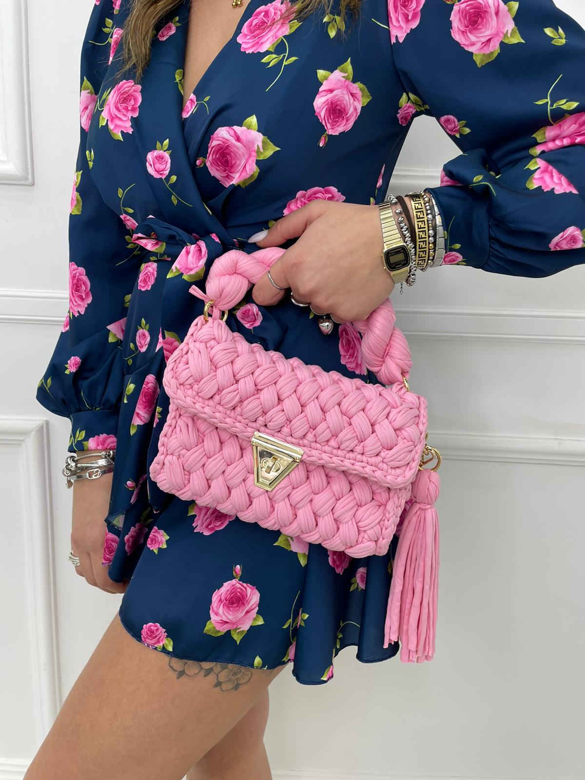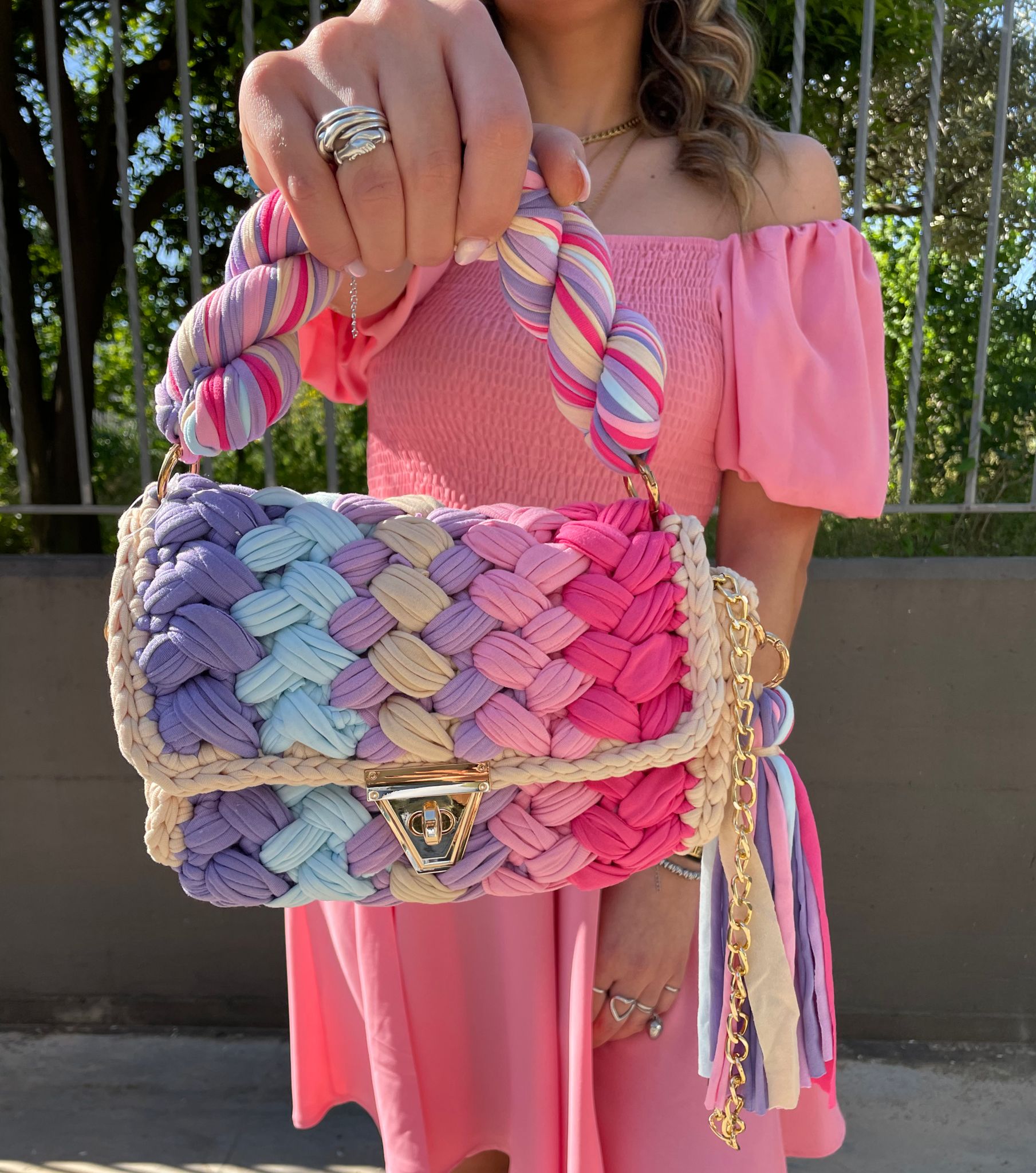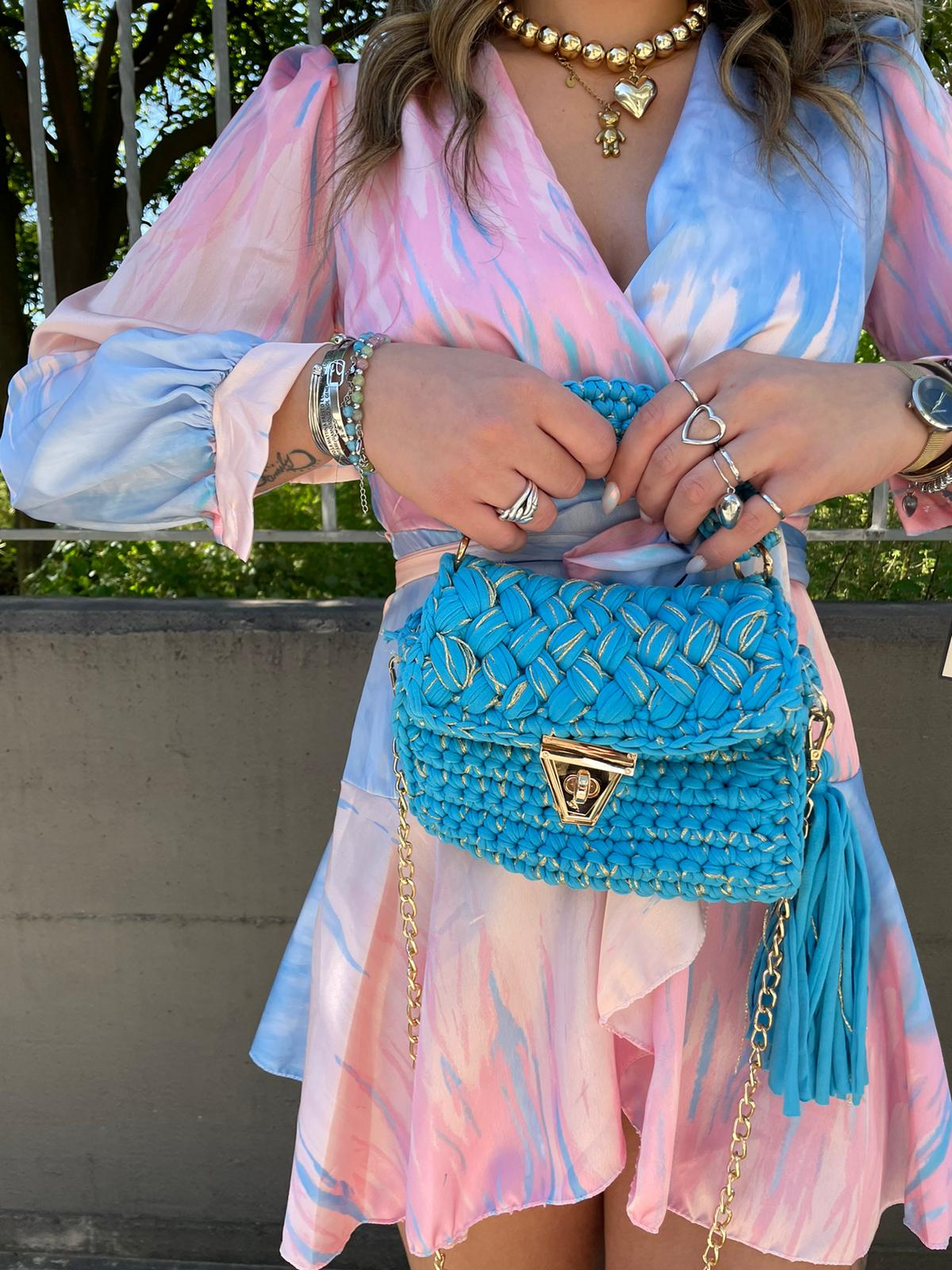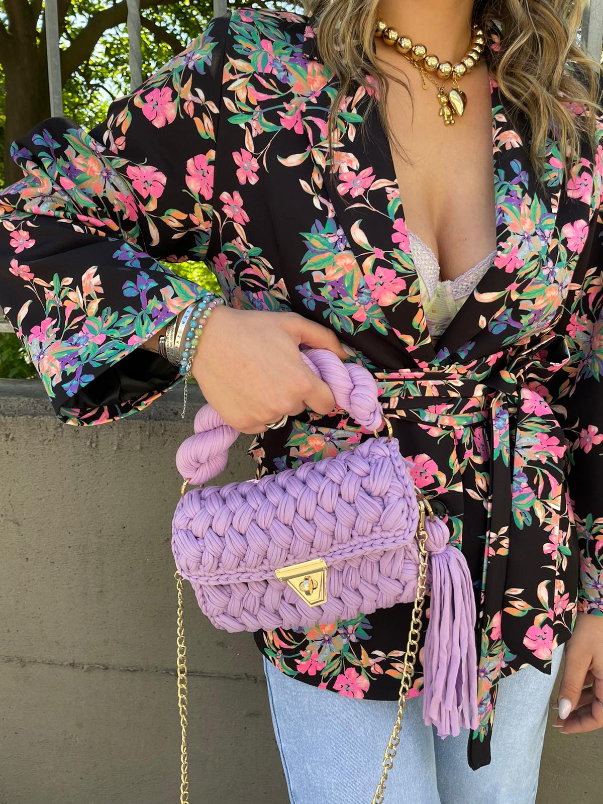 Borsa uncinetto con inserti laminati