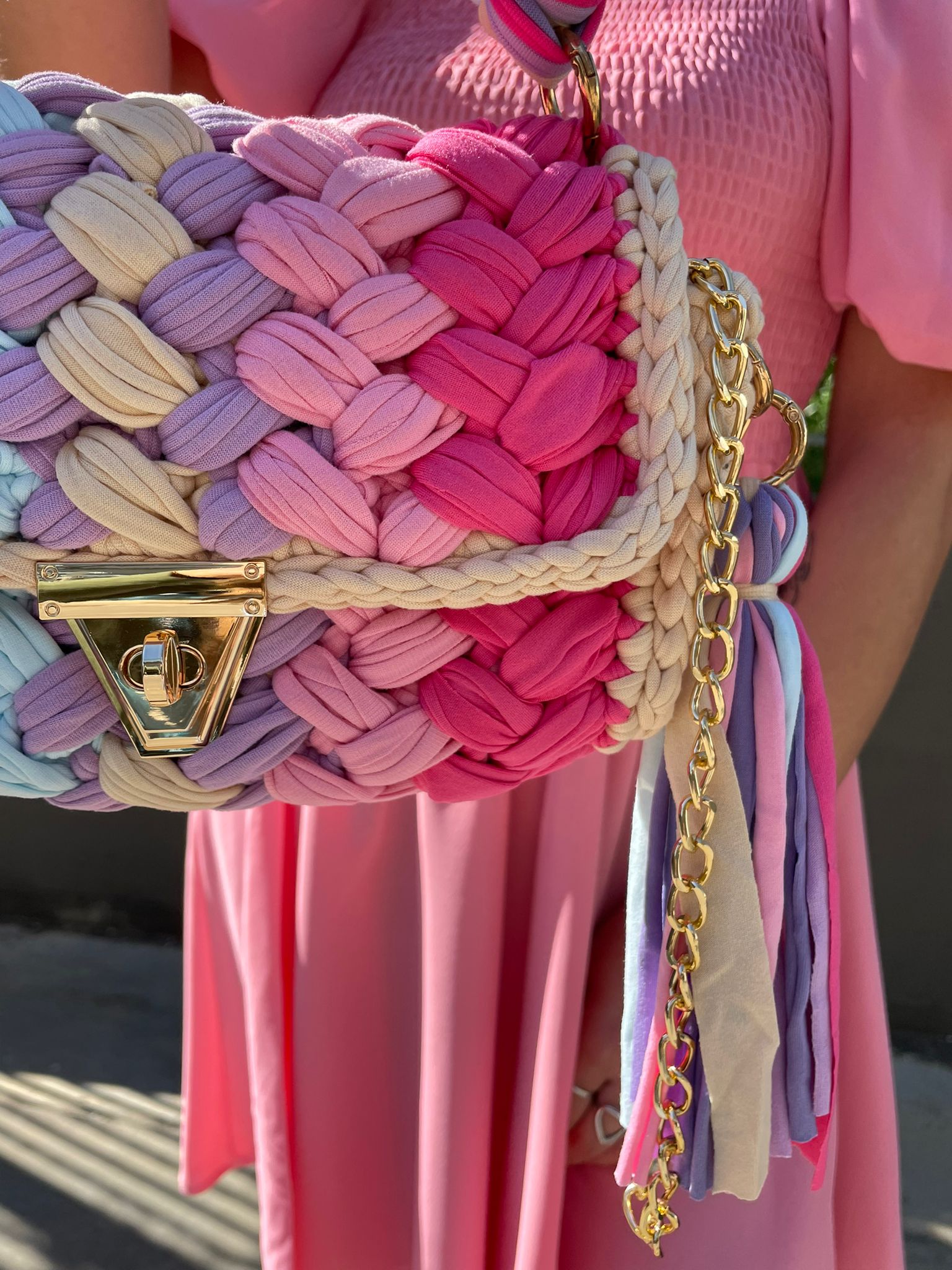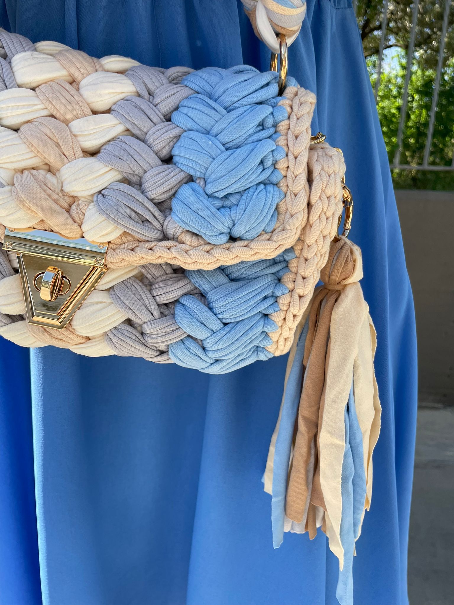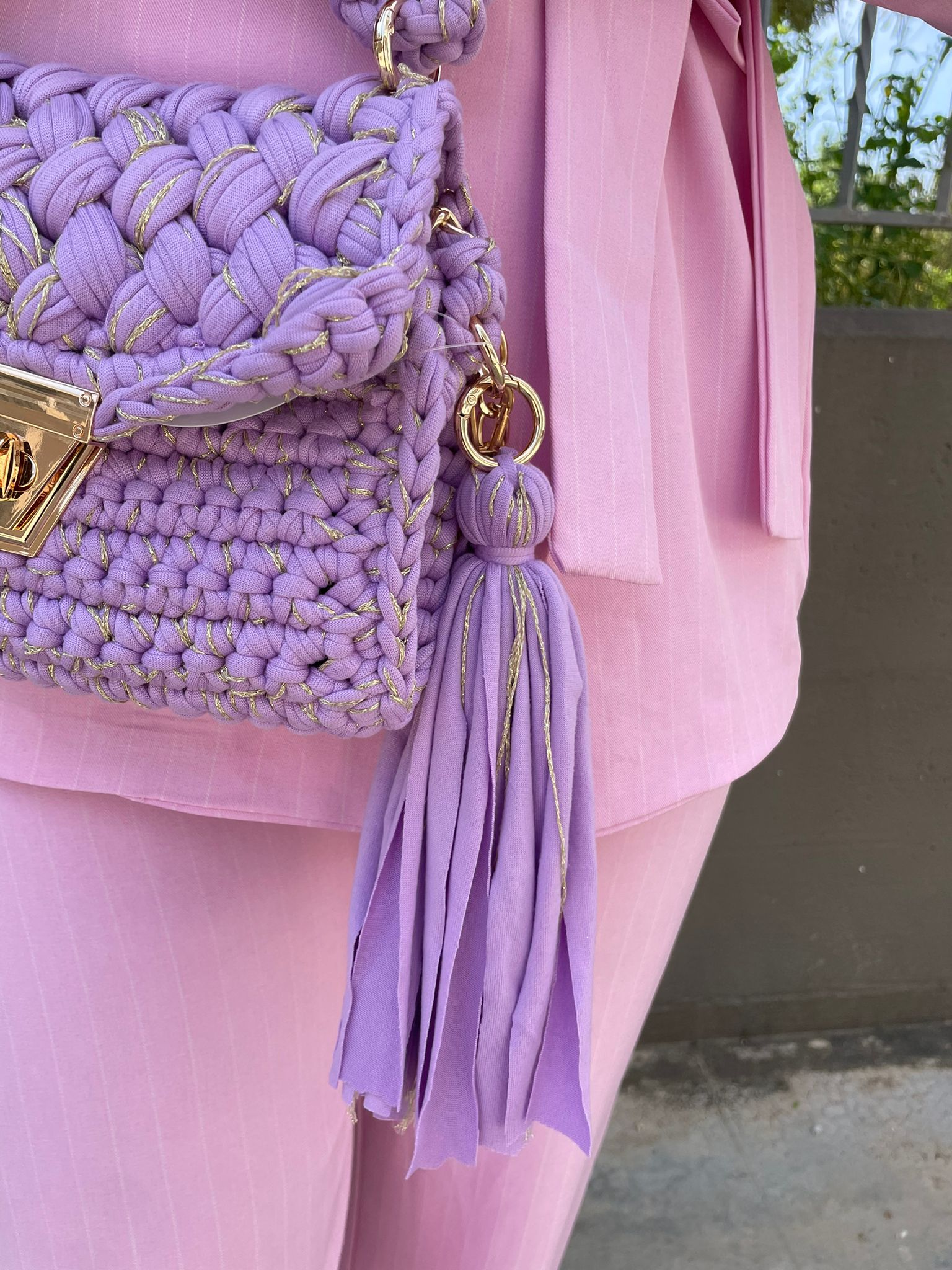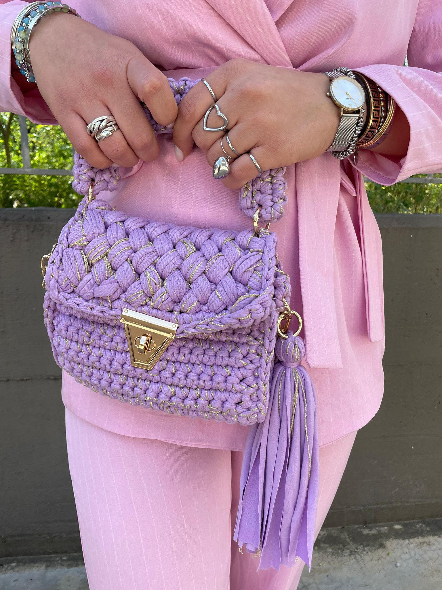 Borsa uncinetto con inserti laminati
