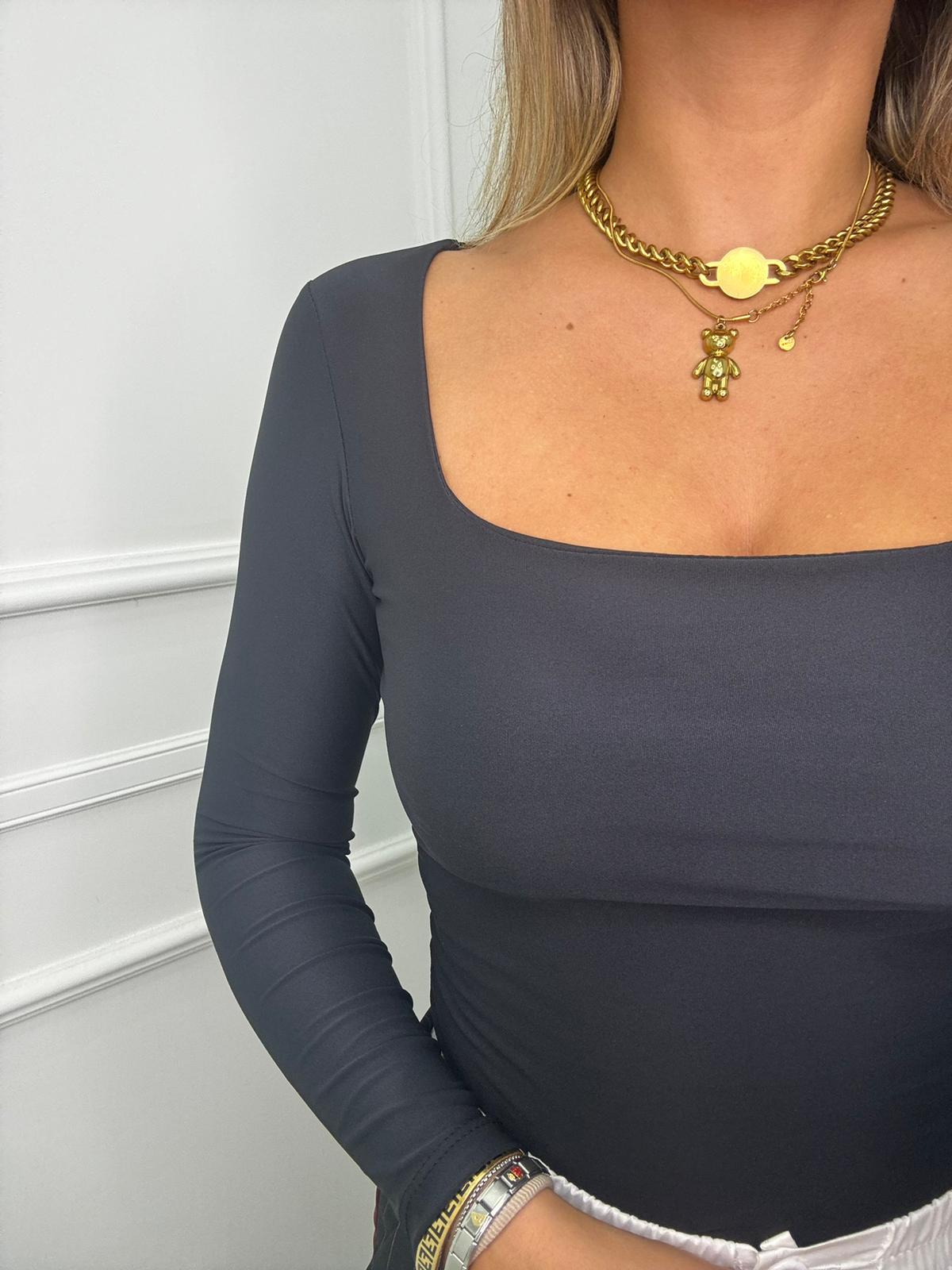 Body in lycra tinta unita scollo quadrato