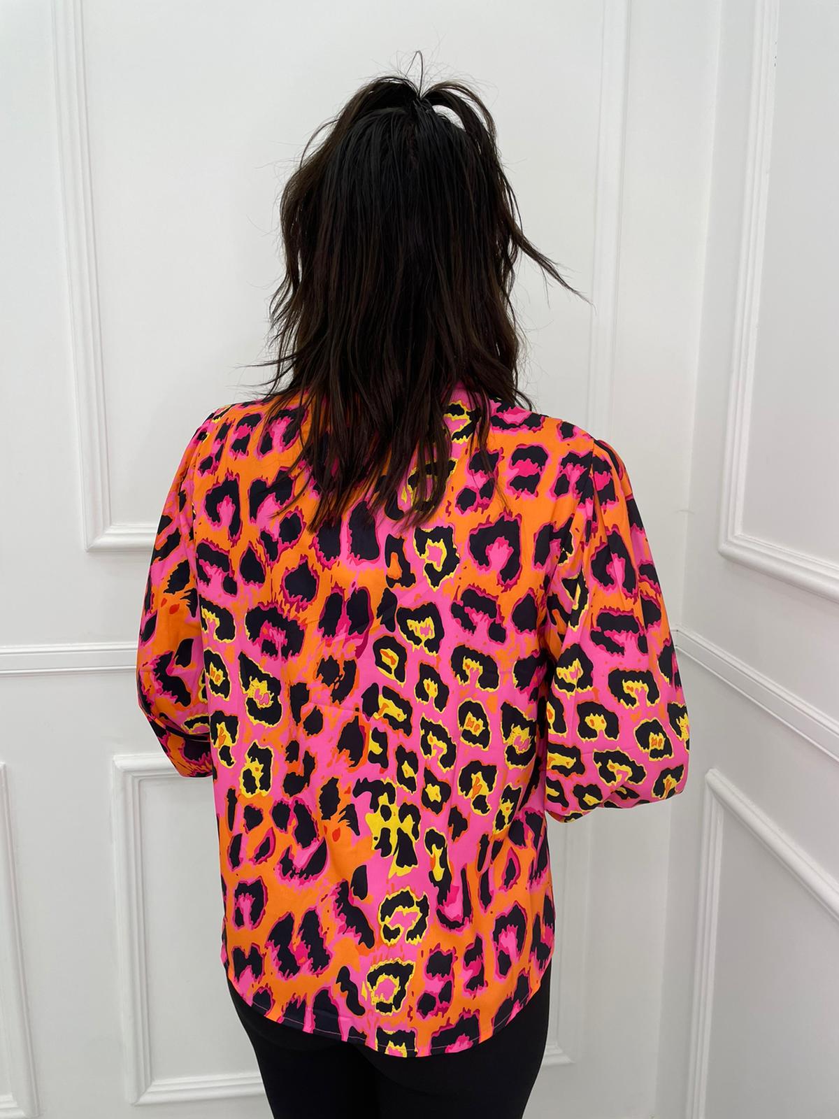 Camicia animalier colorata con spalle a sbuffo