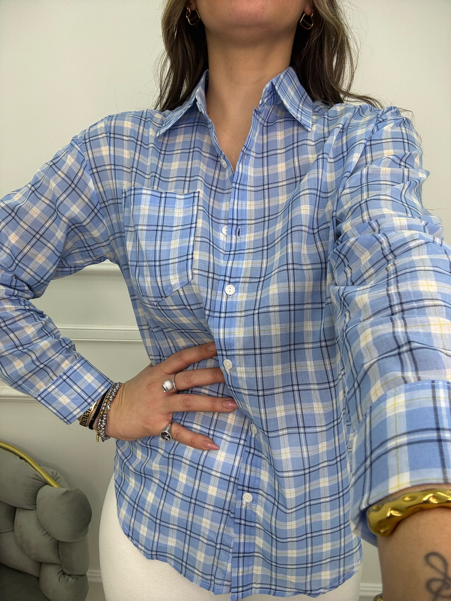 Camicia velata fantasia quadrettini