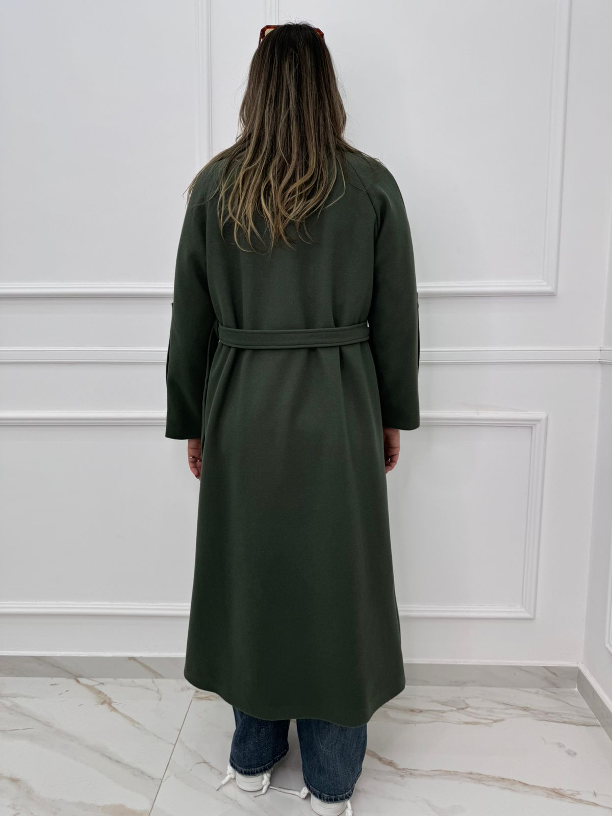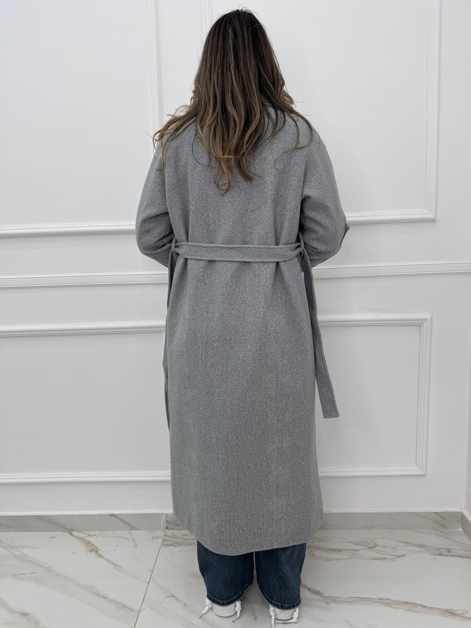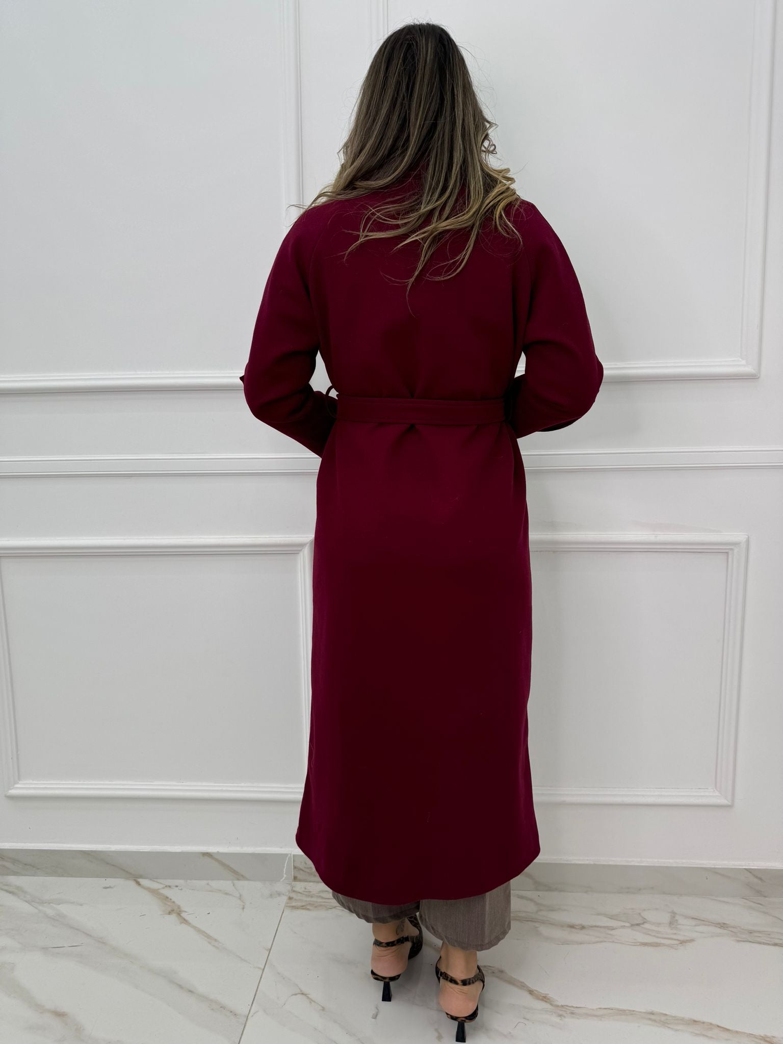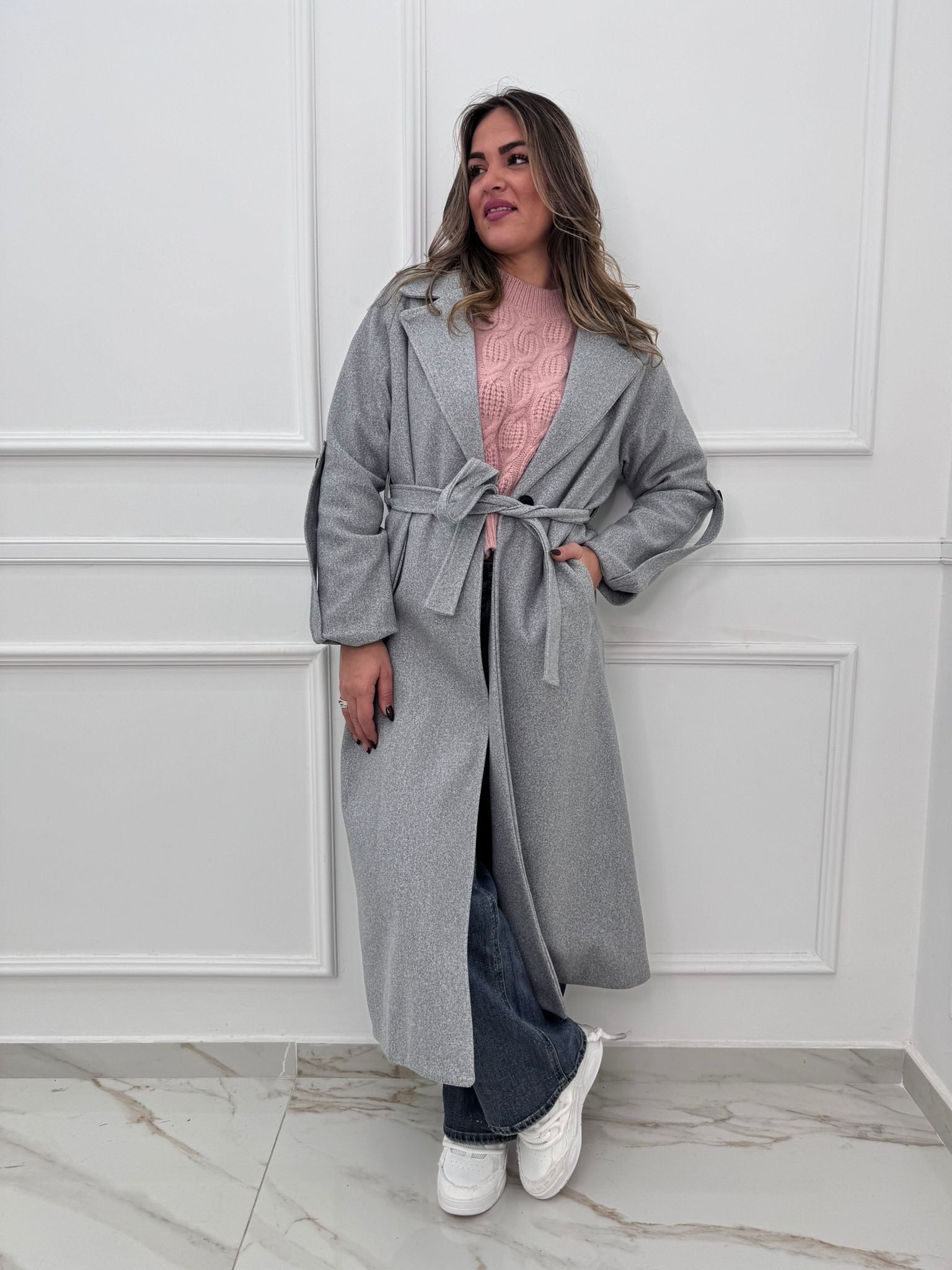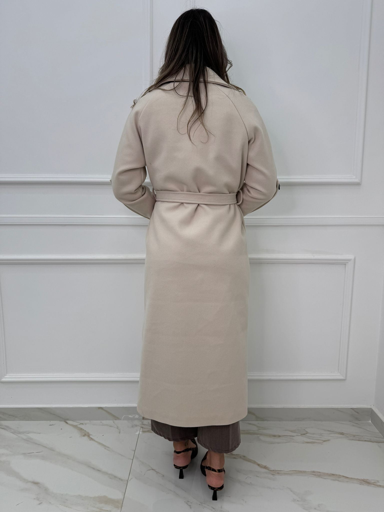 Cappotto lungo con cintura in vita