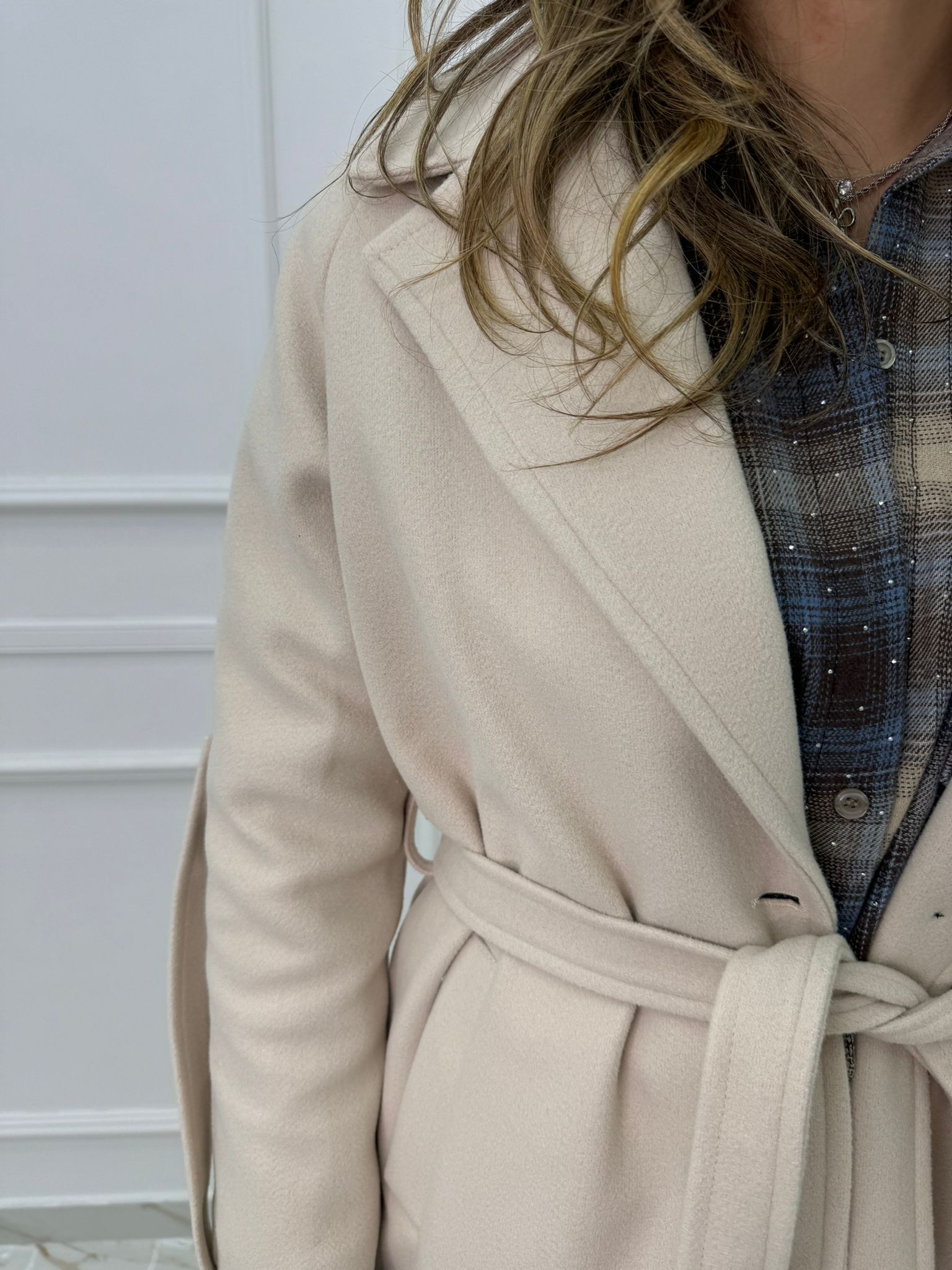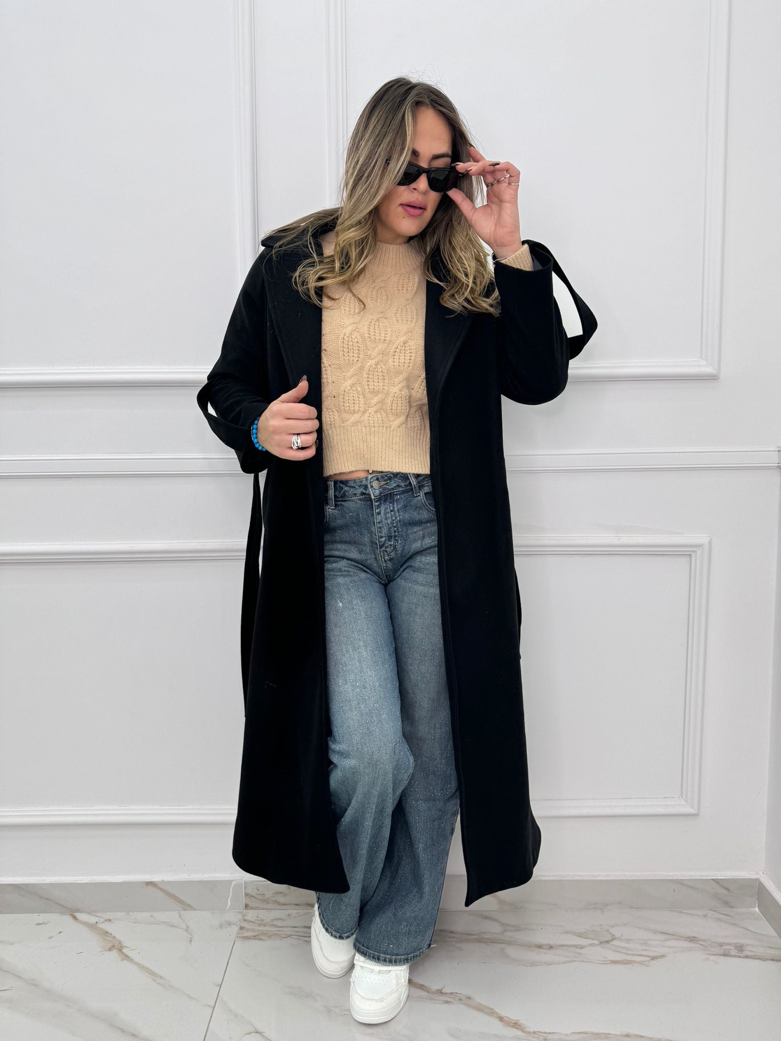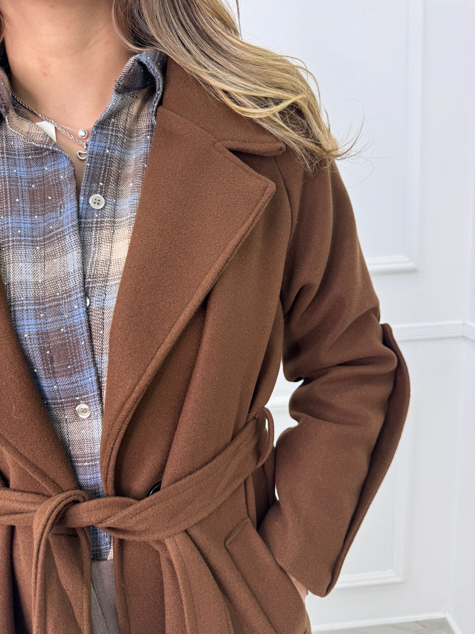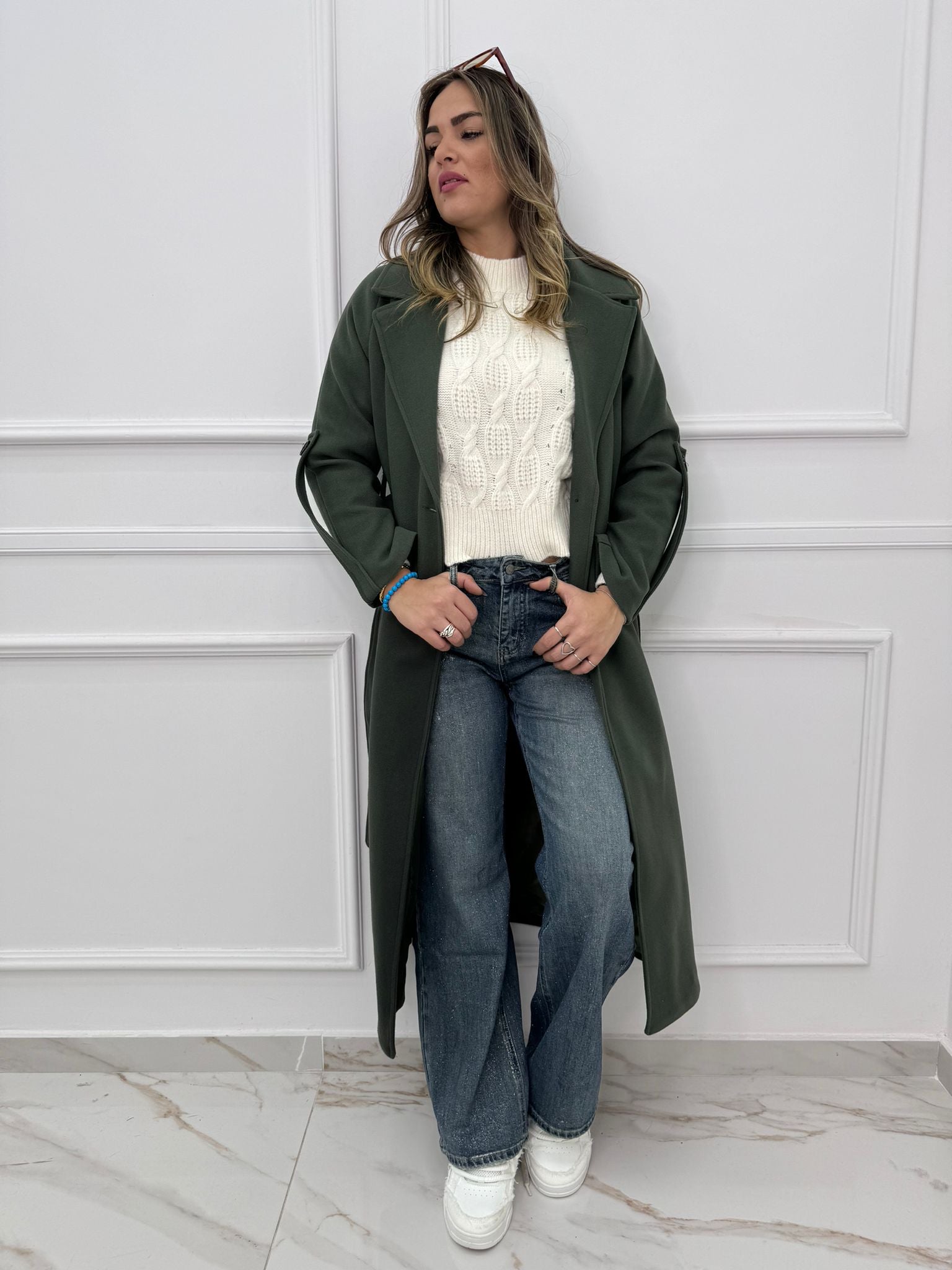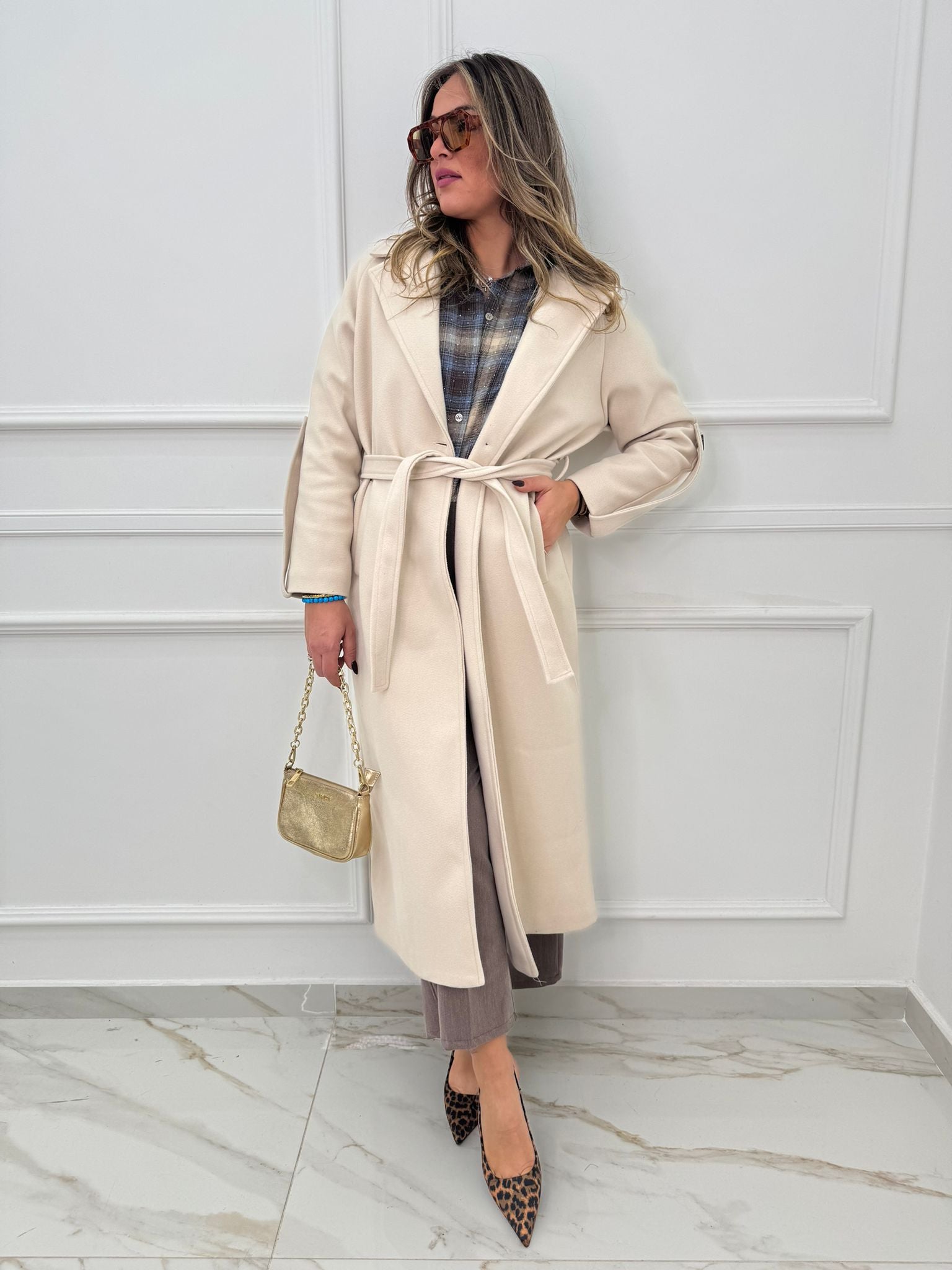 Cappotto lungo con cintura in vita