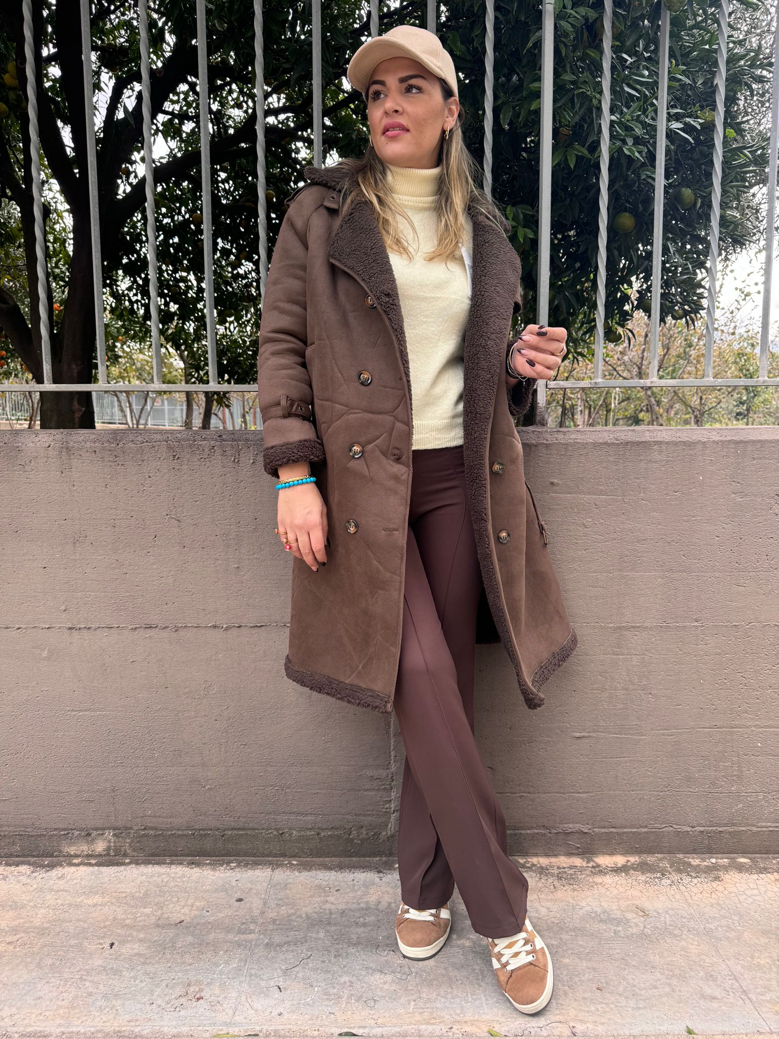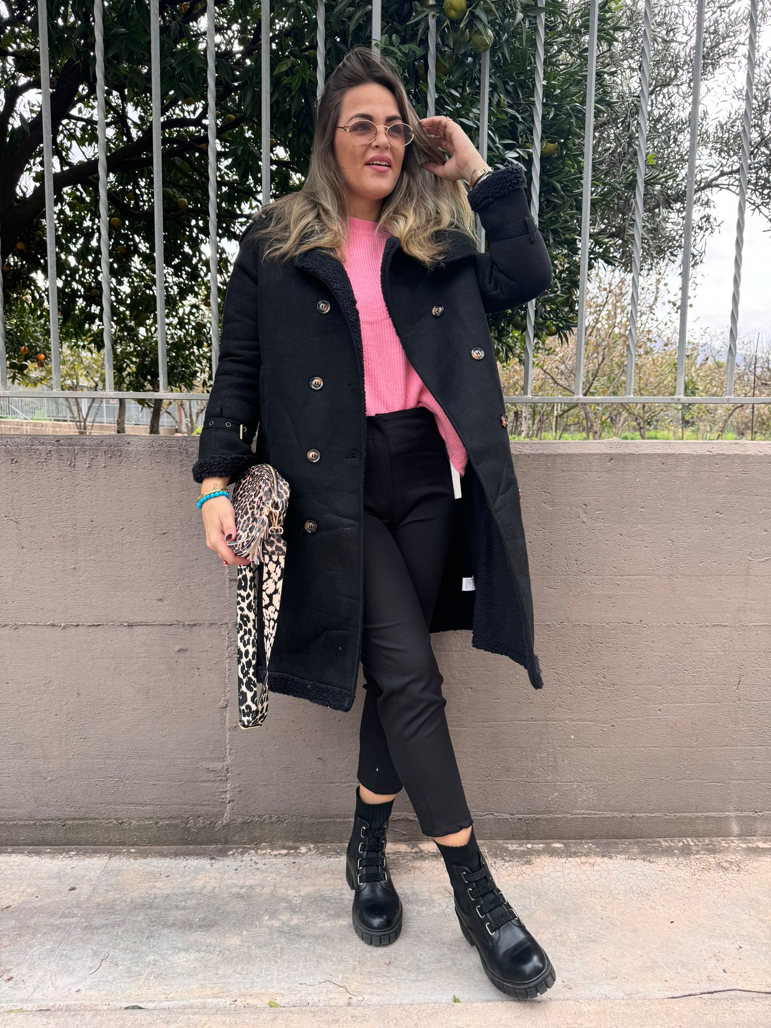- La modella è una taglia 44, alta 1,79m e indossa la taglia "M/L"