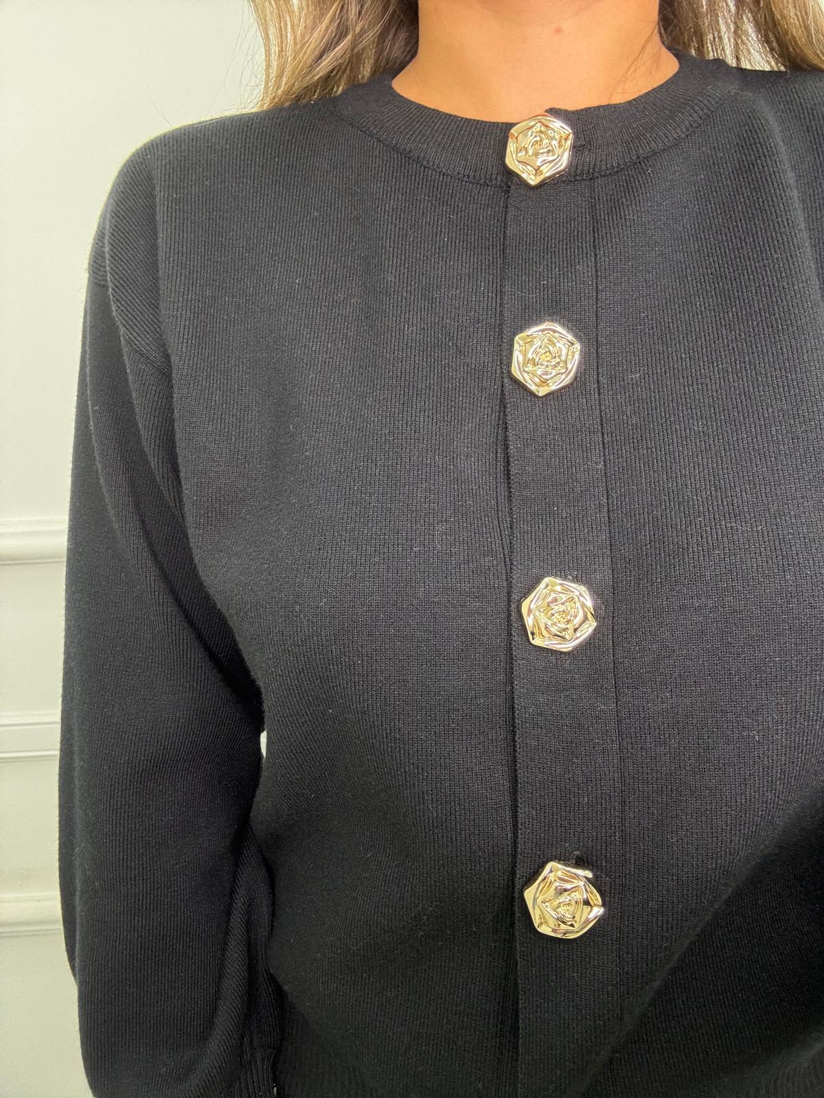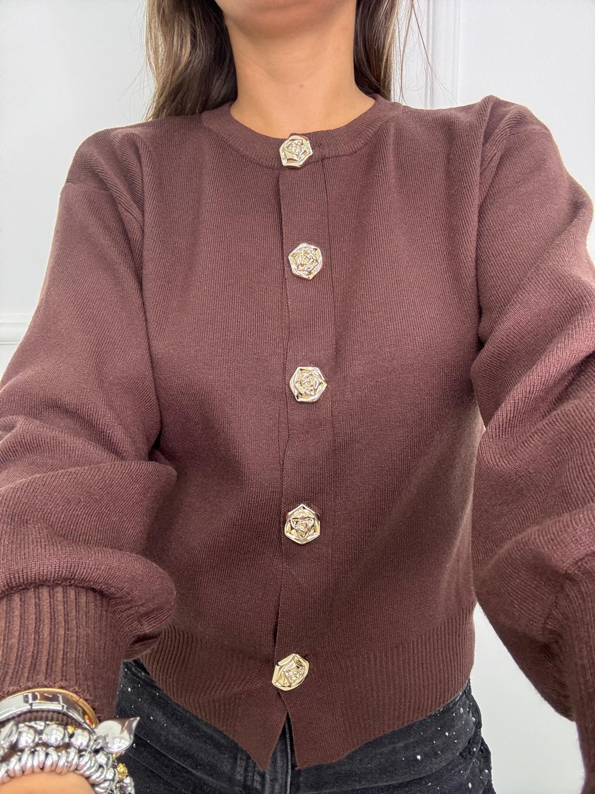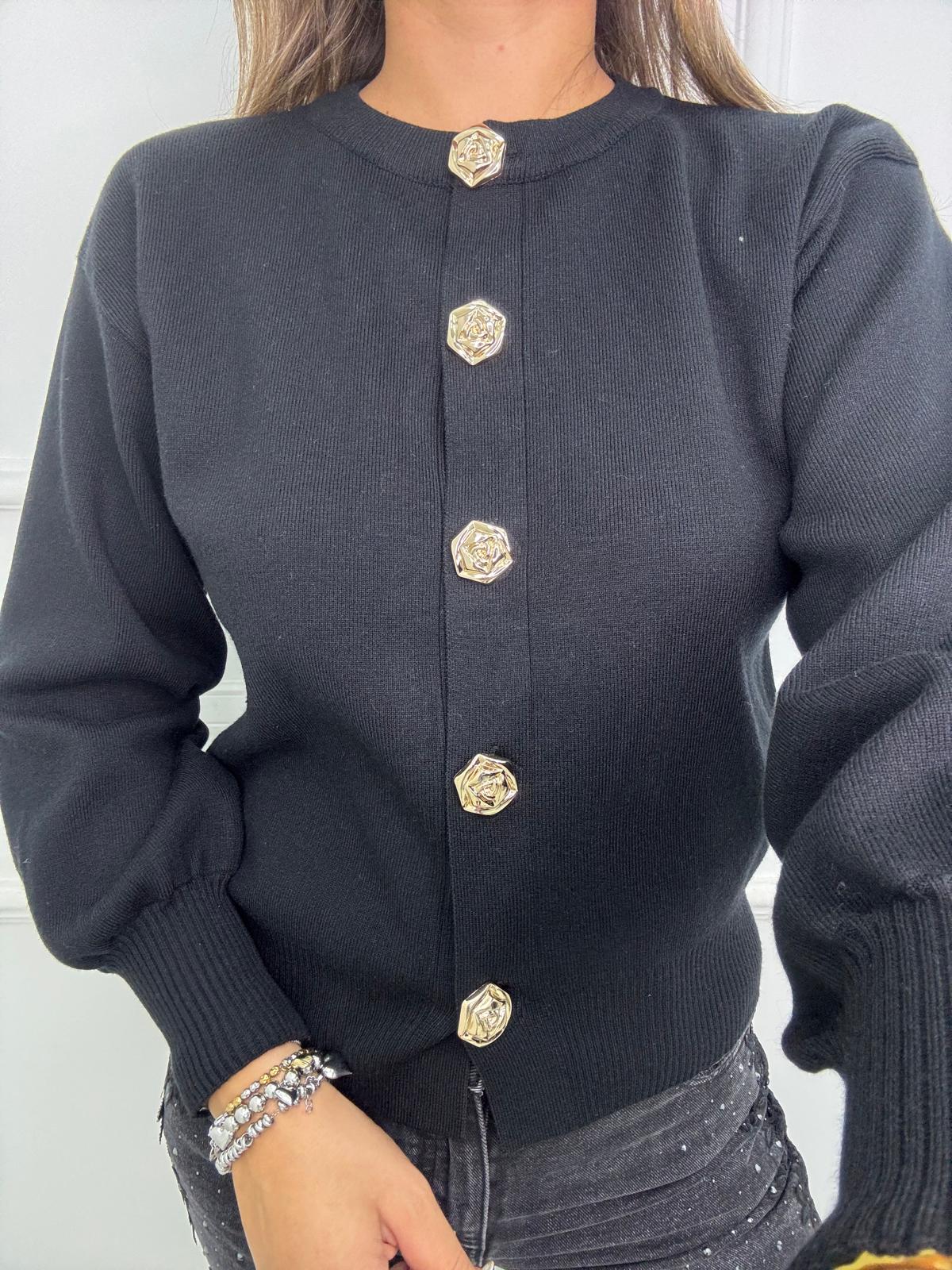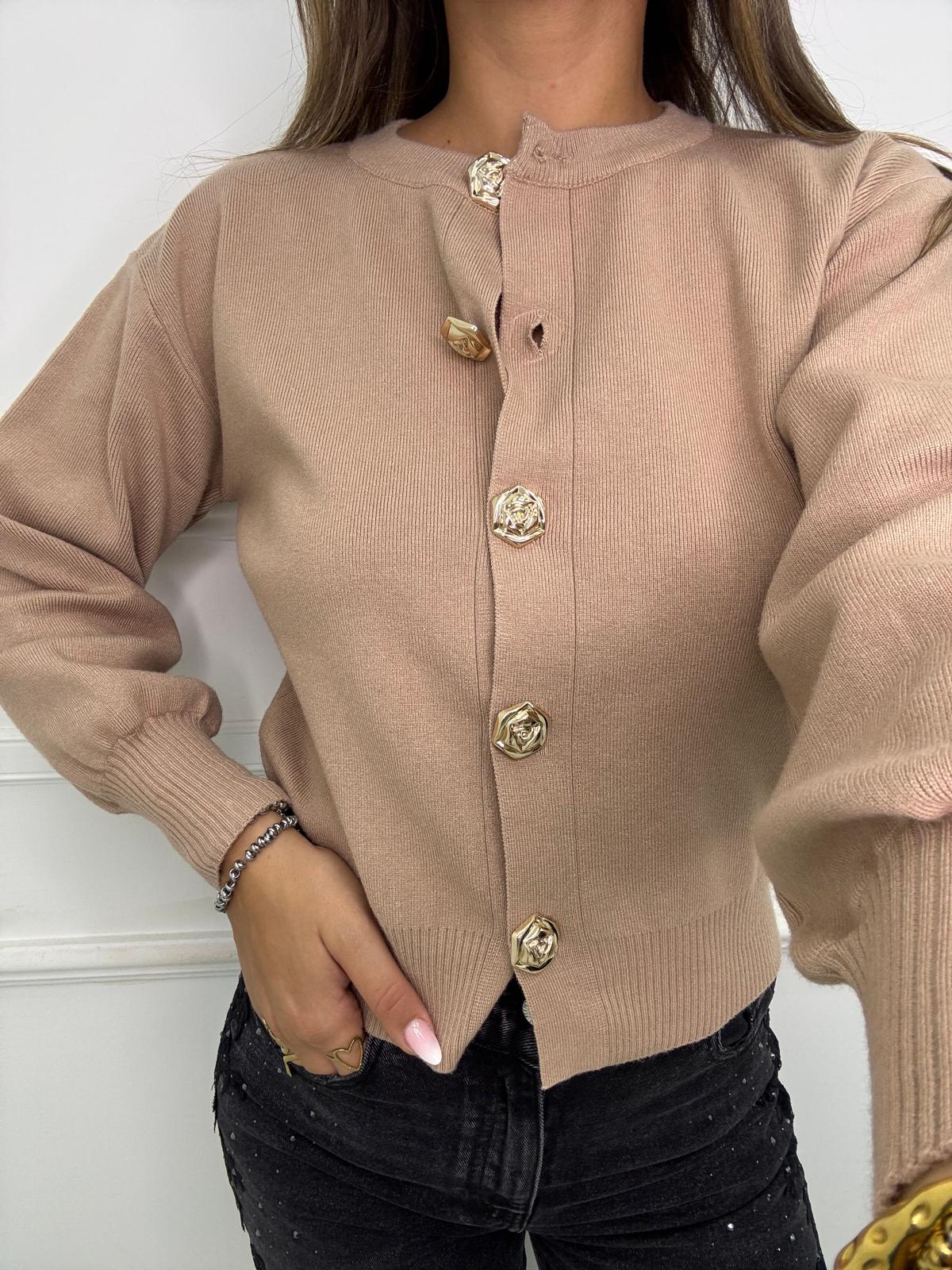 Cardigan con maniche a palloncino e bottoni oro