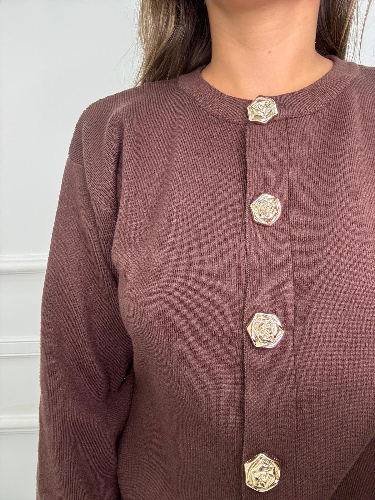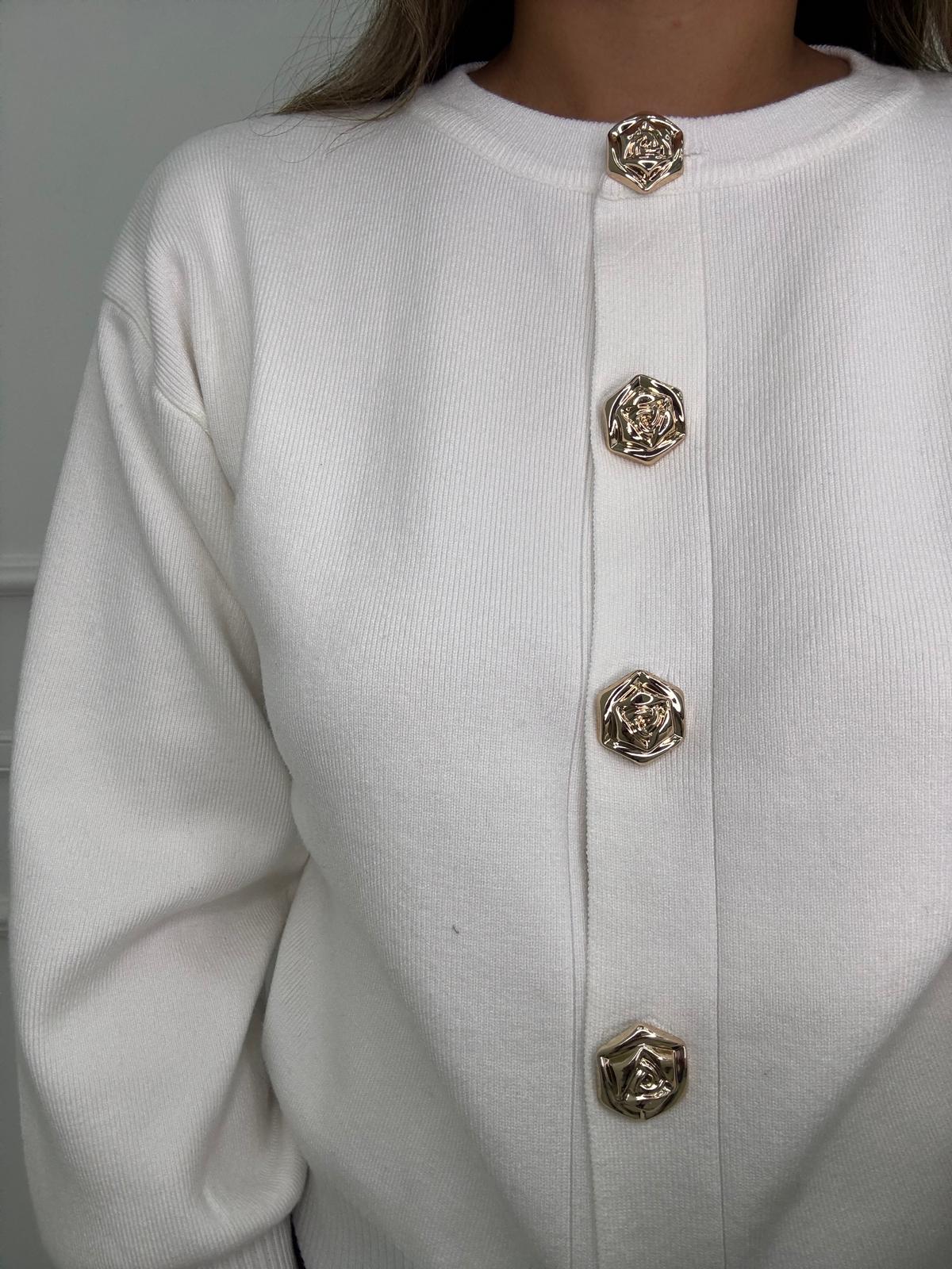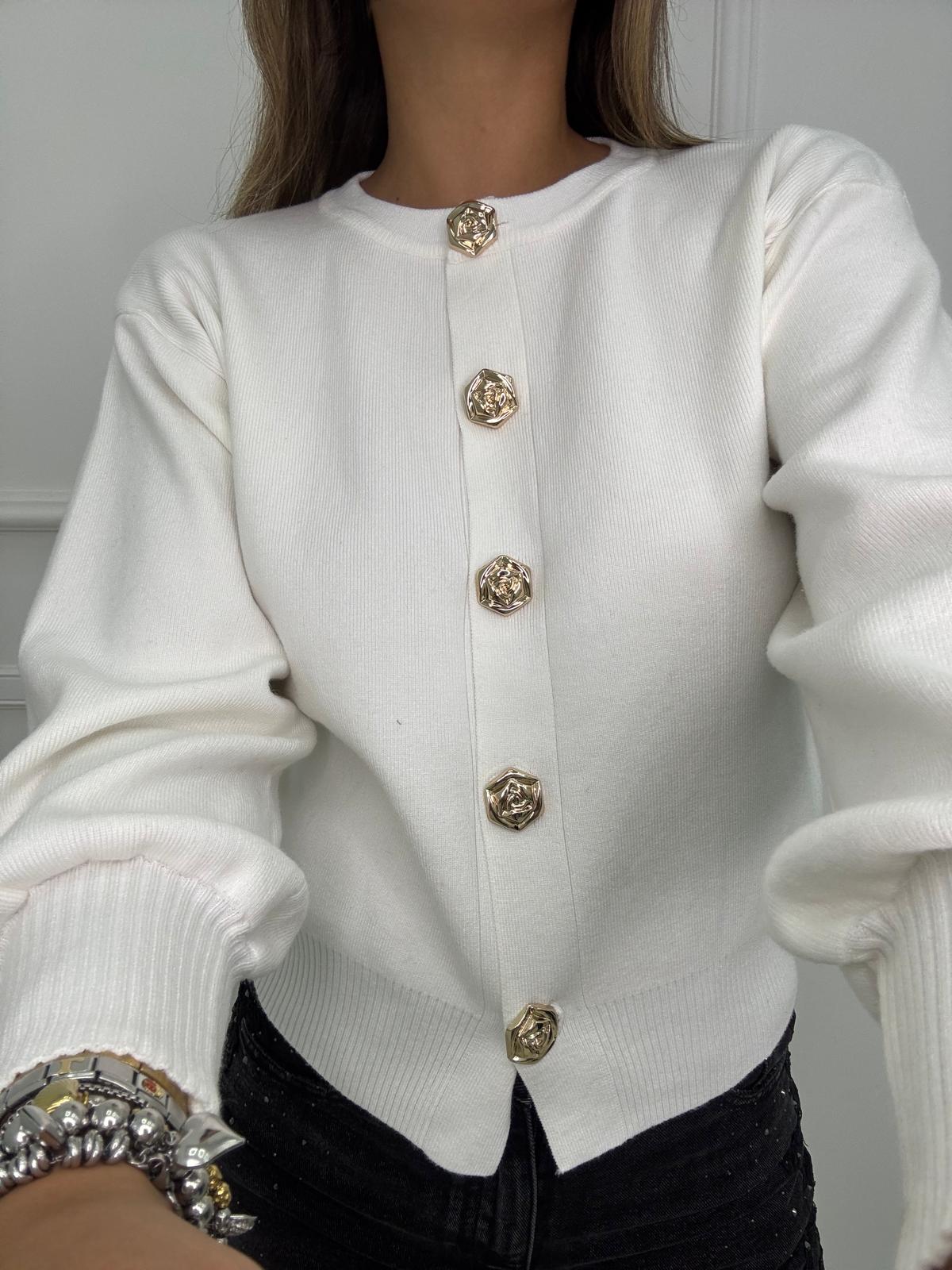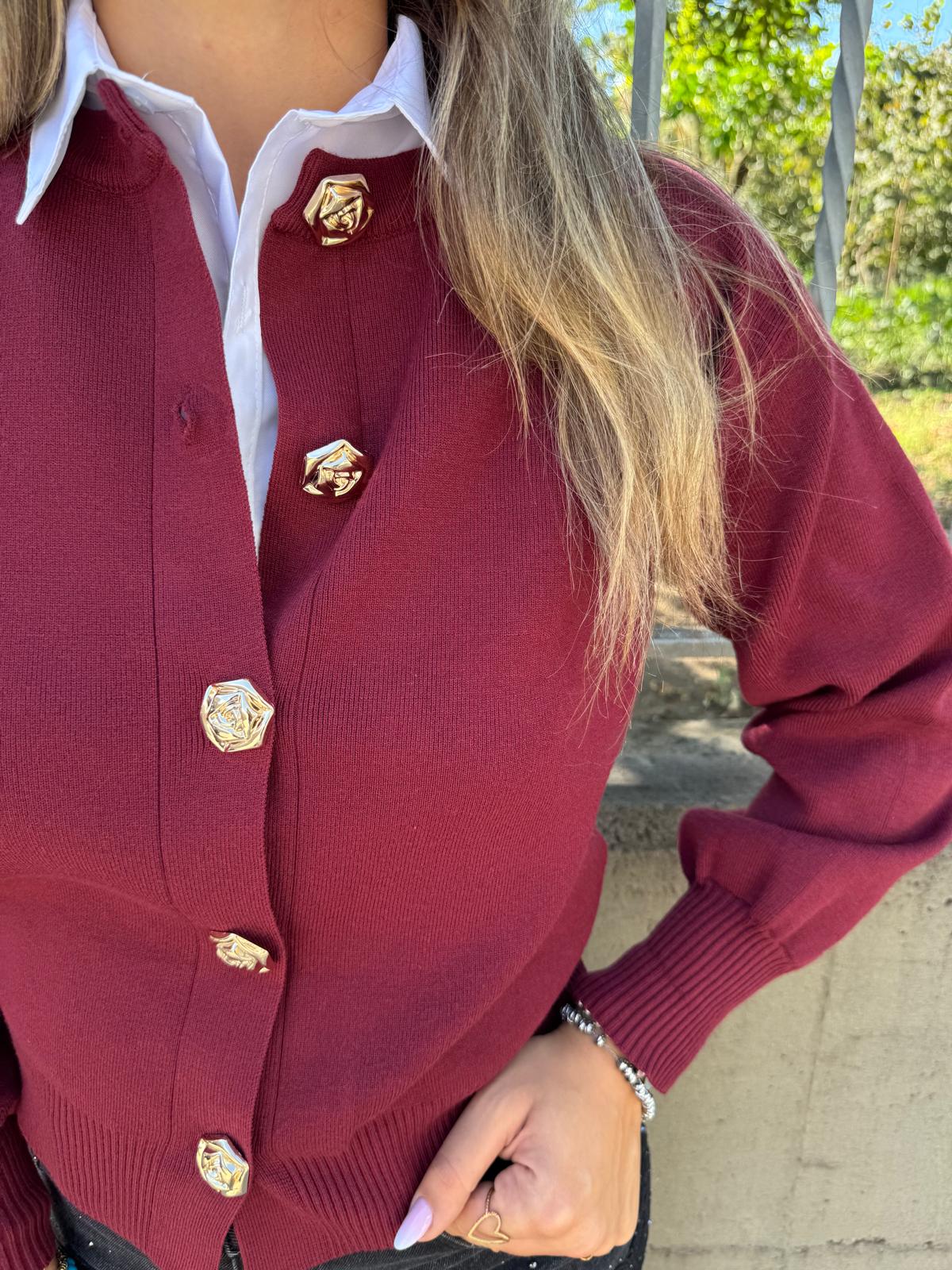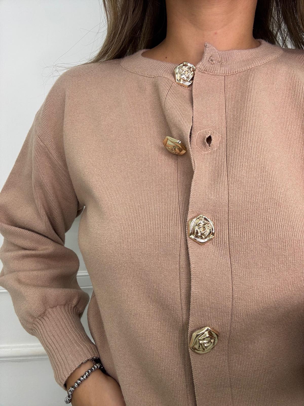 Cardigan con maniche a palloncino e bottoni oro