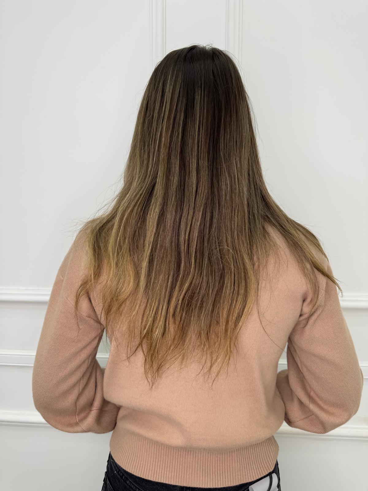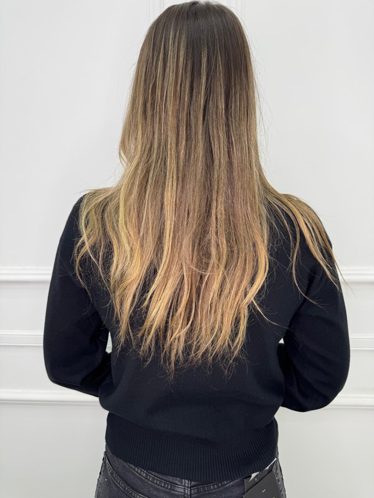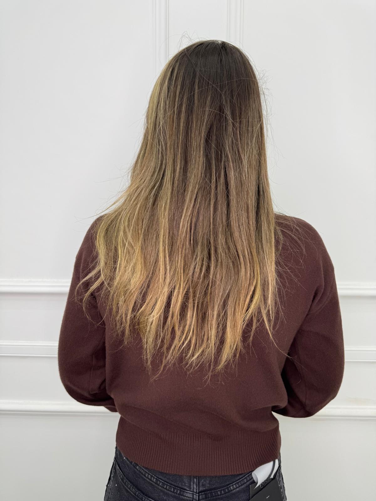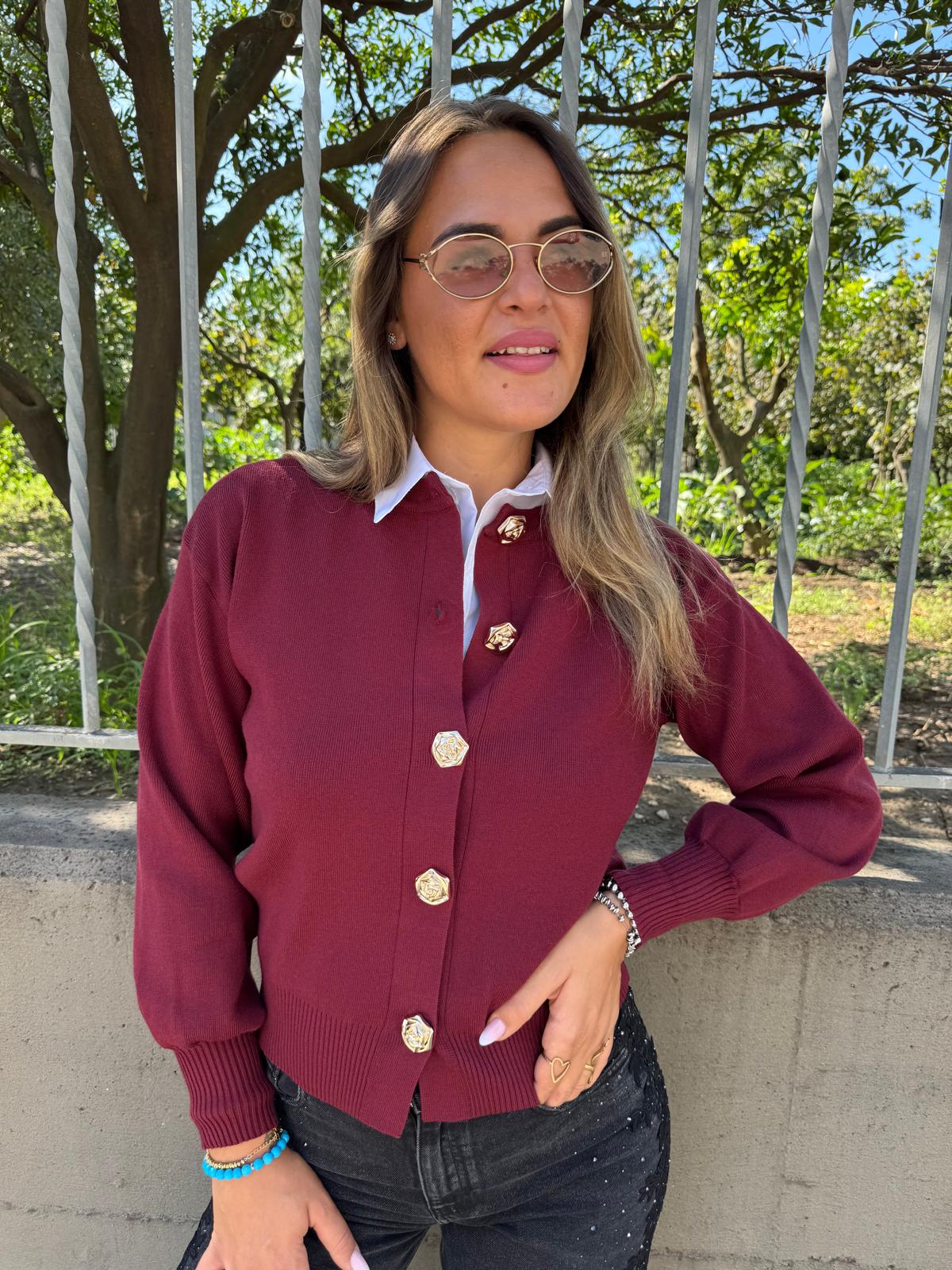 Cardigan con maniche a palloncino e bottoni oro