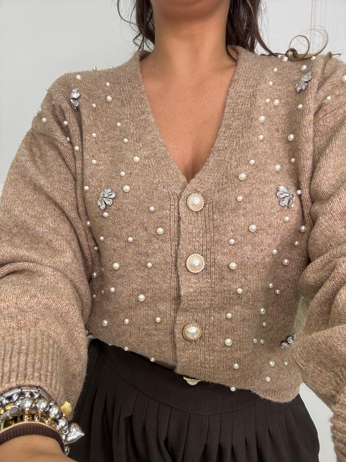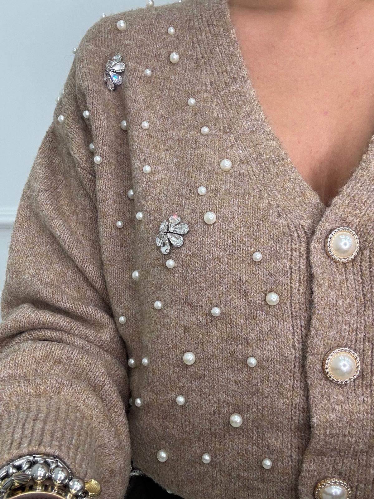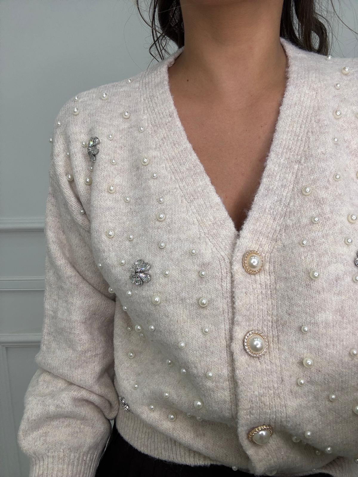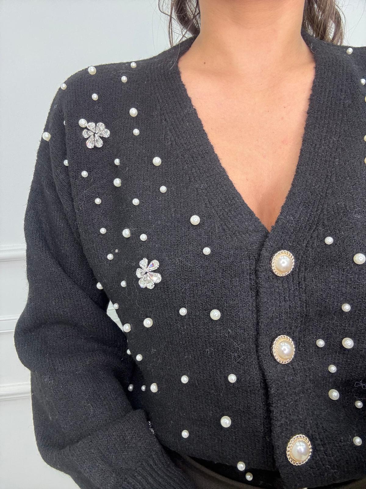 Cardigan con perle e applicazioni swarovski