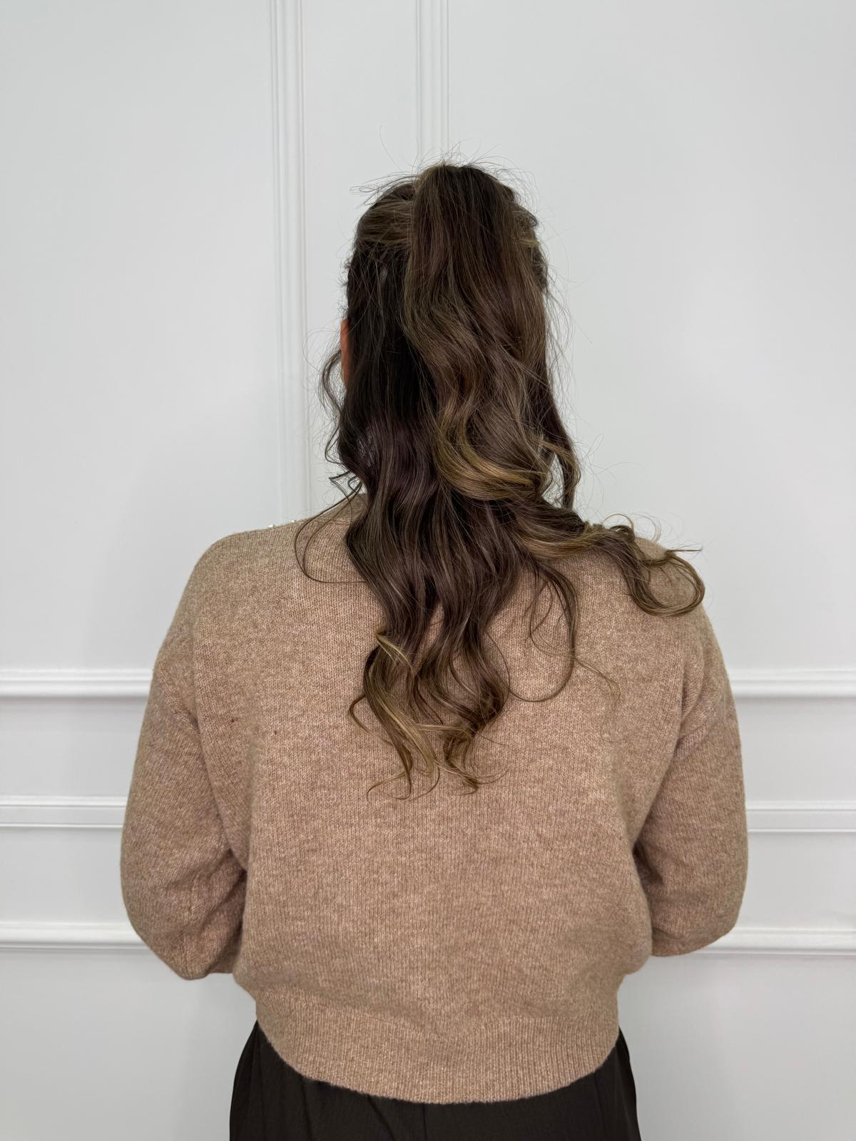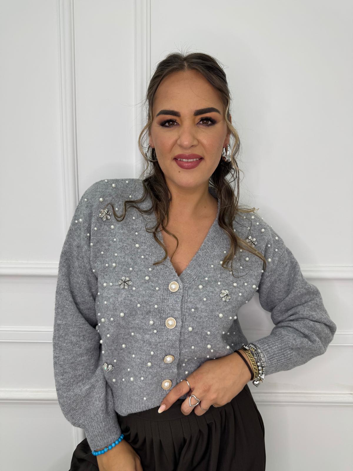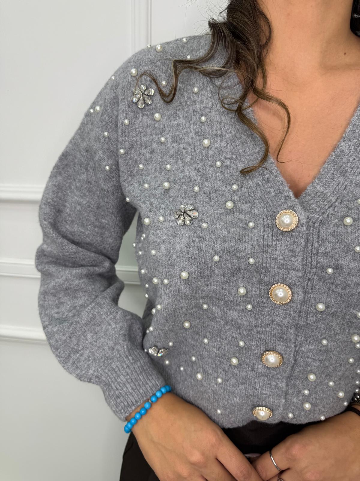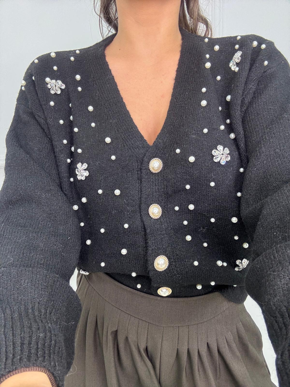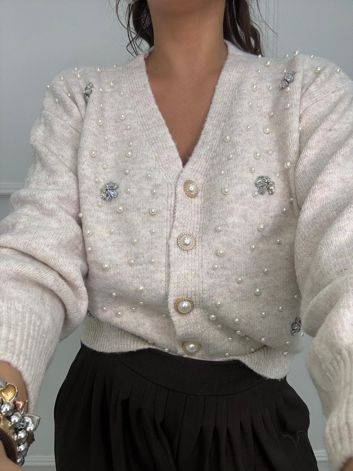 Cardigan con perle e applicazioni swarovski