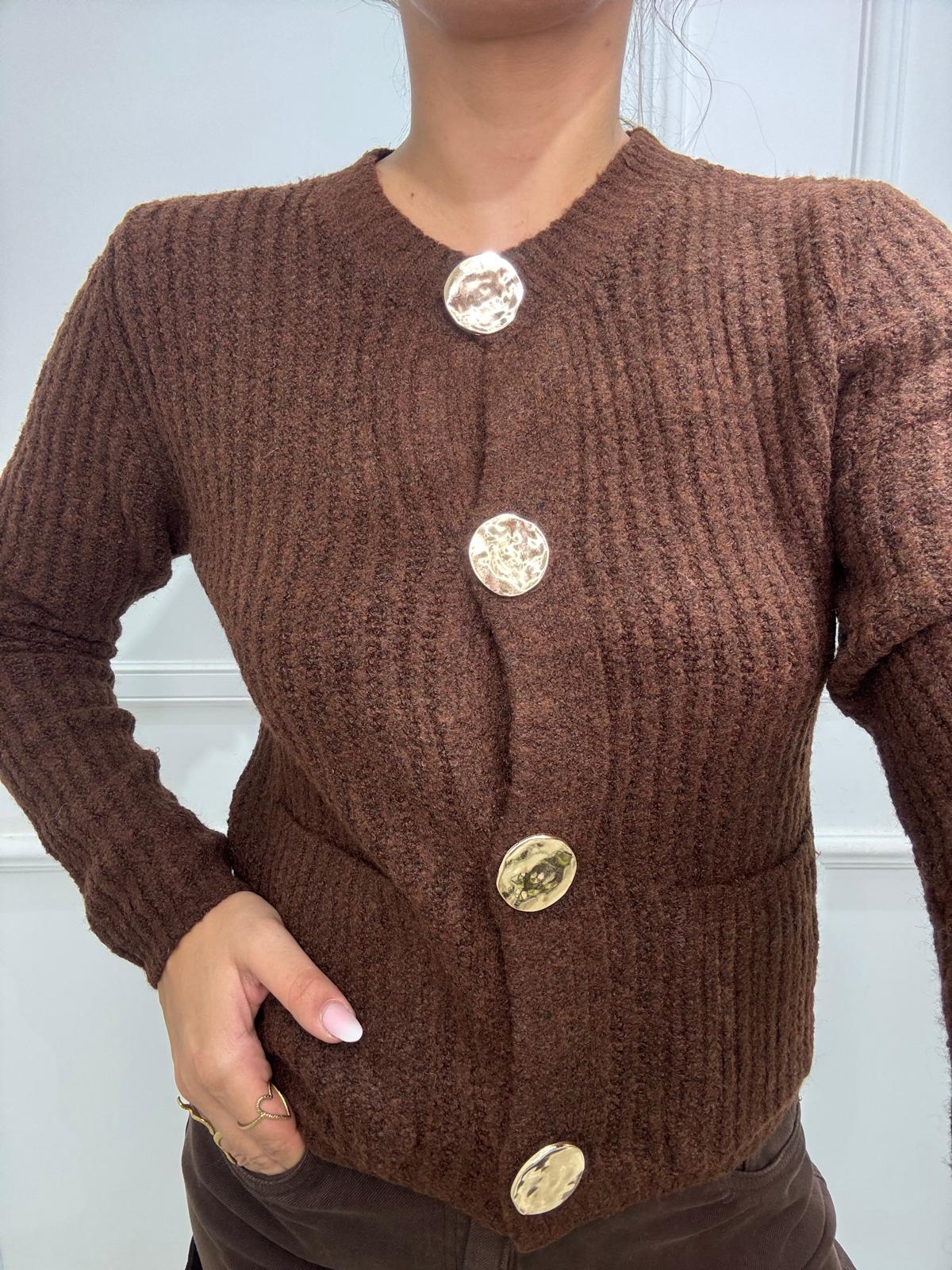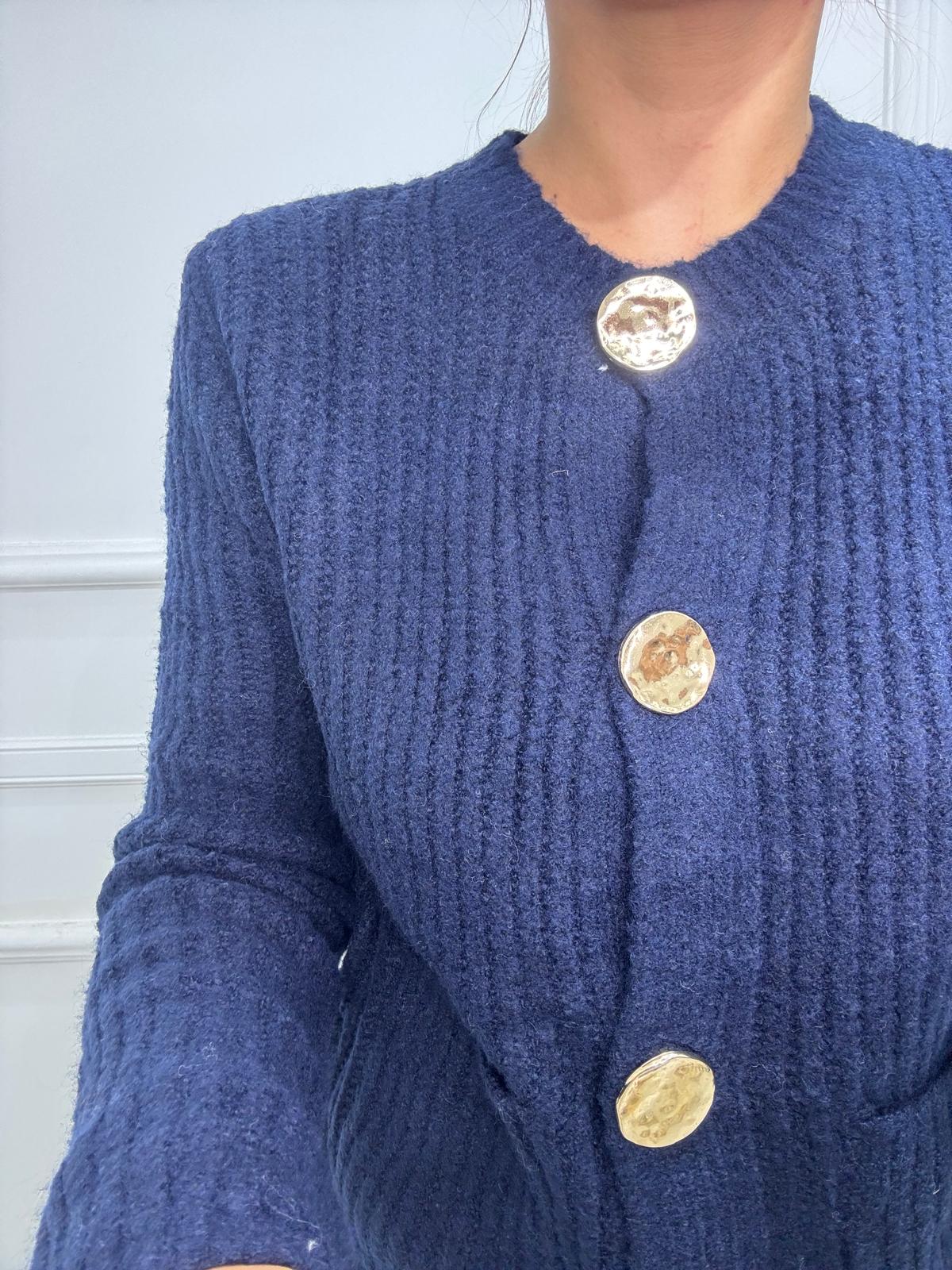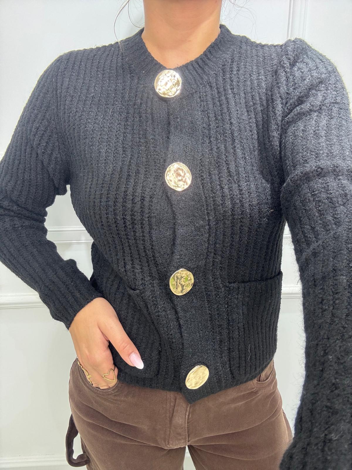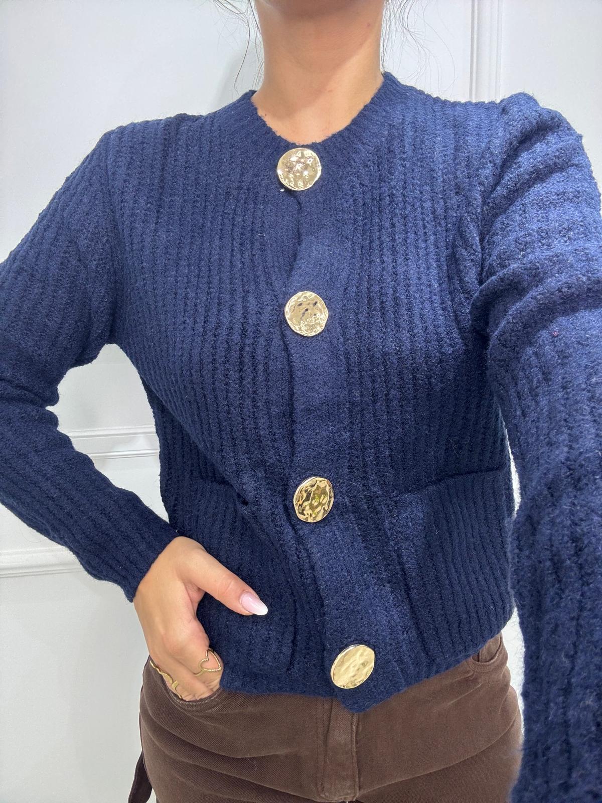 Cardigan giro collo con bottoni e tasche