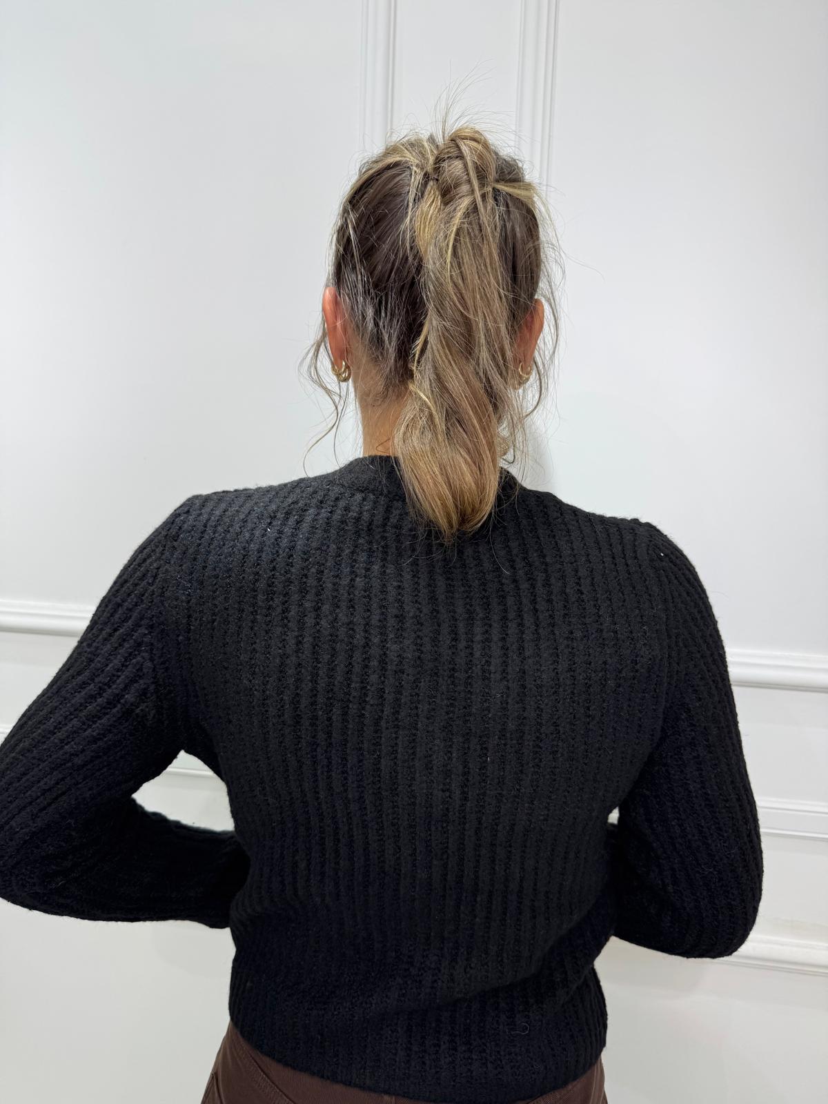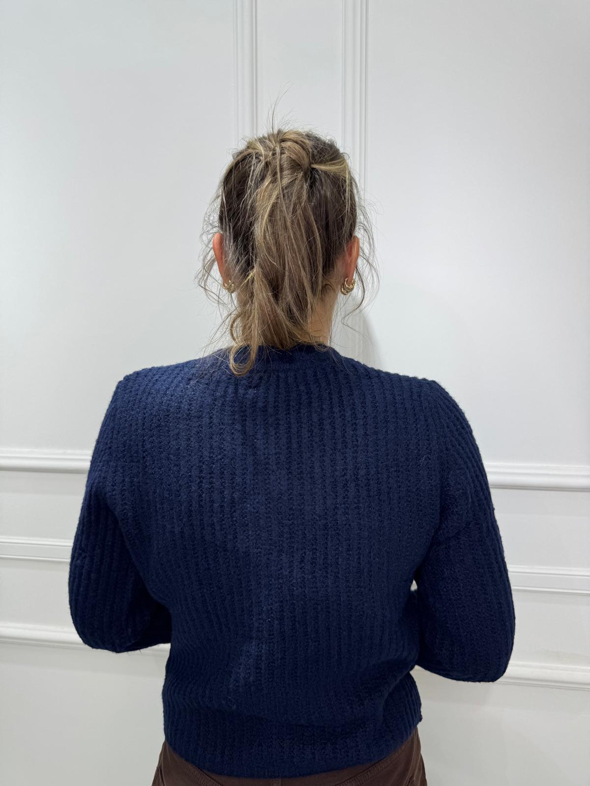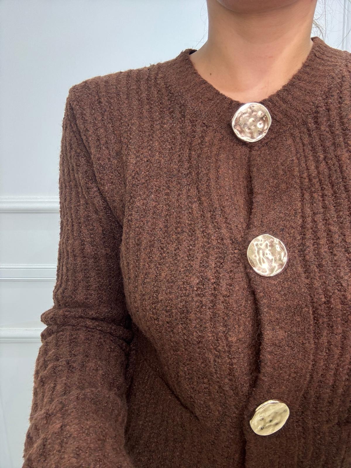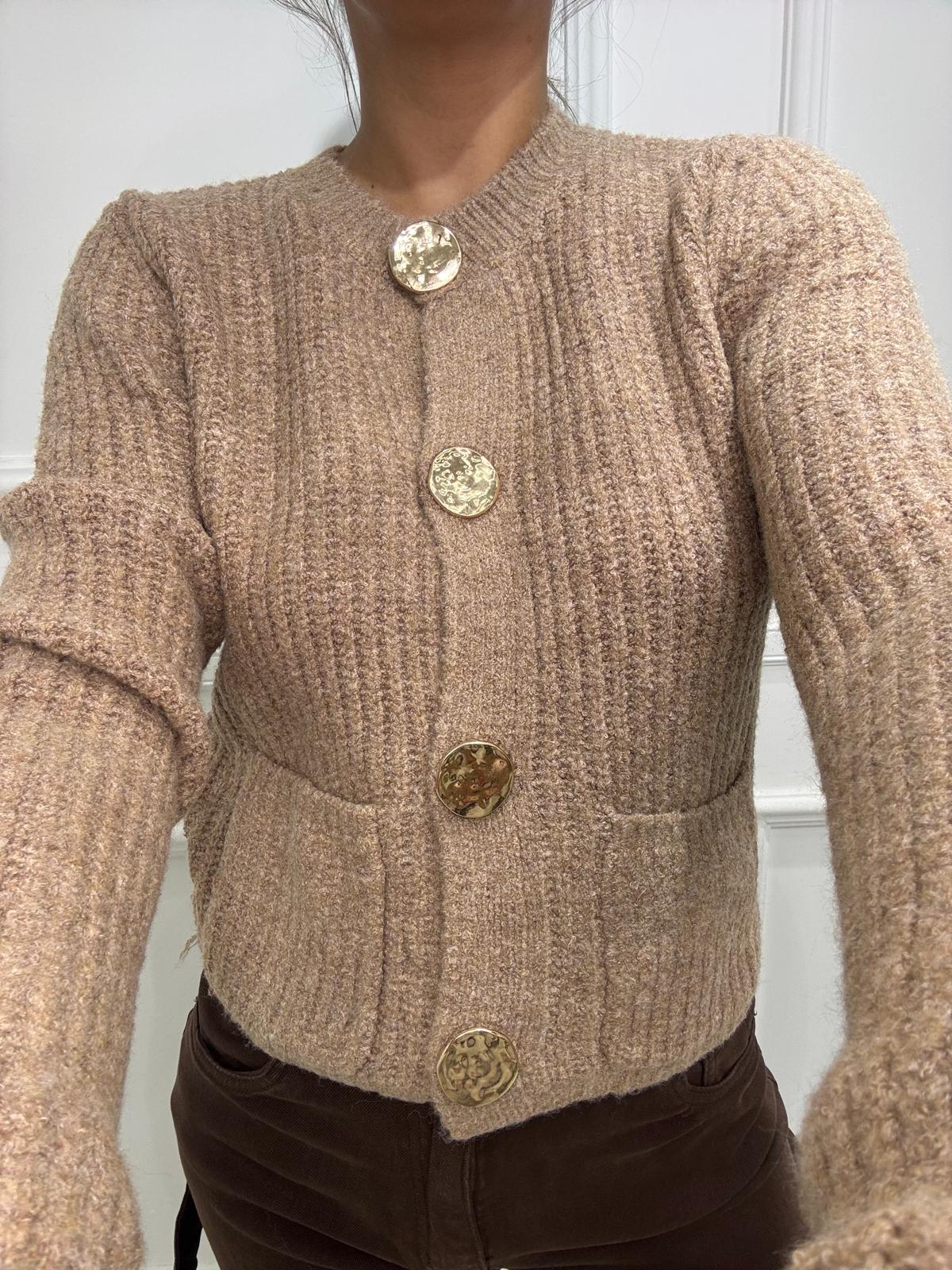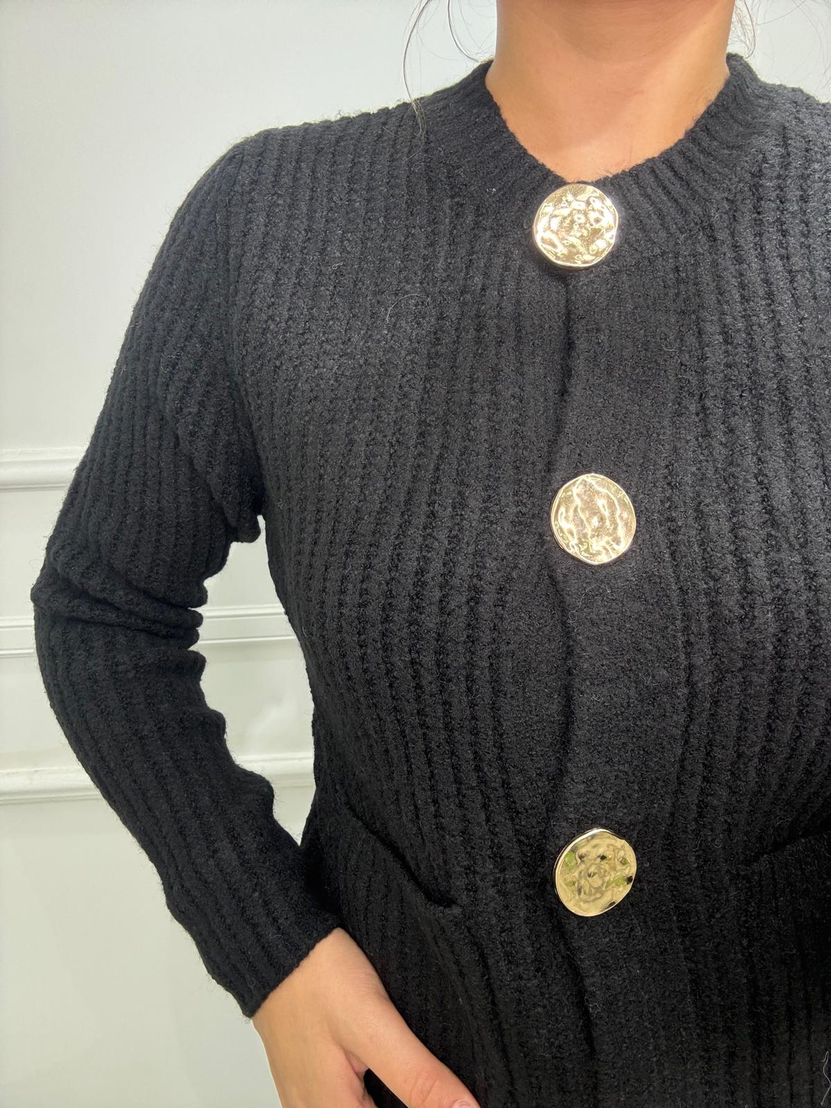 Cardigan giro collo con bottoni e tasche