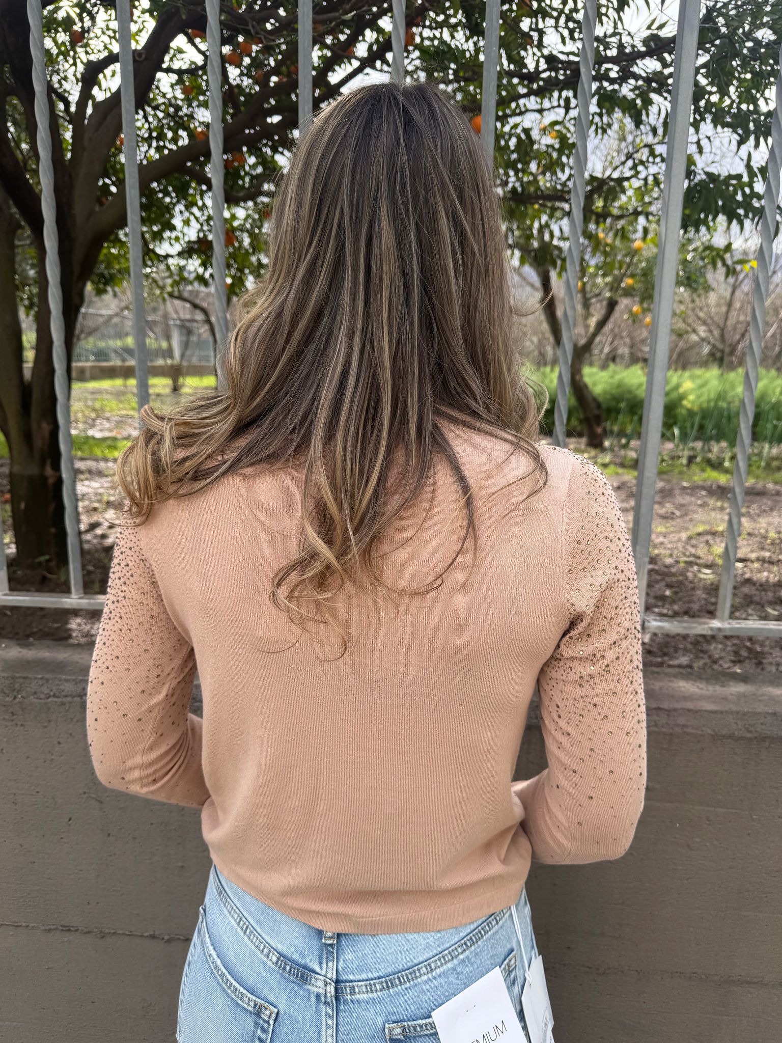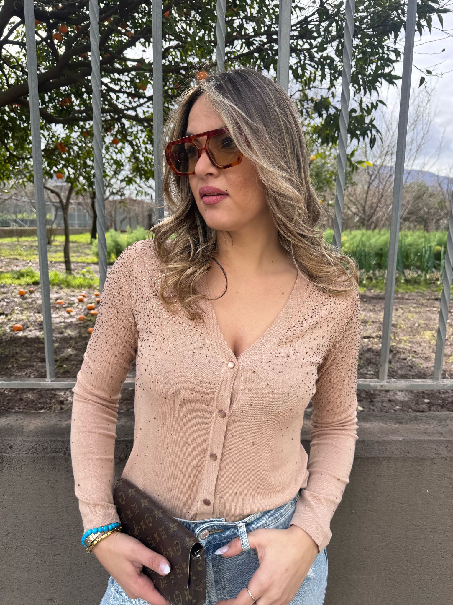 Cardigan in filo scollo a V con swarovski