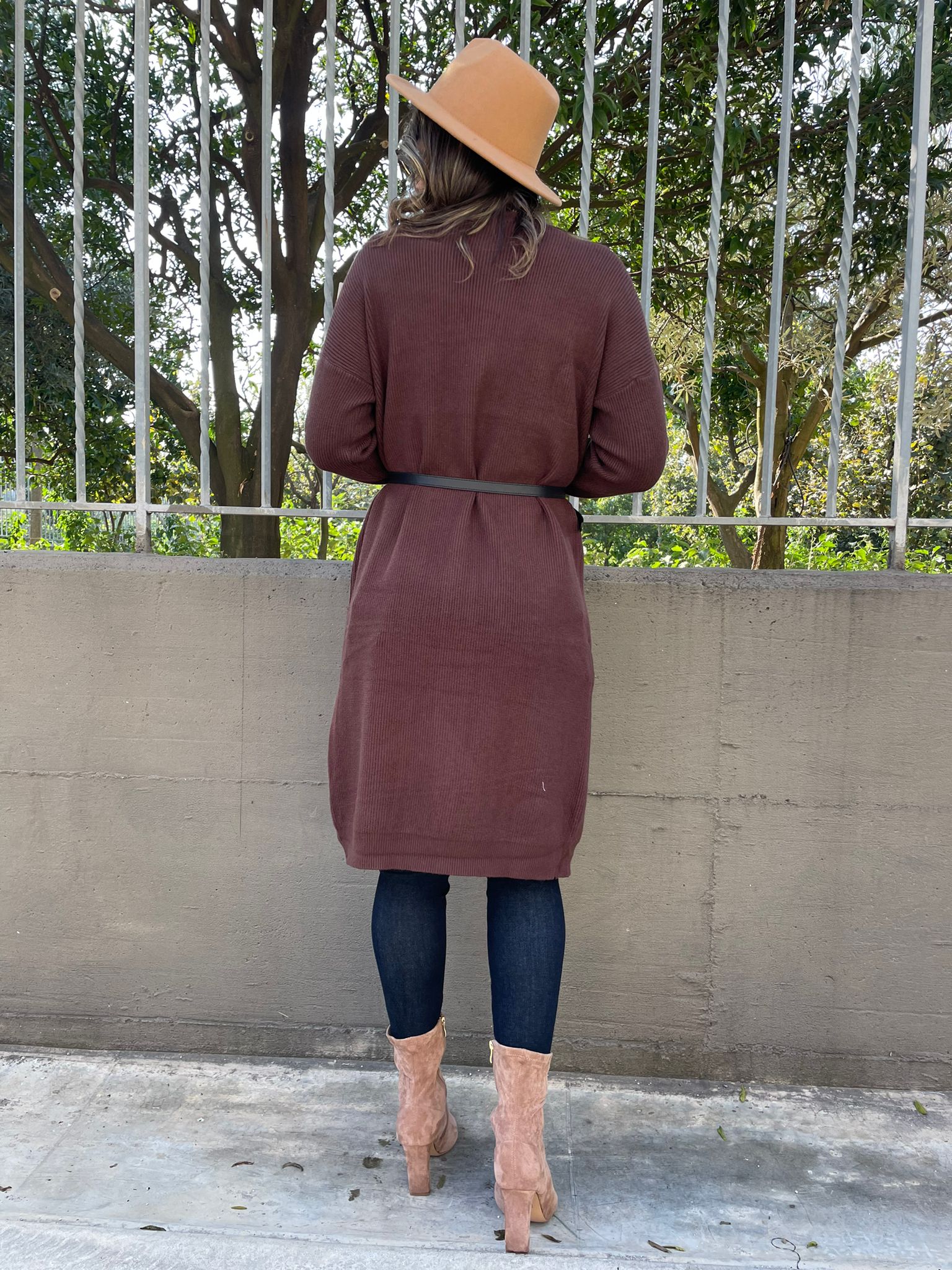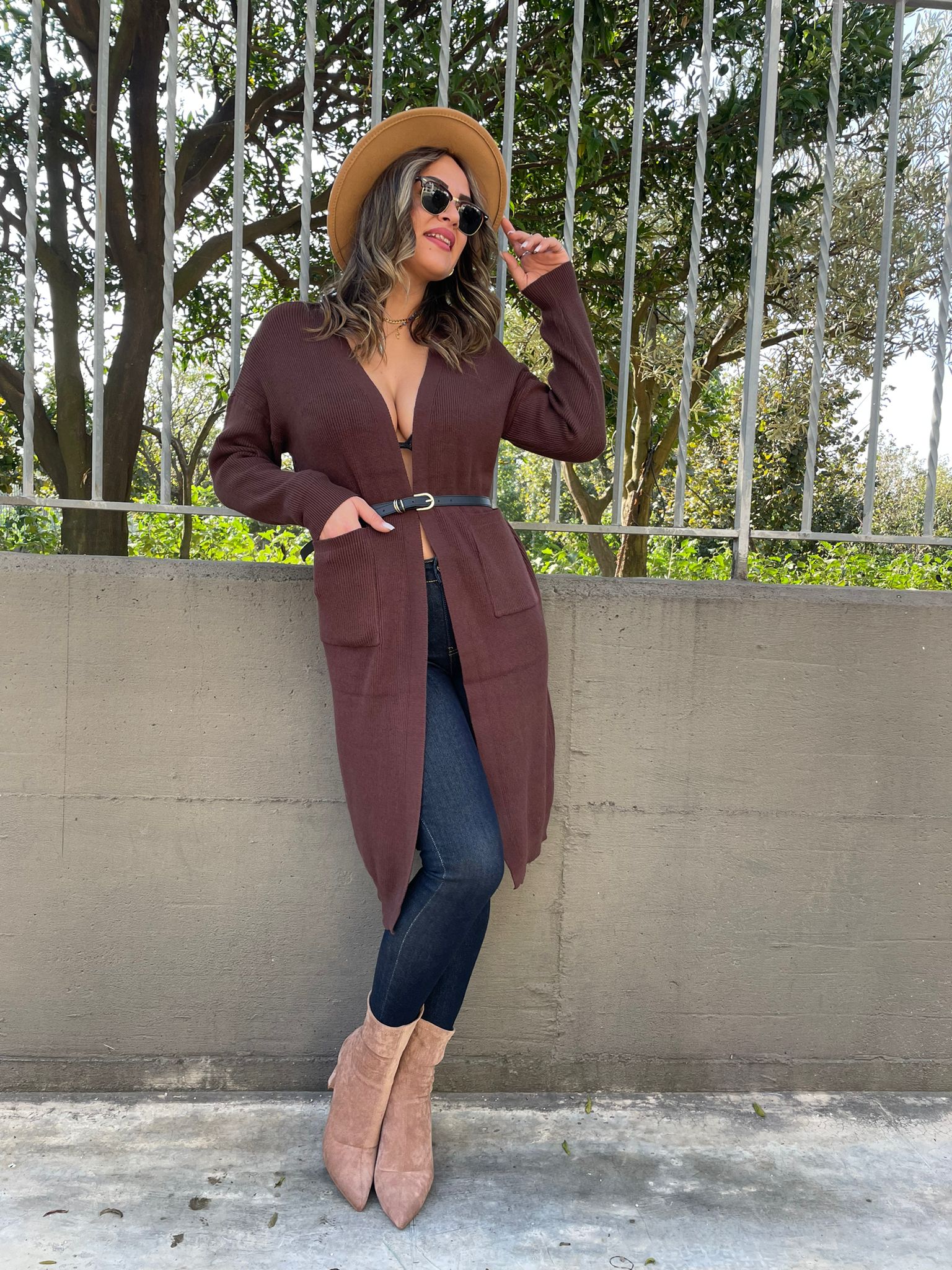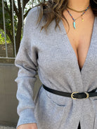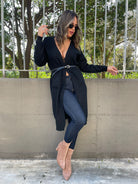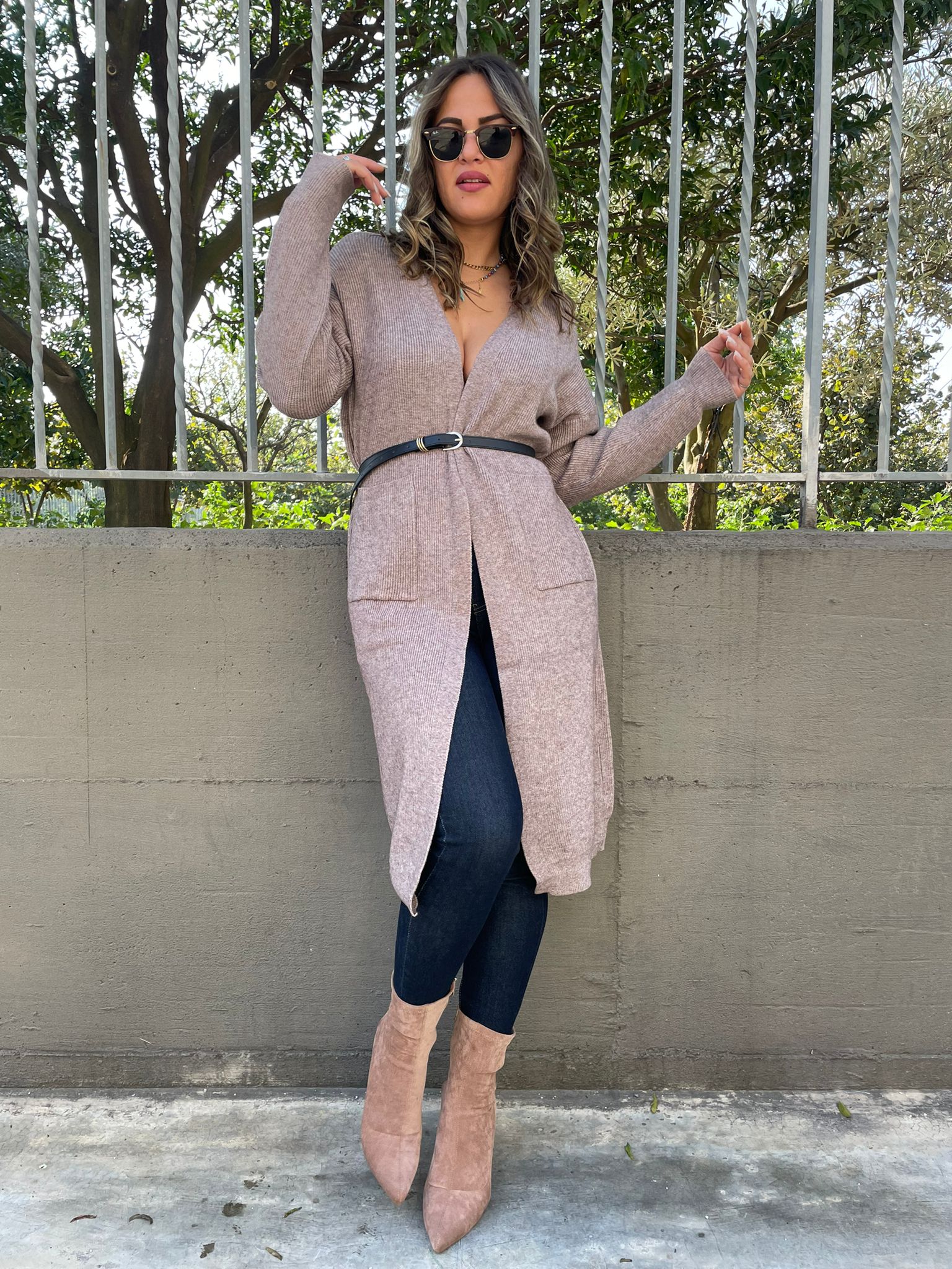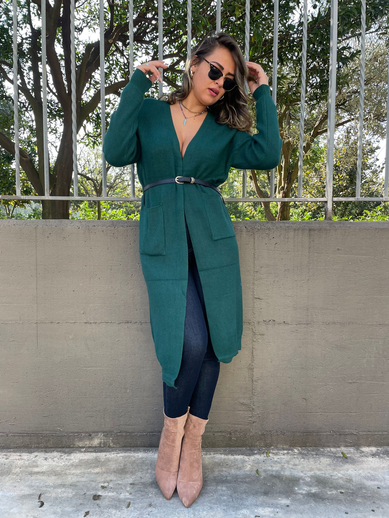 Cardigan lungo tinta unita con tasconi
