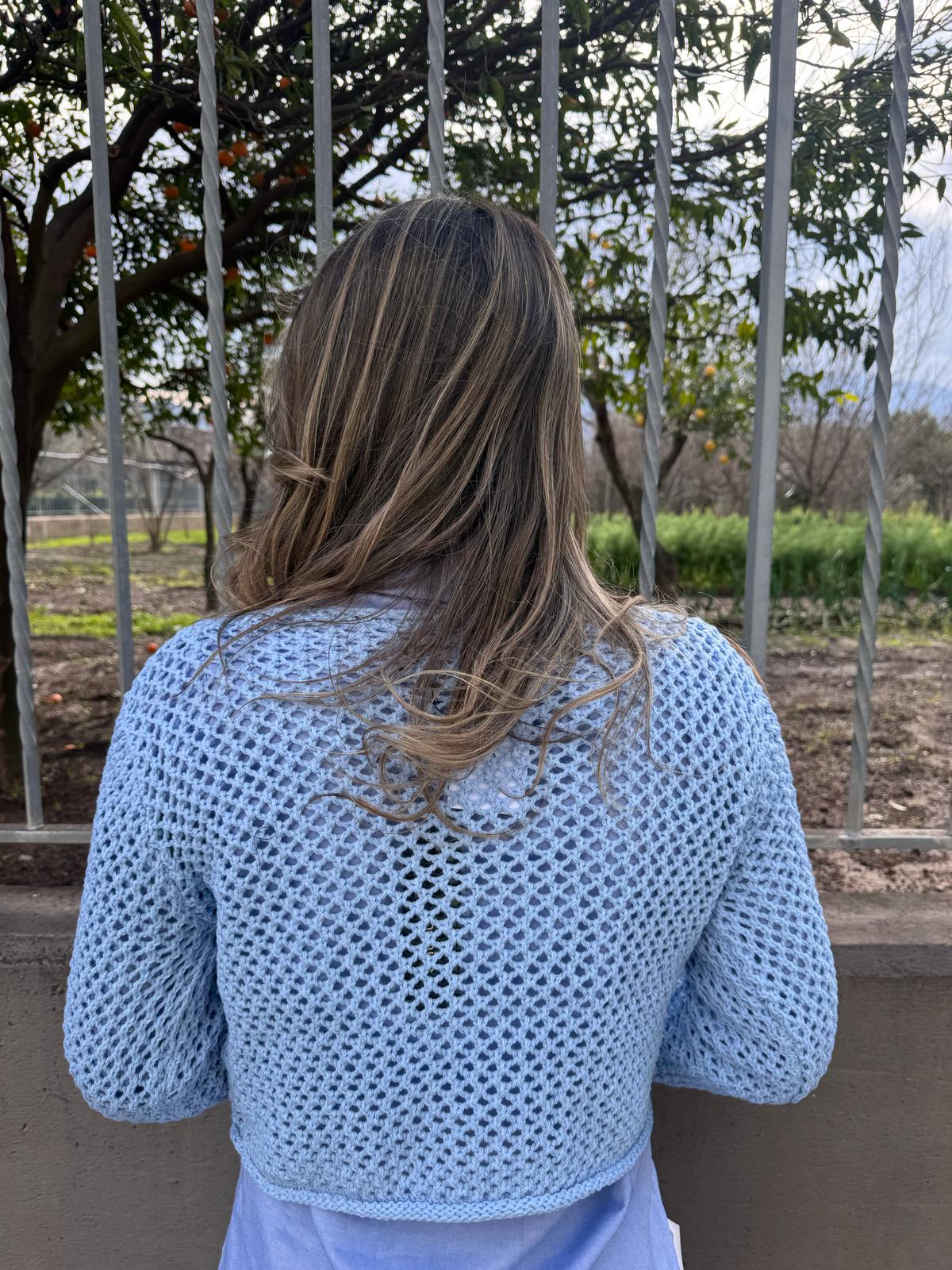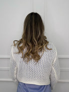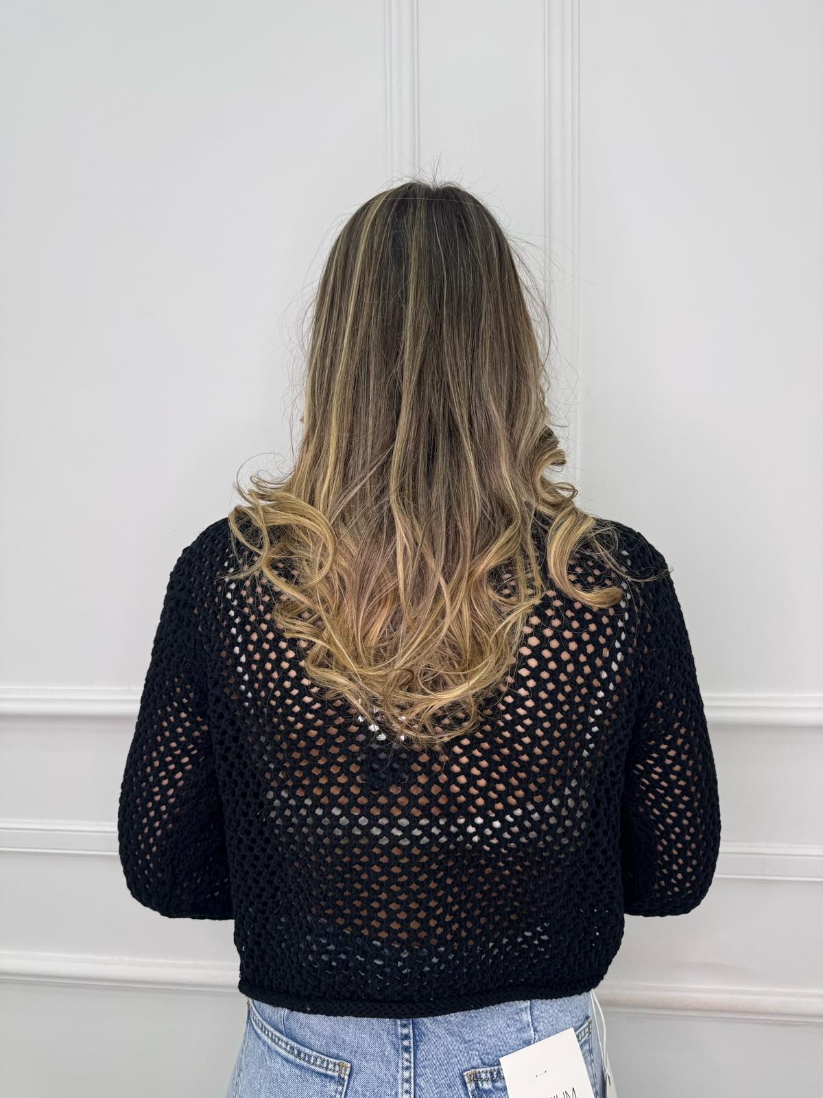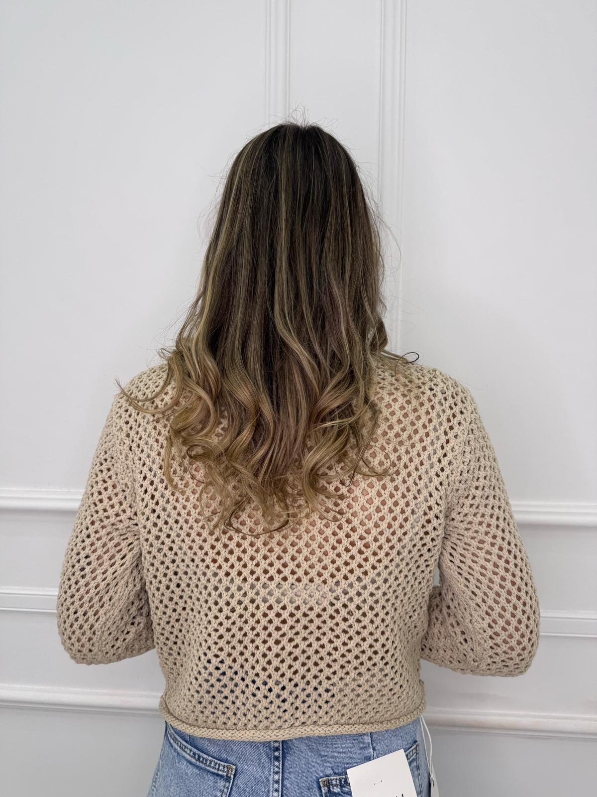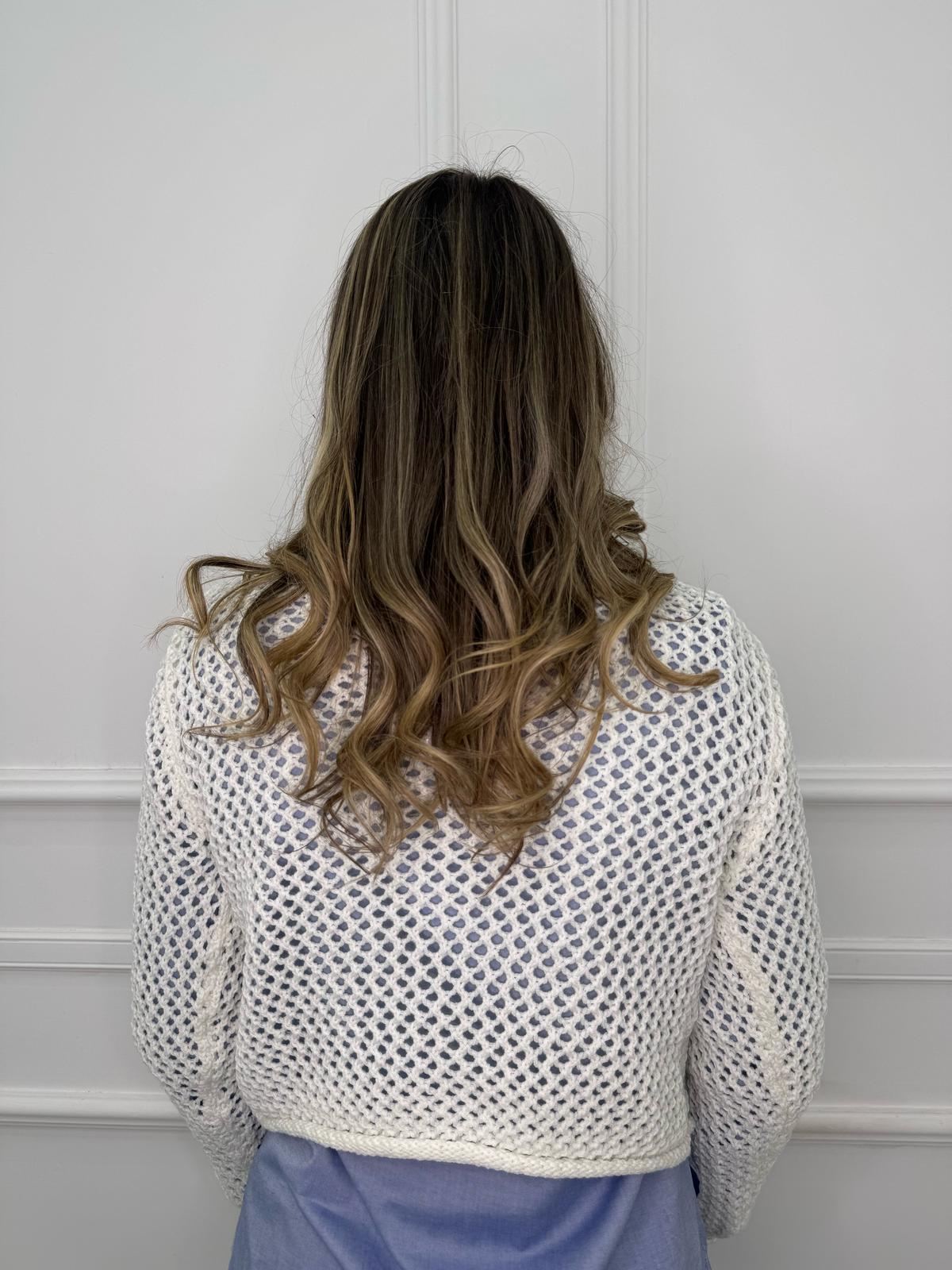 Cardigan traforato giro collo con bottoni oro