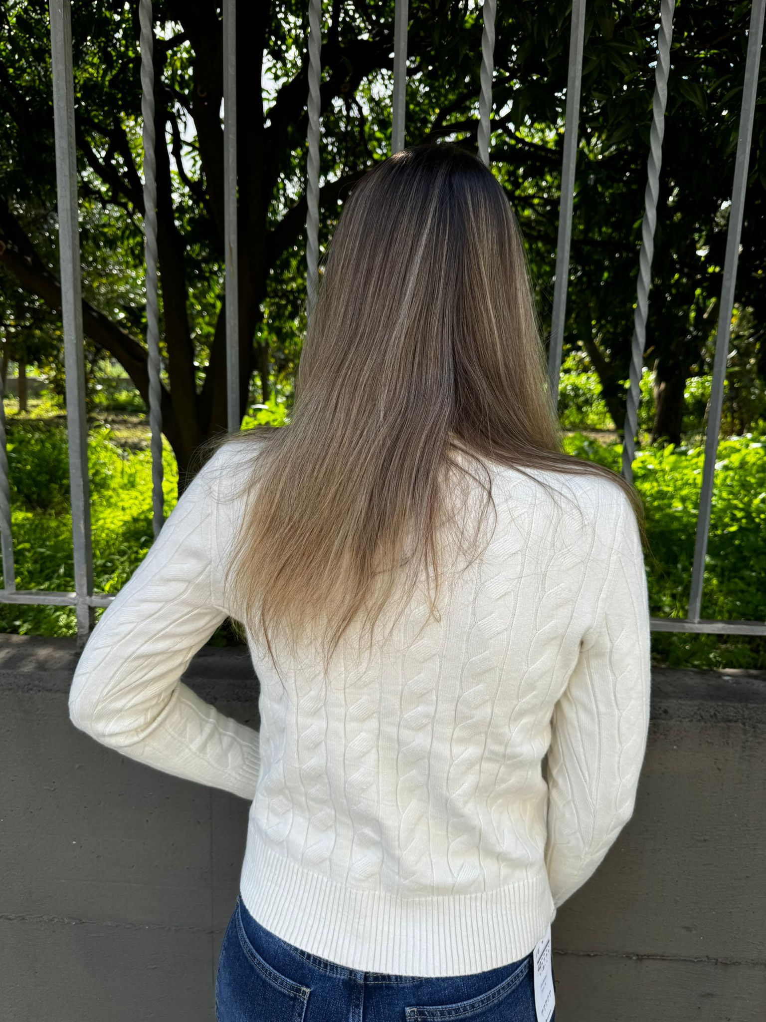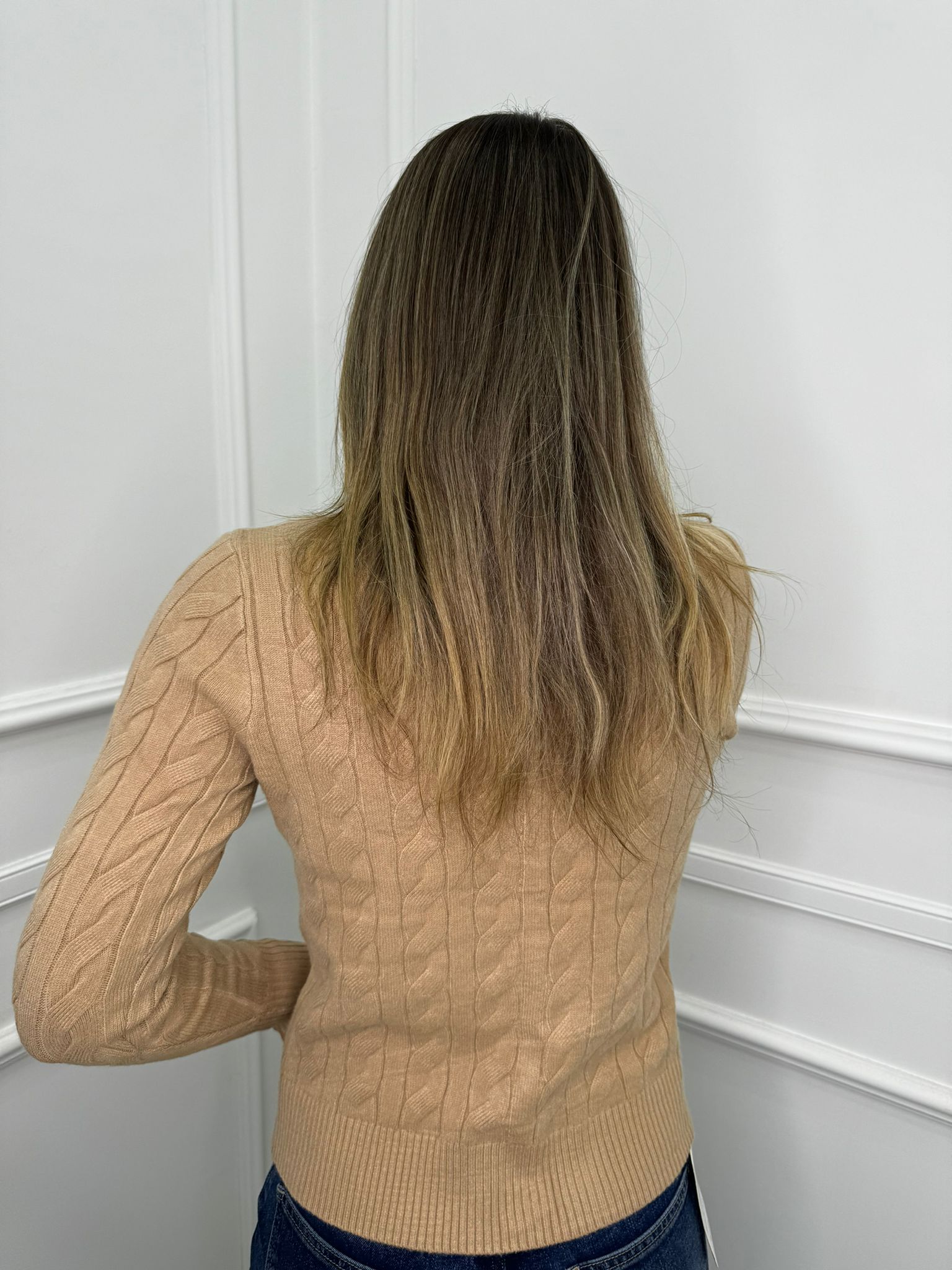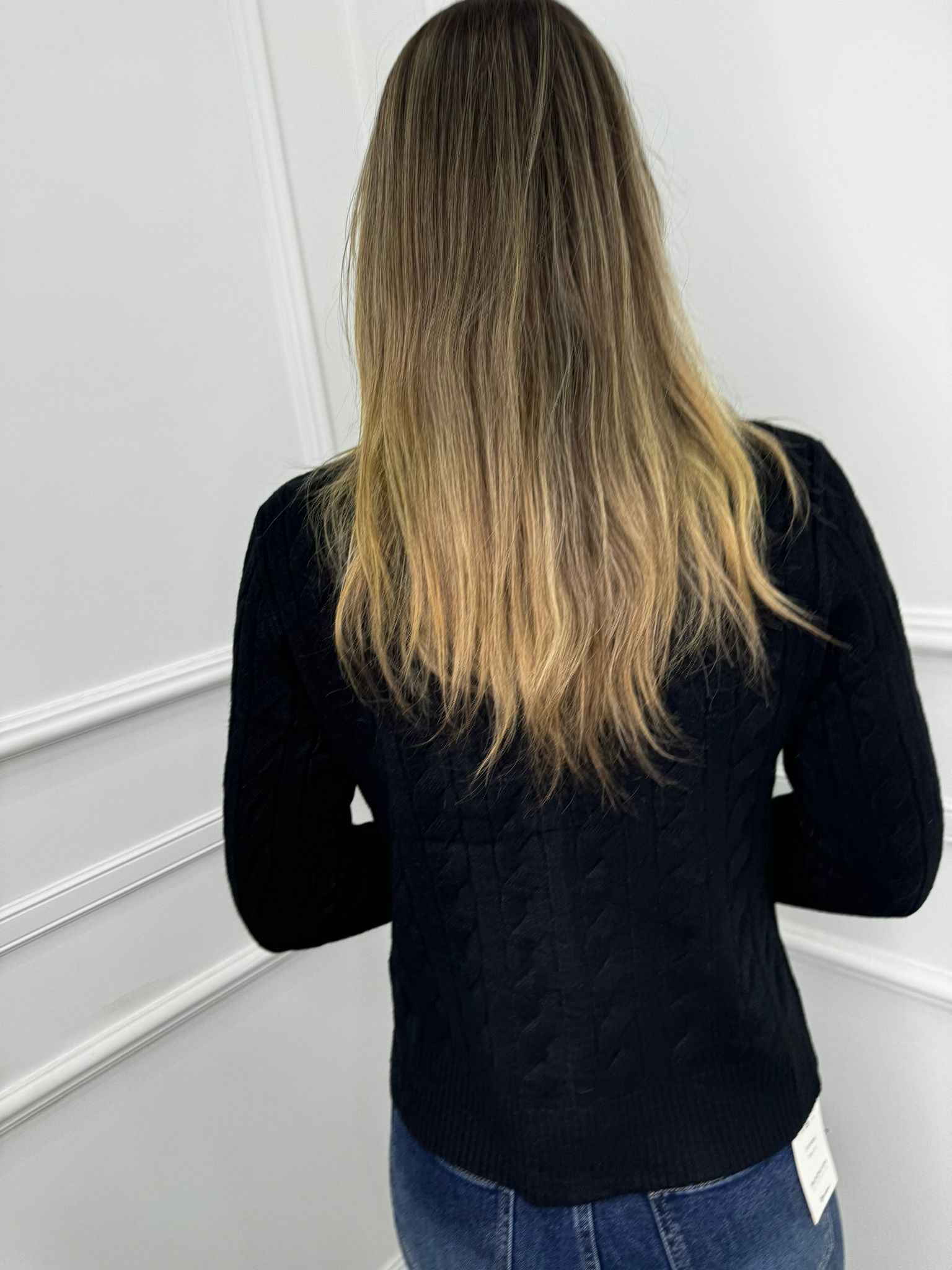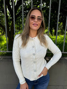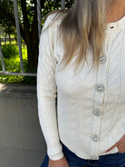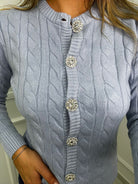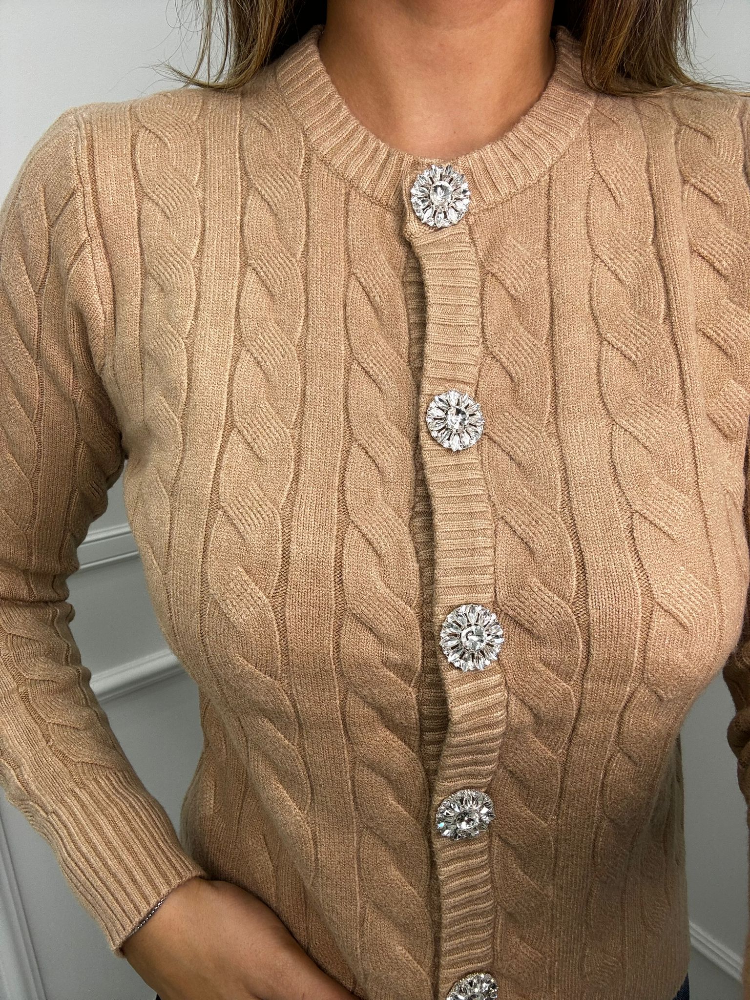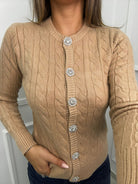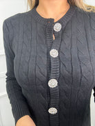 Cardigan trama treccia con bottoni gioiello