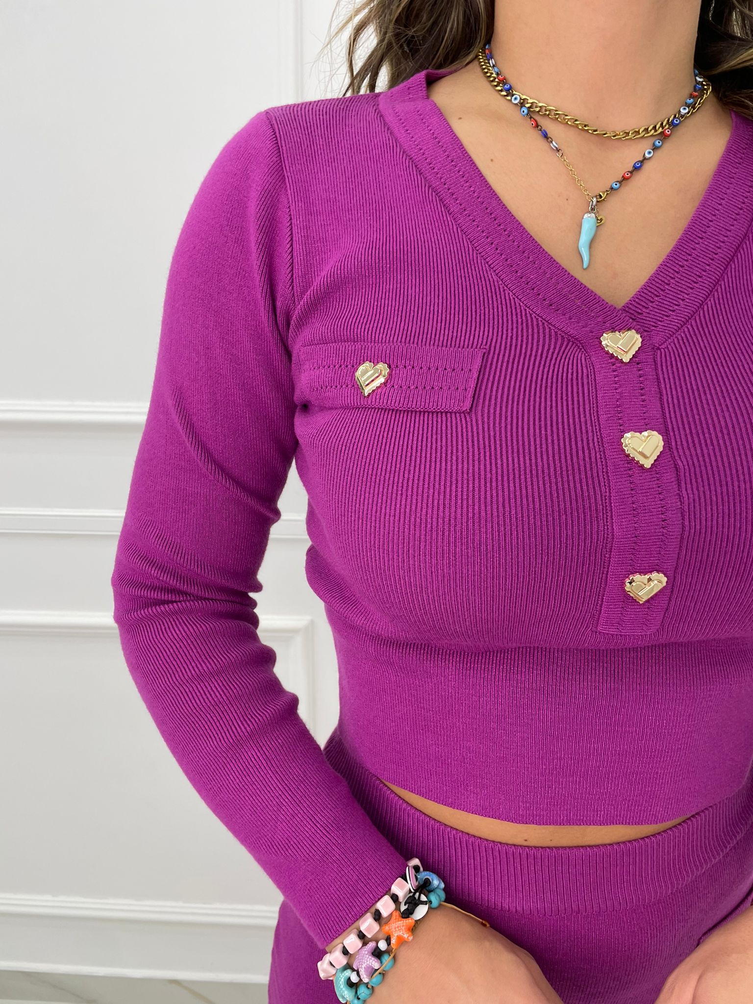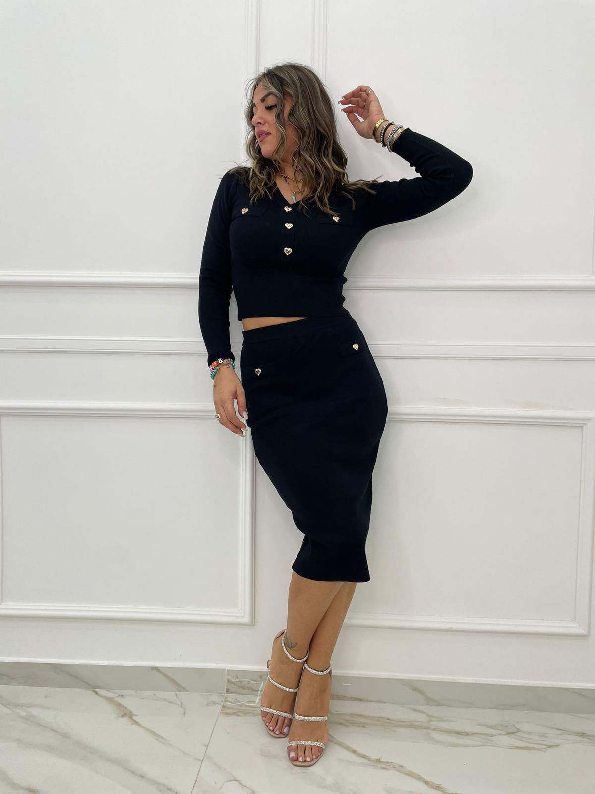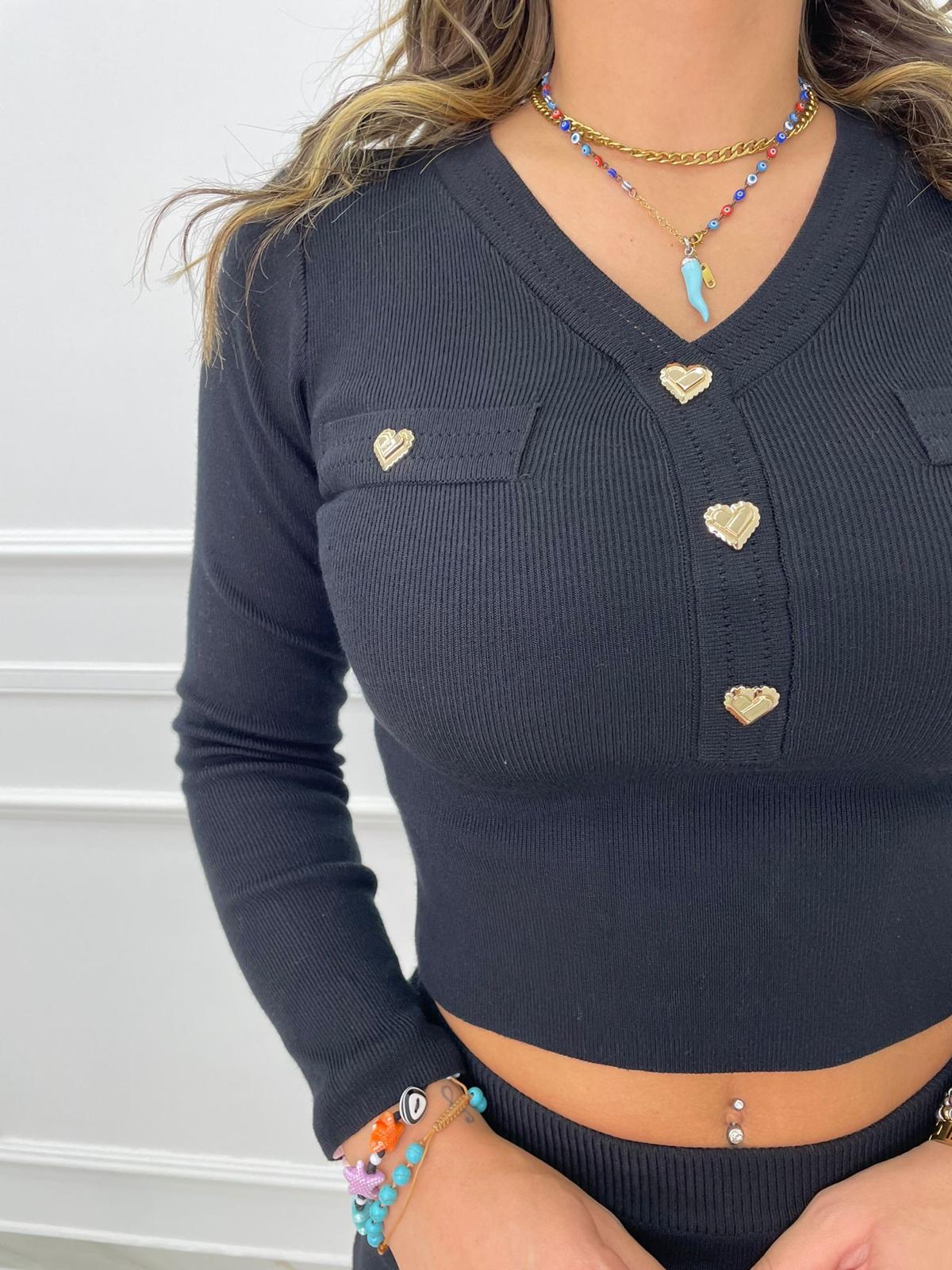 Coordinato 2 pezzi con longuette e bottoni a cuore