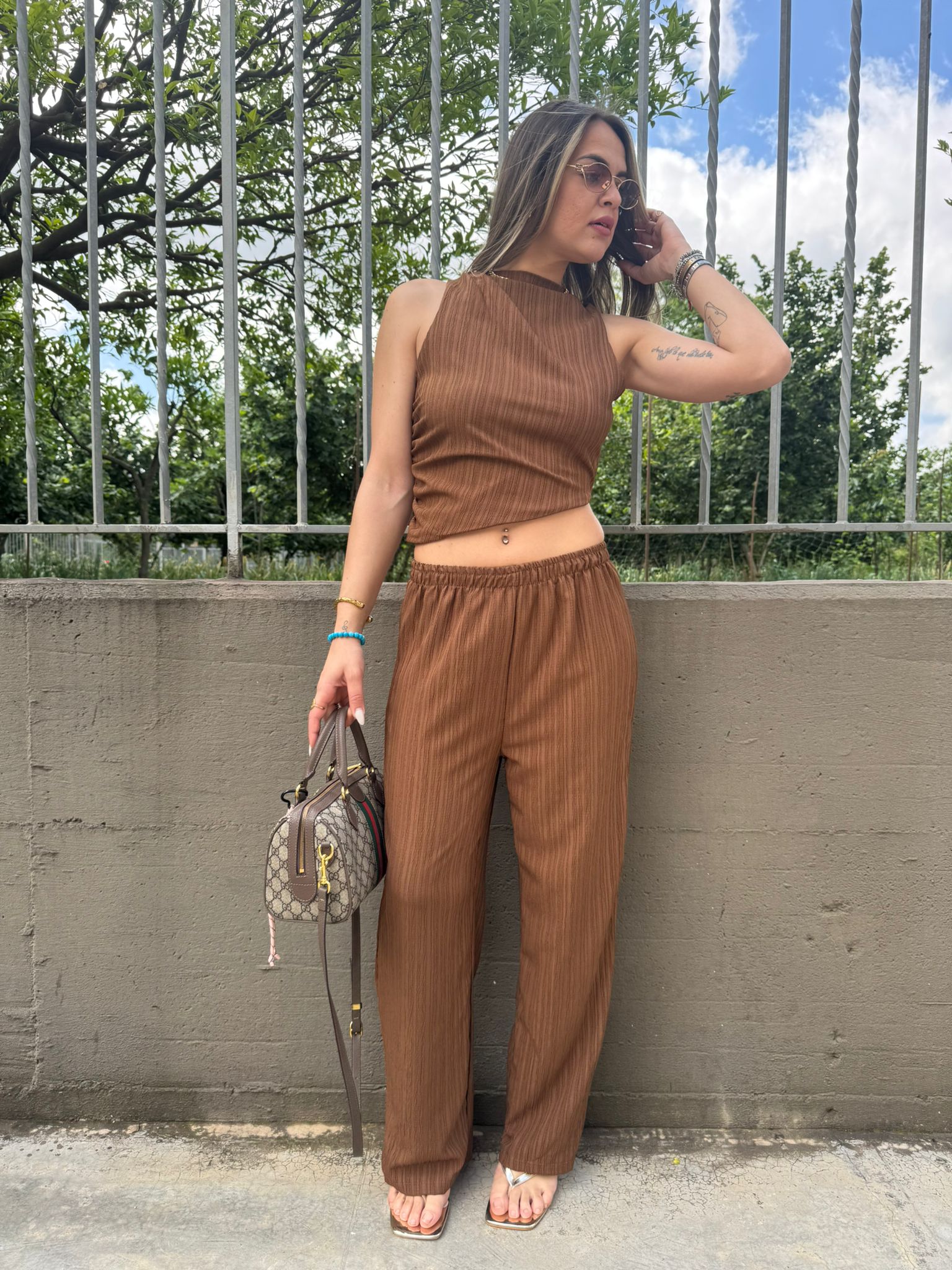 Coordinato 2 pezzi con pantalone e top con schiena scoperta