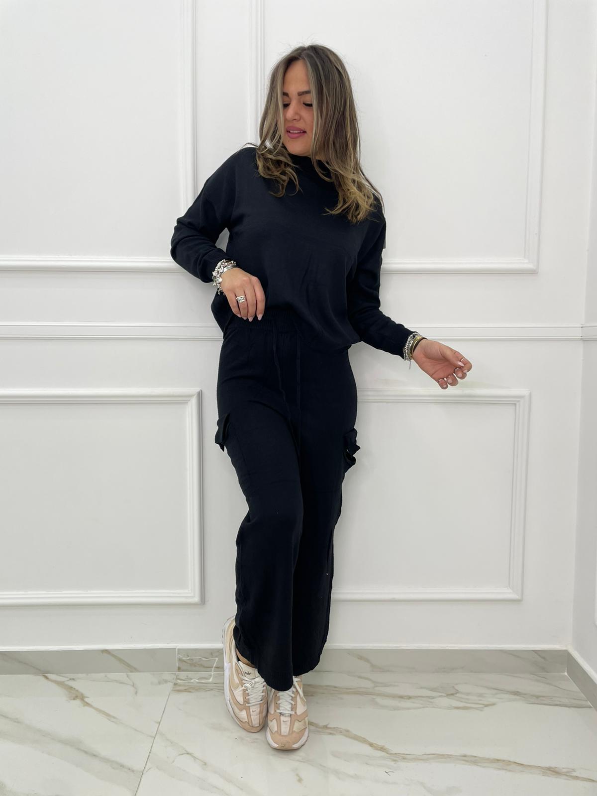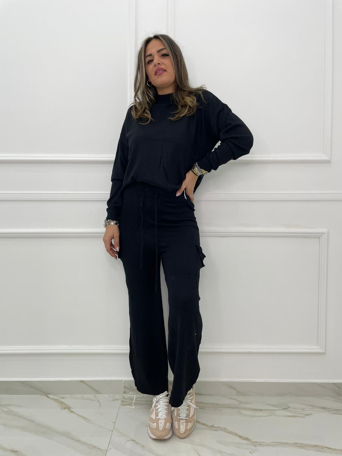 Coordinato 2 pezzi con pantalone palazzo con tasconi