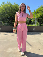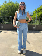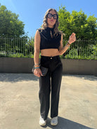 Coordinato 2 pezzi con top crop e pantalone palazzo