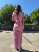 - Top crop con fiocco dietro e bottoncini dietro al collo
