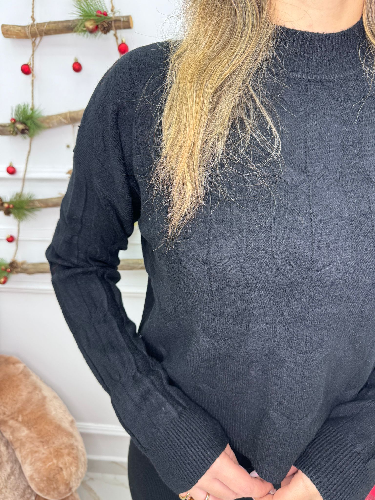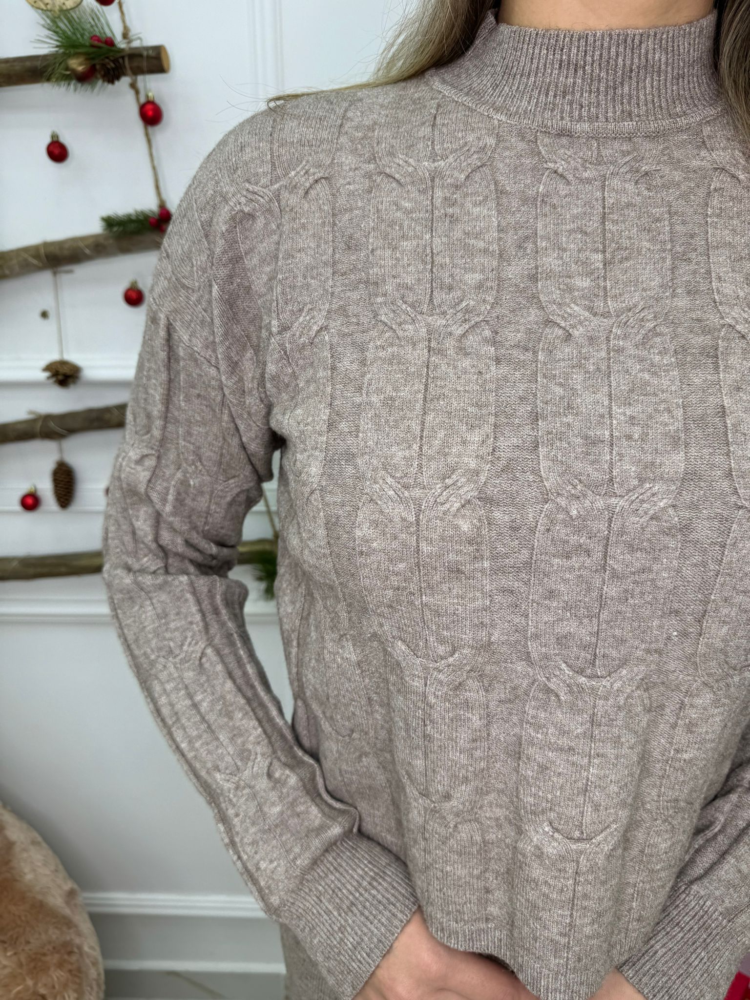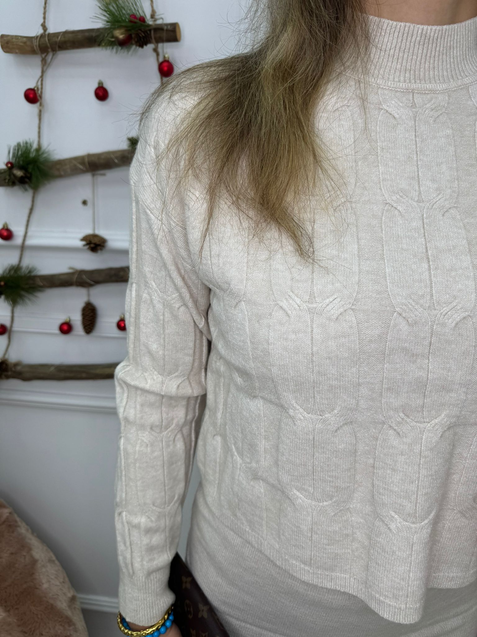 Coordinato 2 pezzi con vestito e maglioncino trama treccia