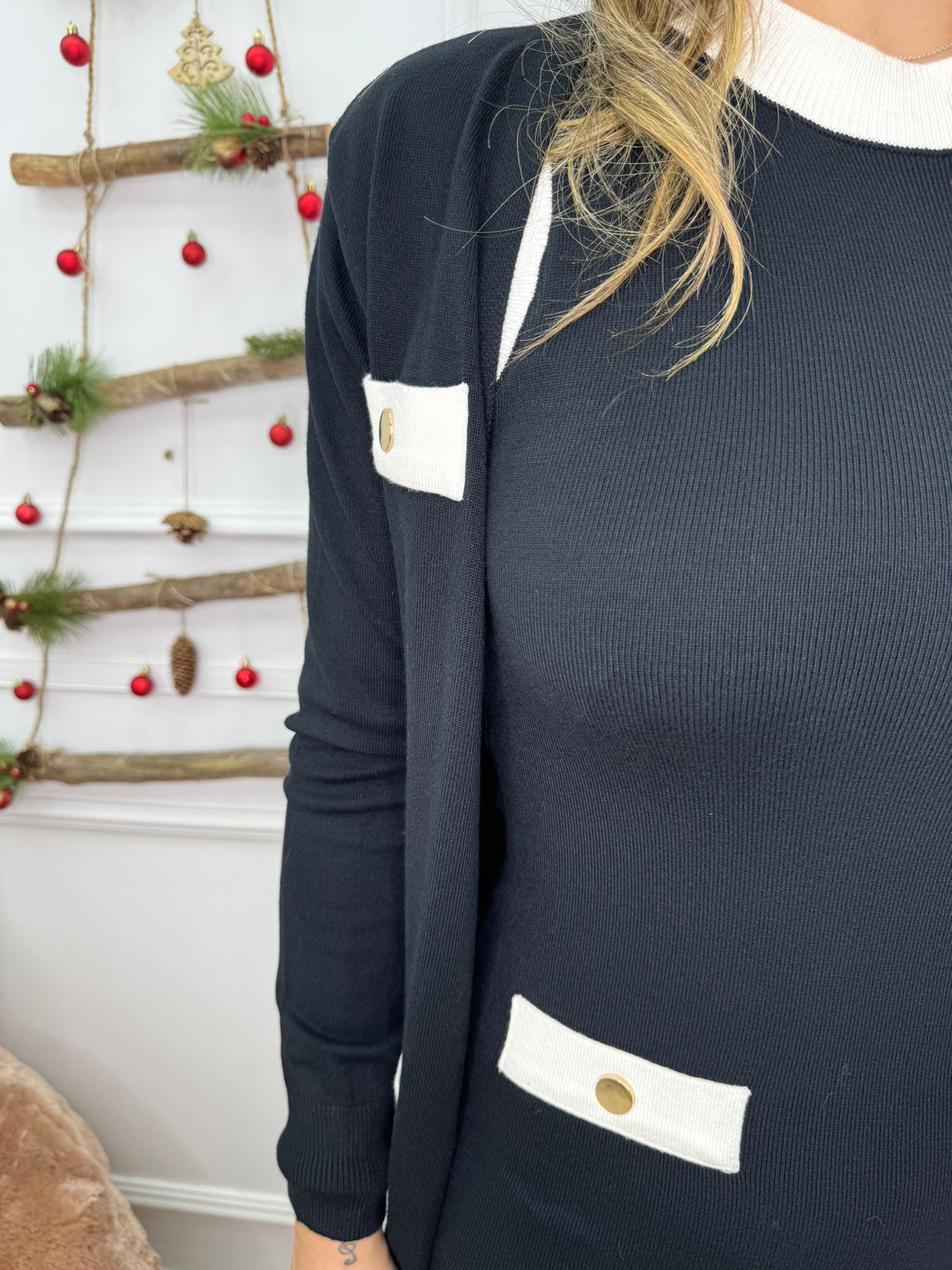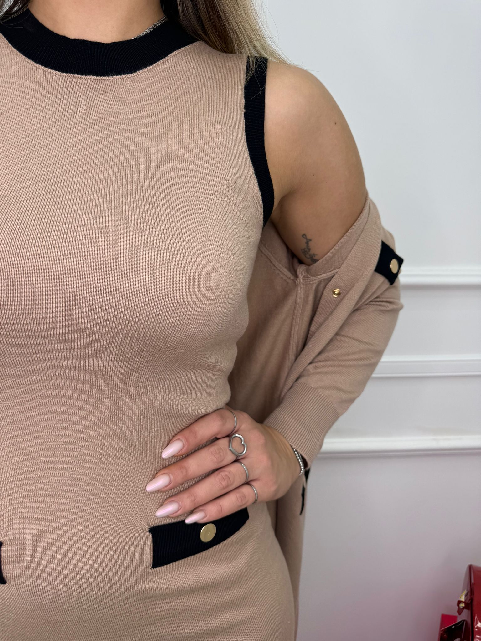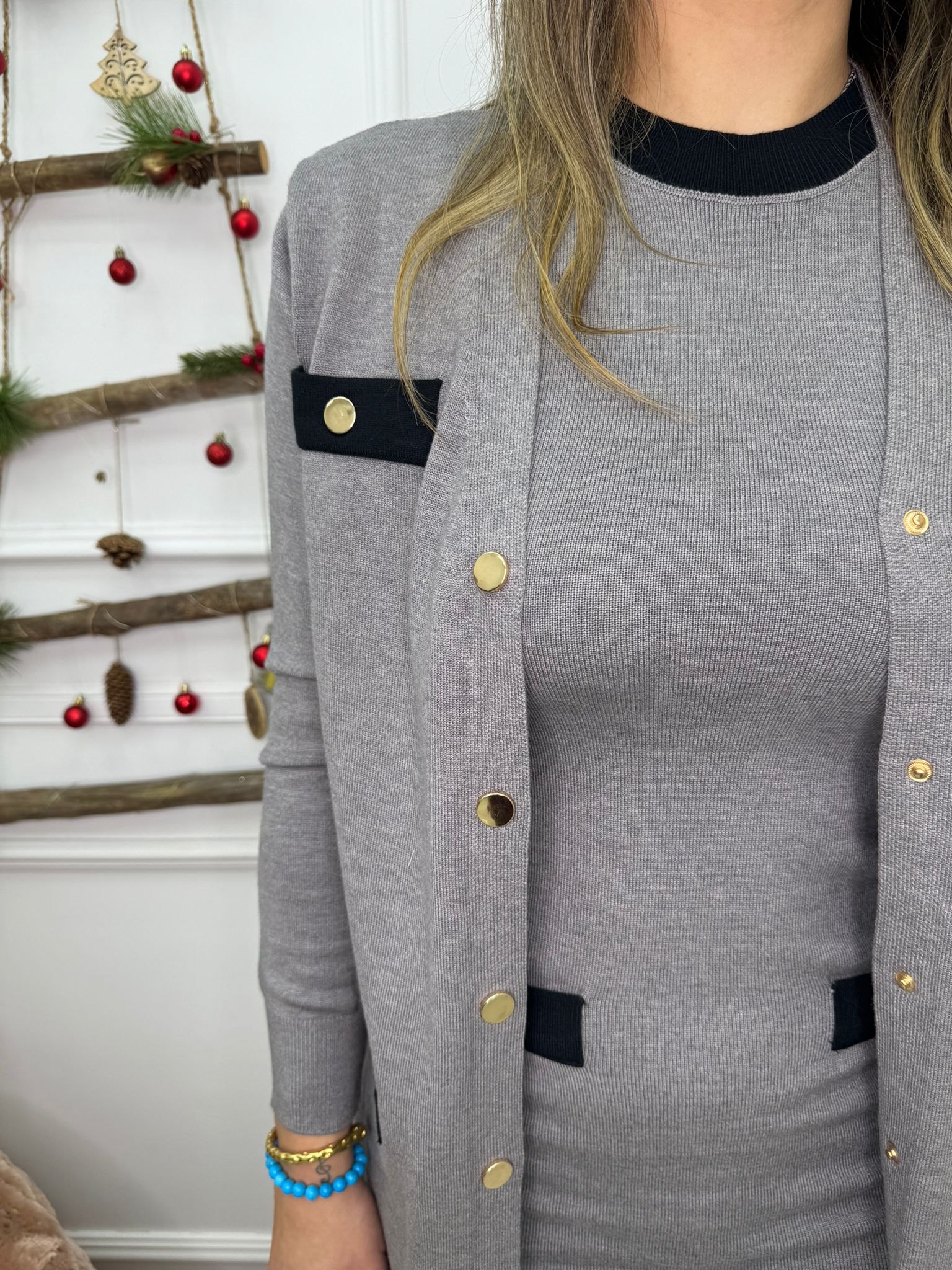 Coordinato 2 pezzi con vestito giro manica e cardigan lungo