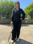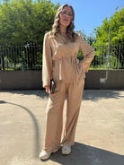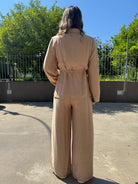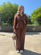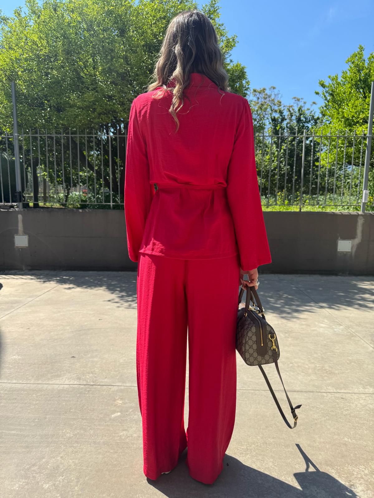Coordinato 2 pezzi effetto lino con pantalone e giacca con laccetti