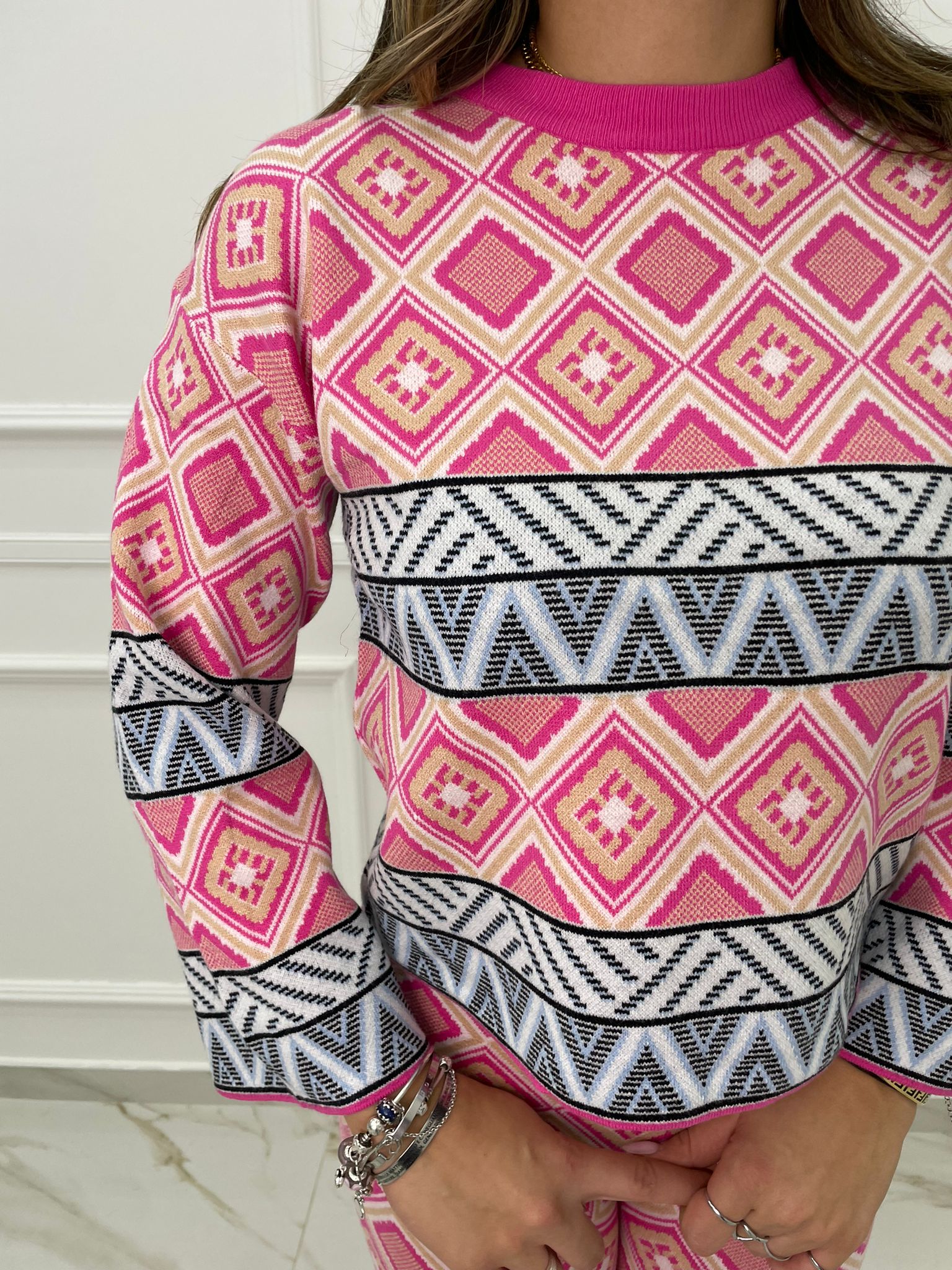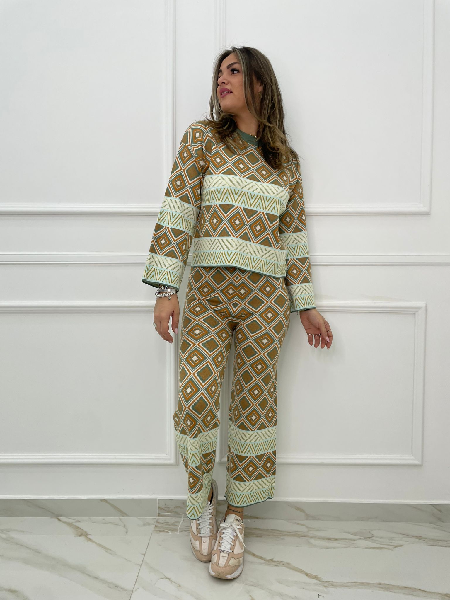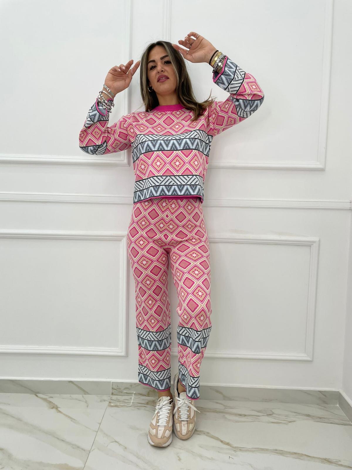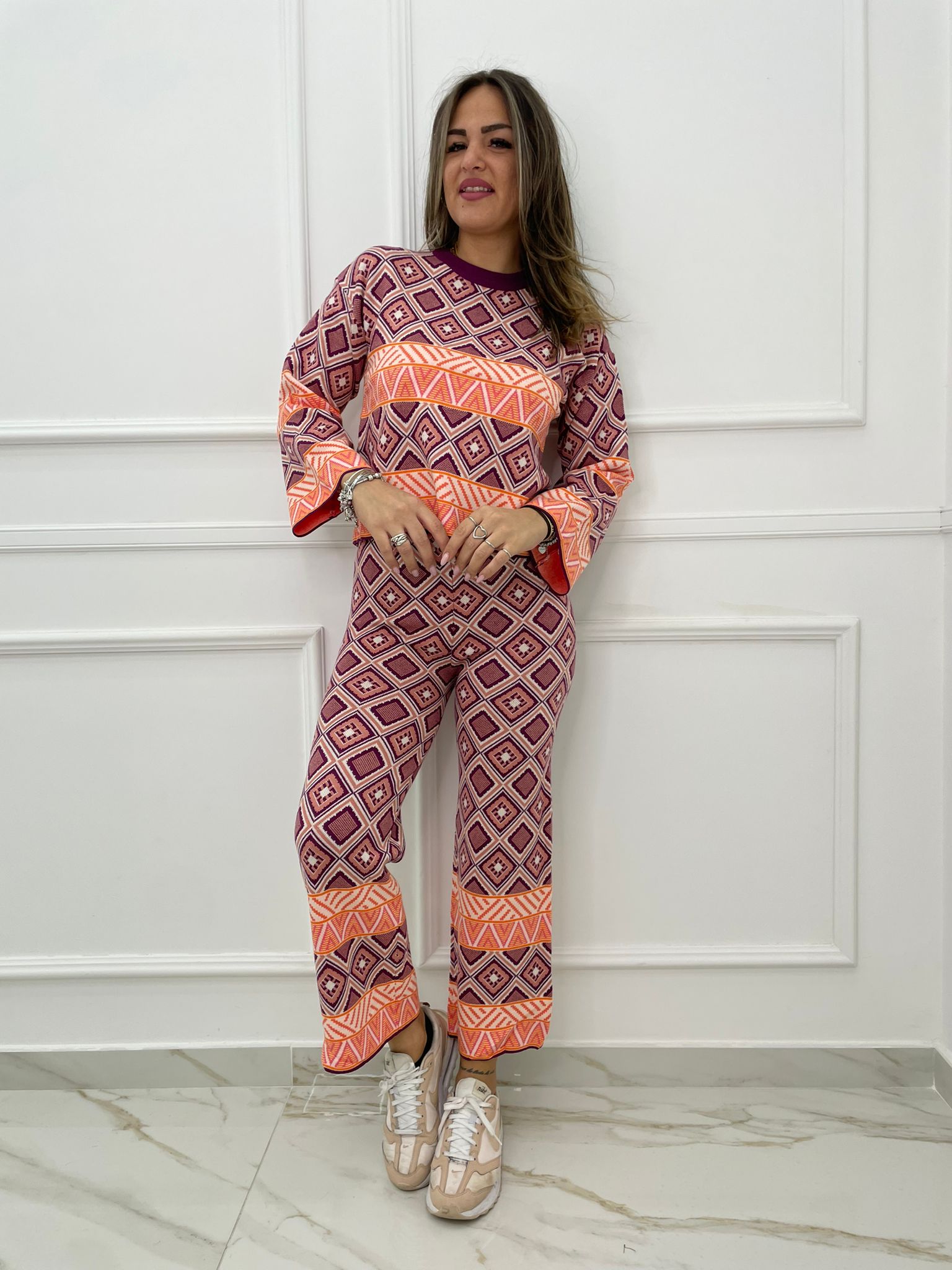 Coordinato 2 pezzi fantasia colorata con maglia giro collo