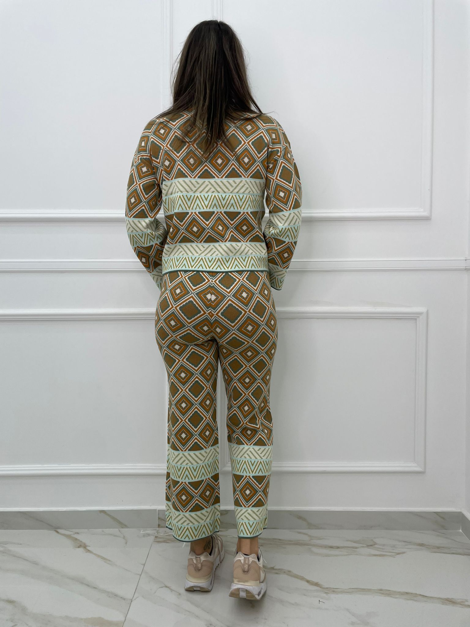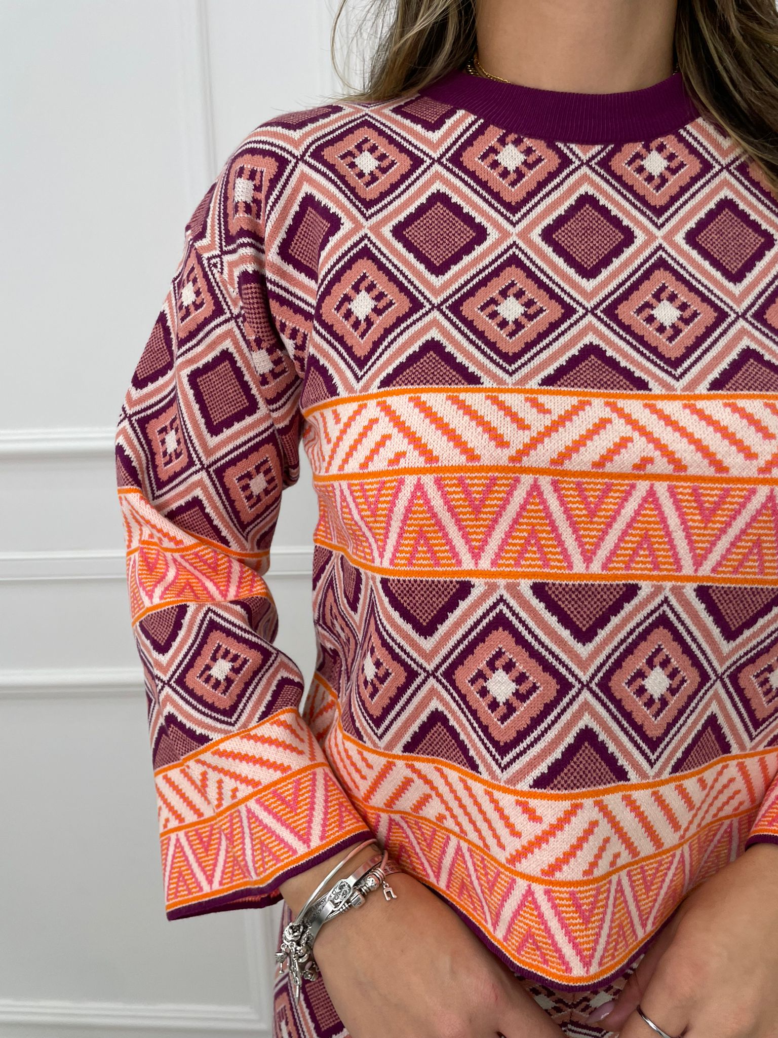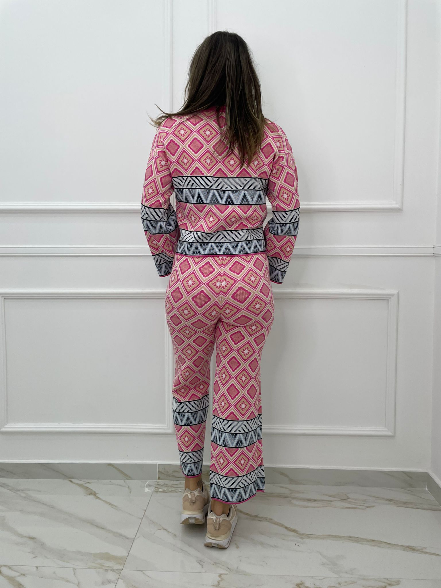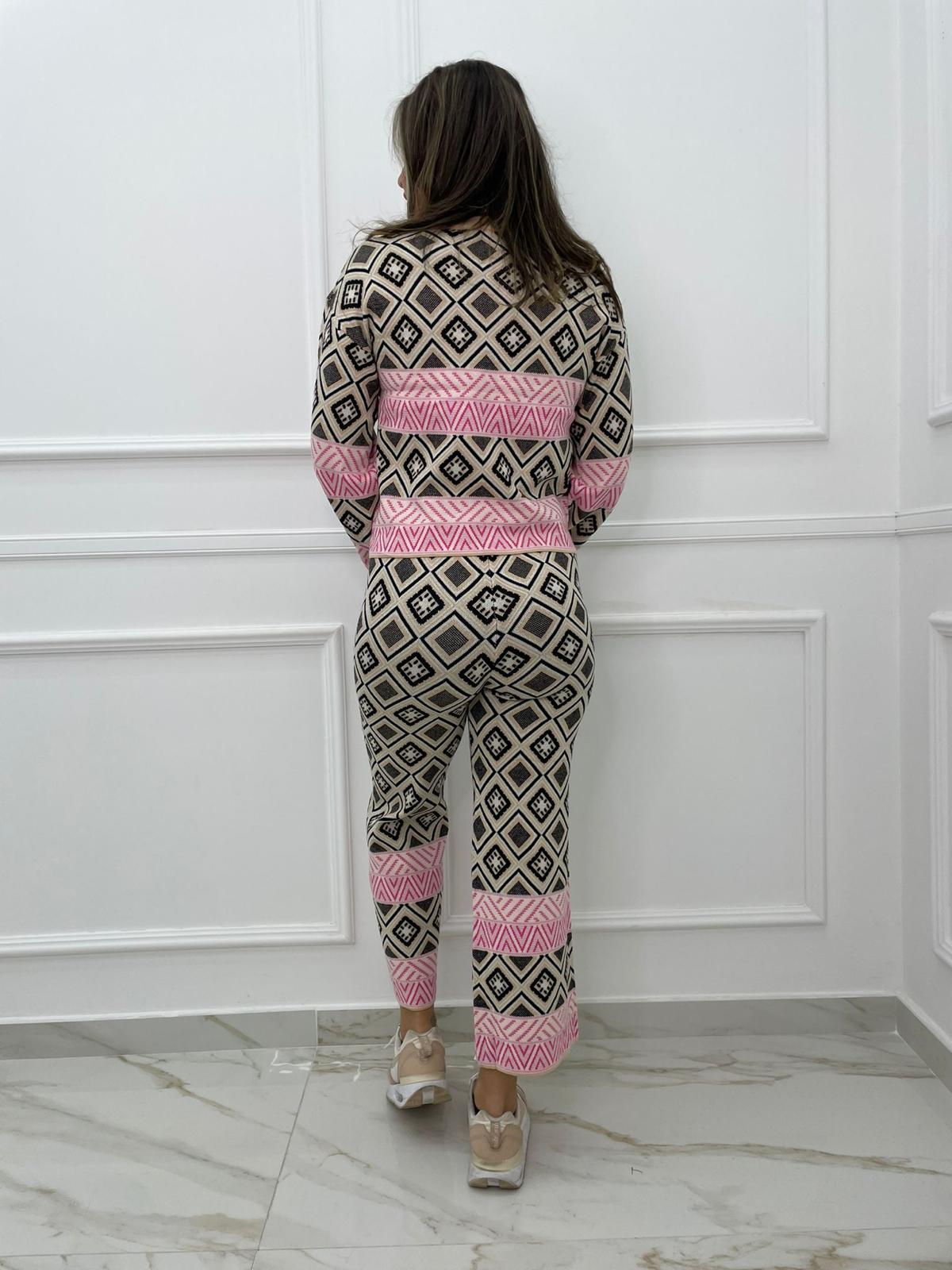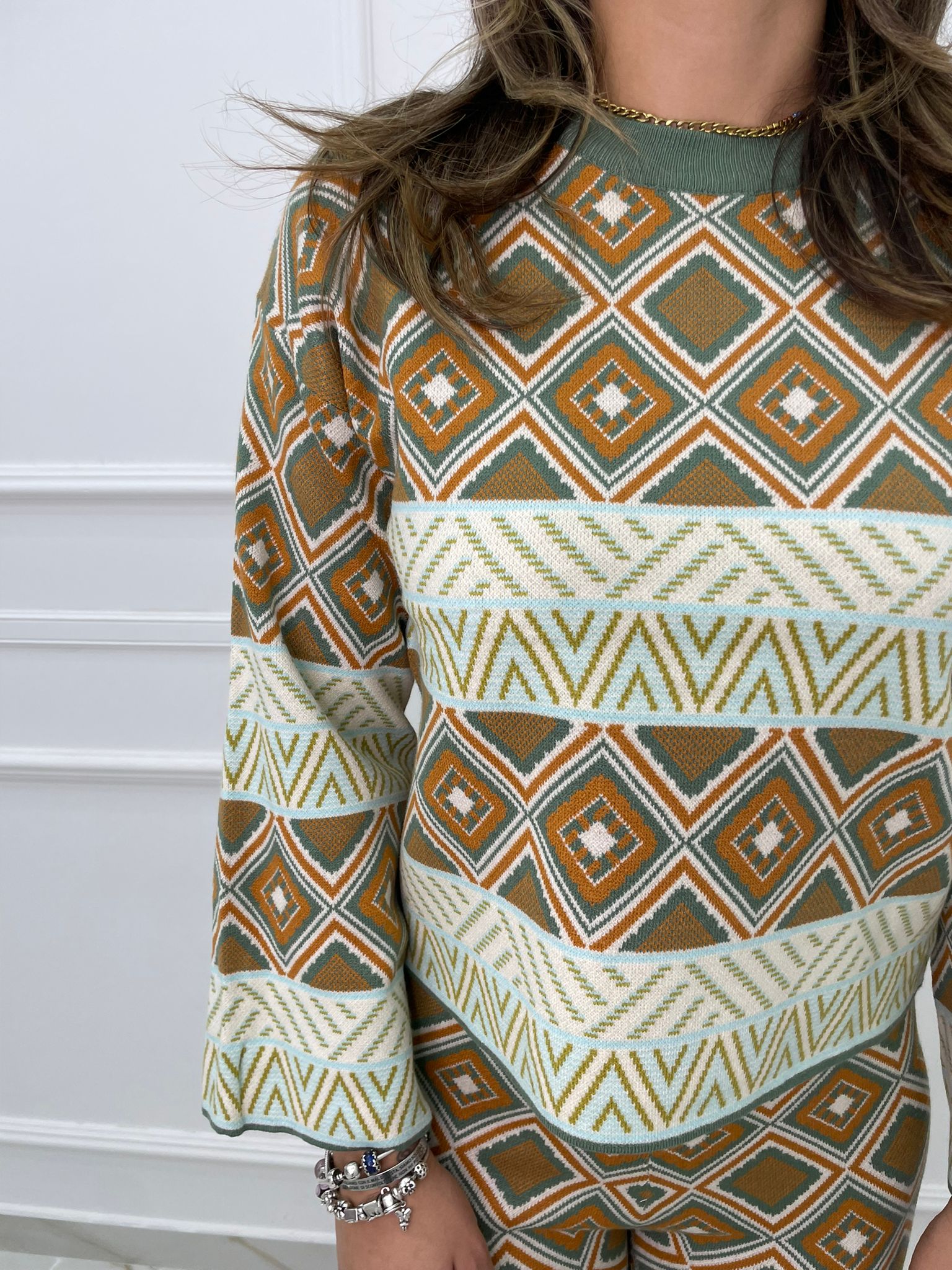 Coordinato 2 pezzi fantasia colorata con maglia giro collo