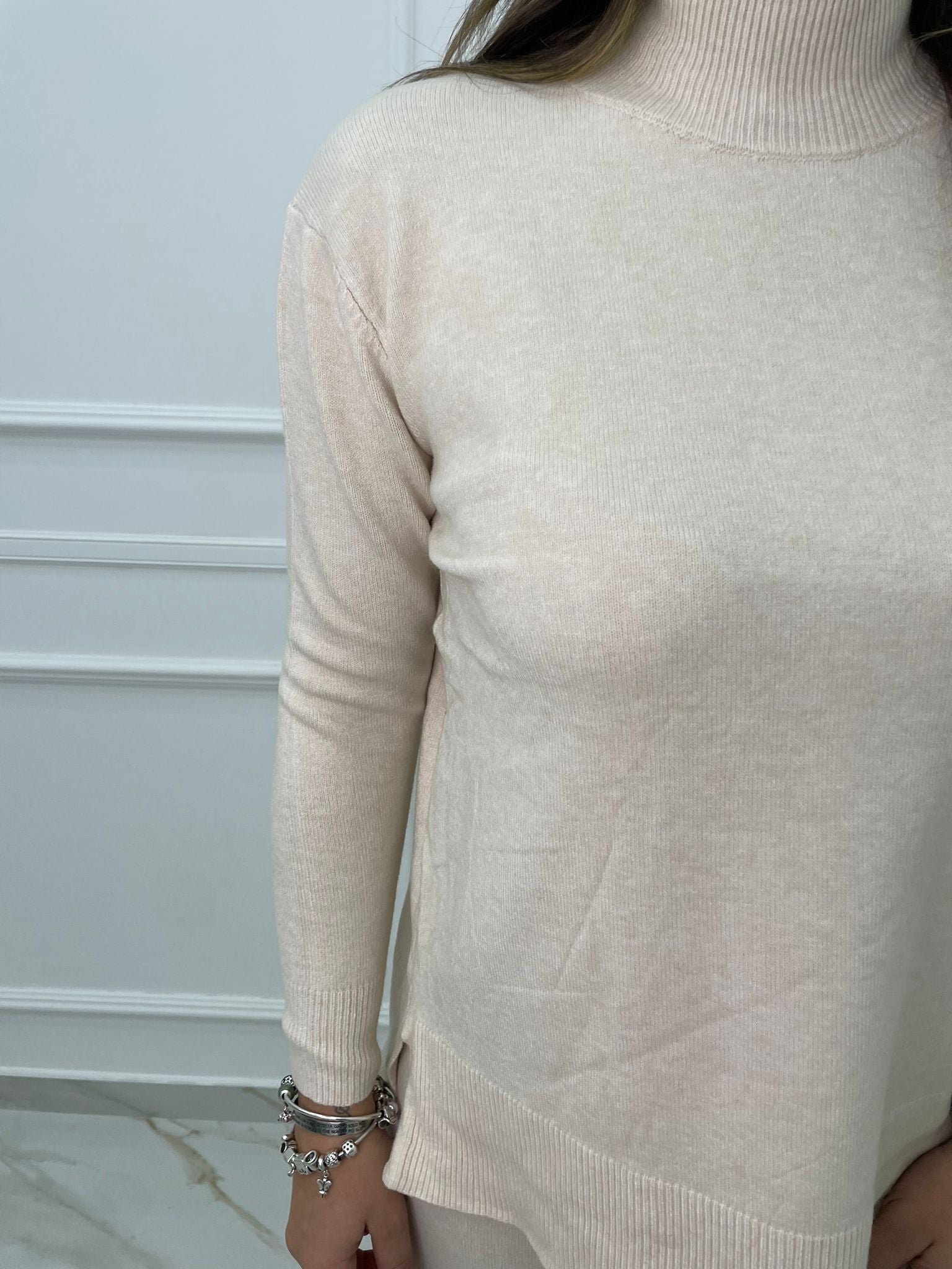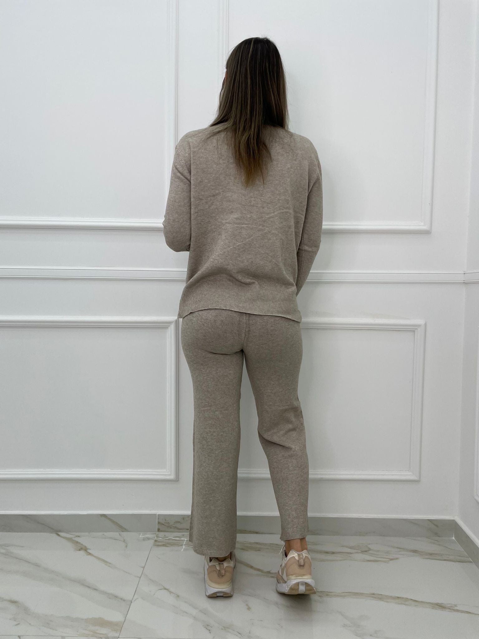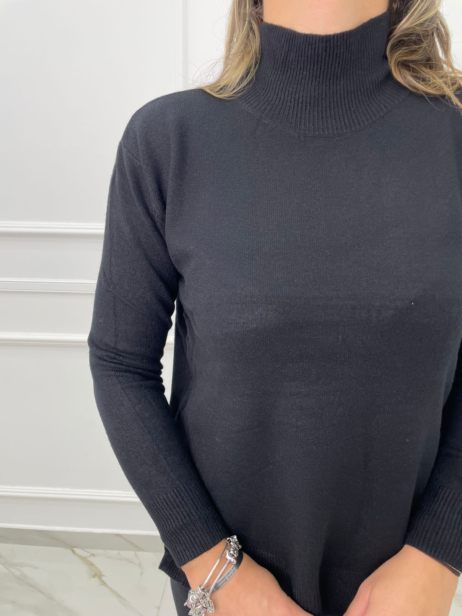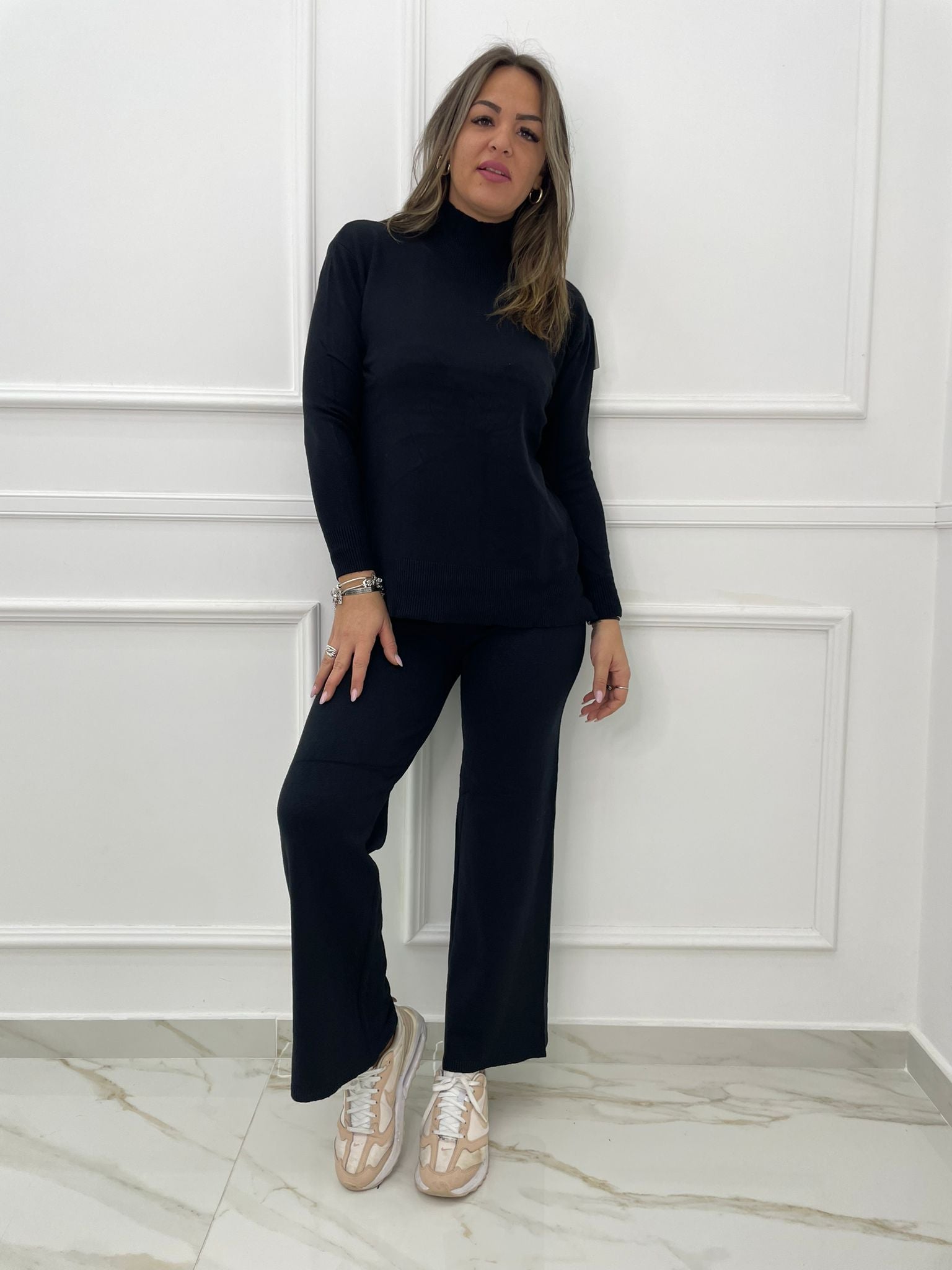Coordinato 2 pezzi tinta unita con maglione mezzo collo