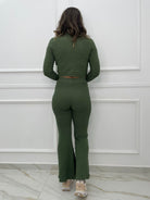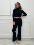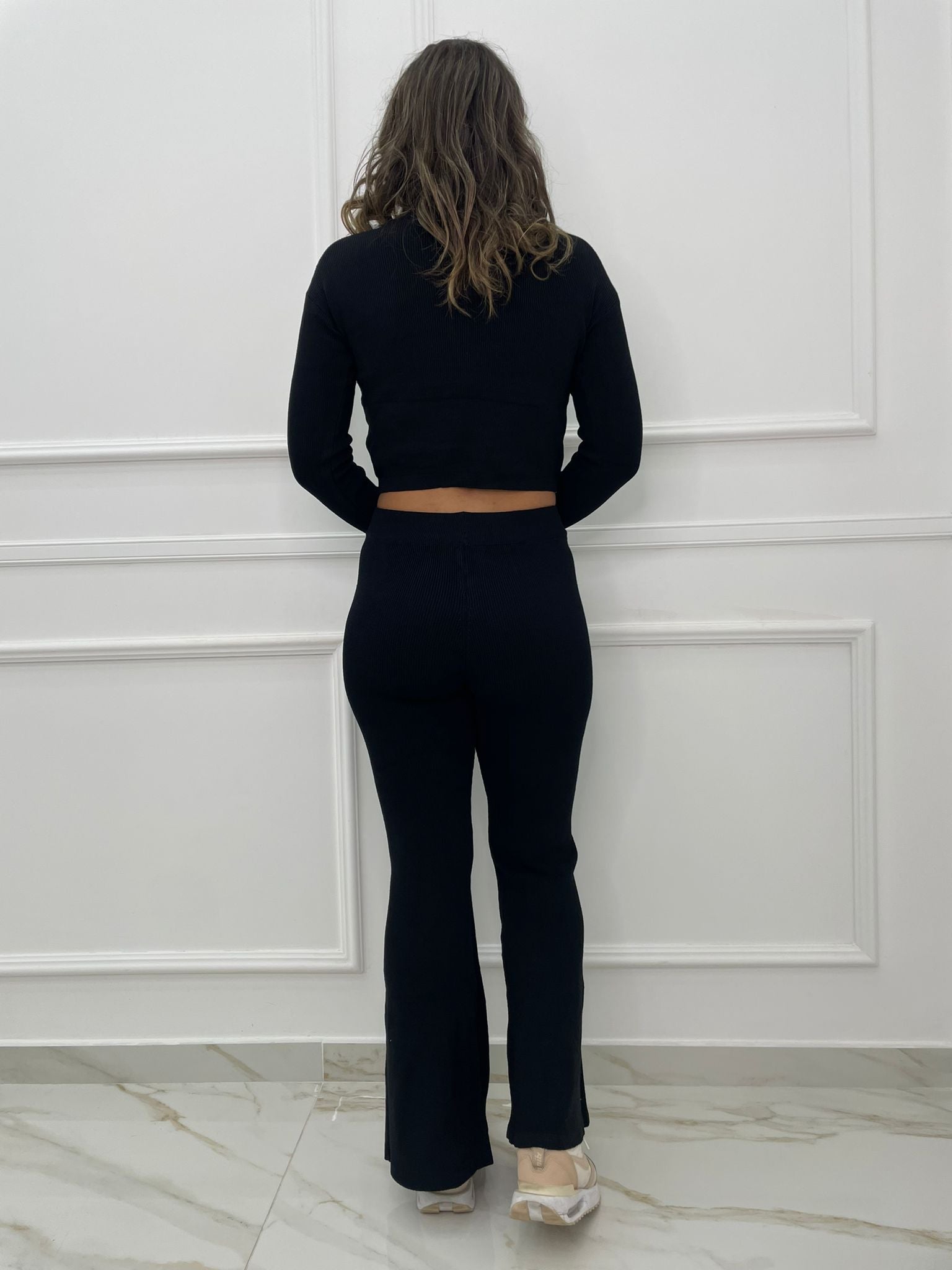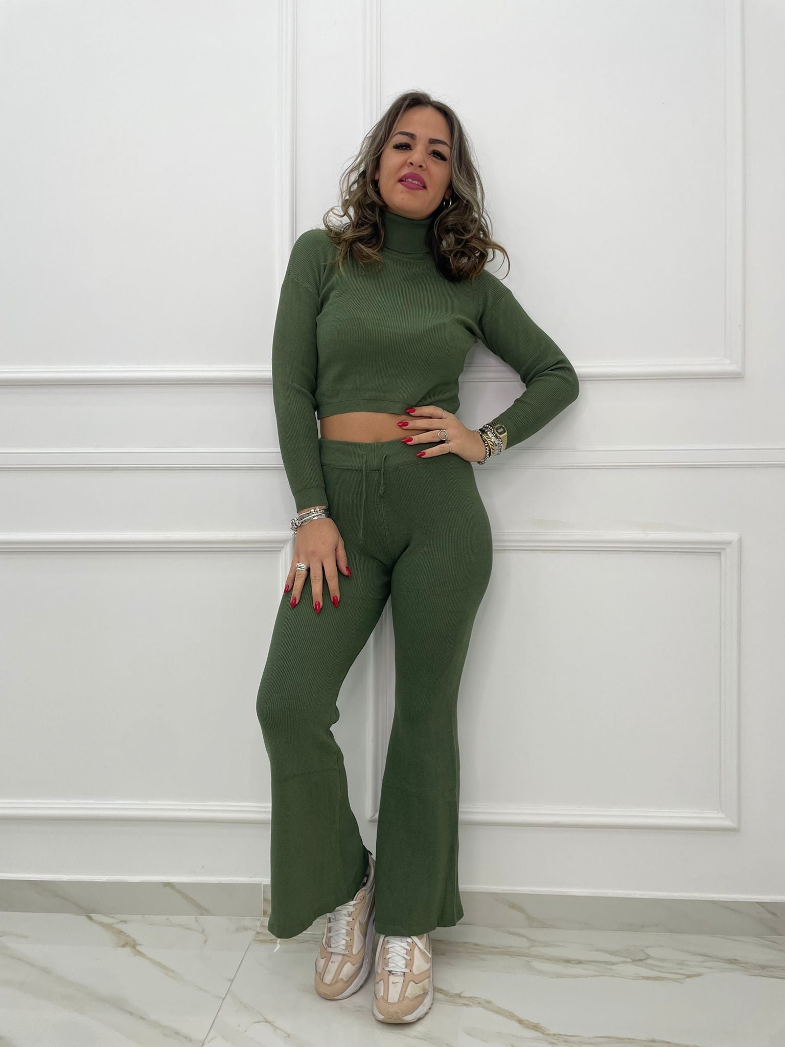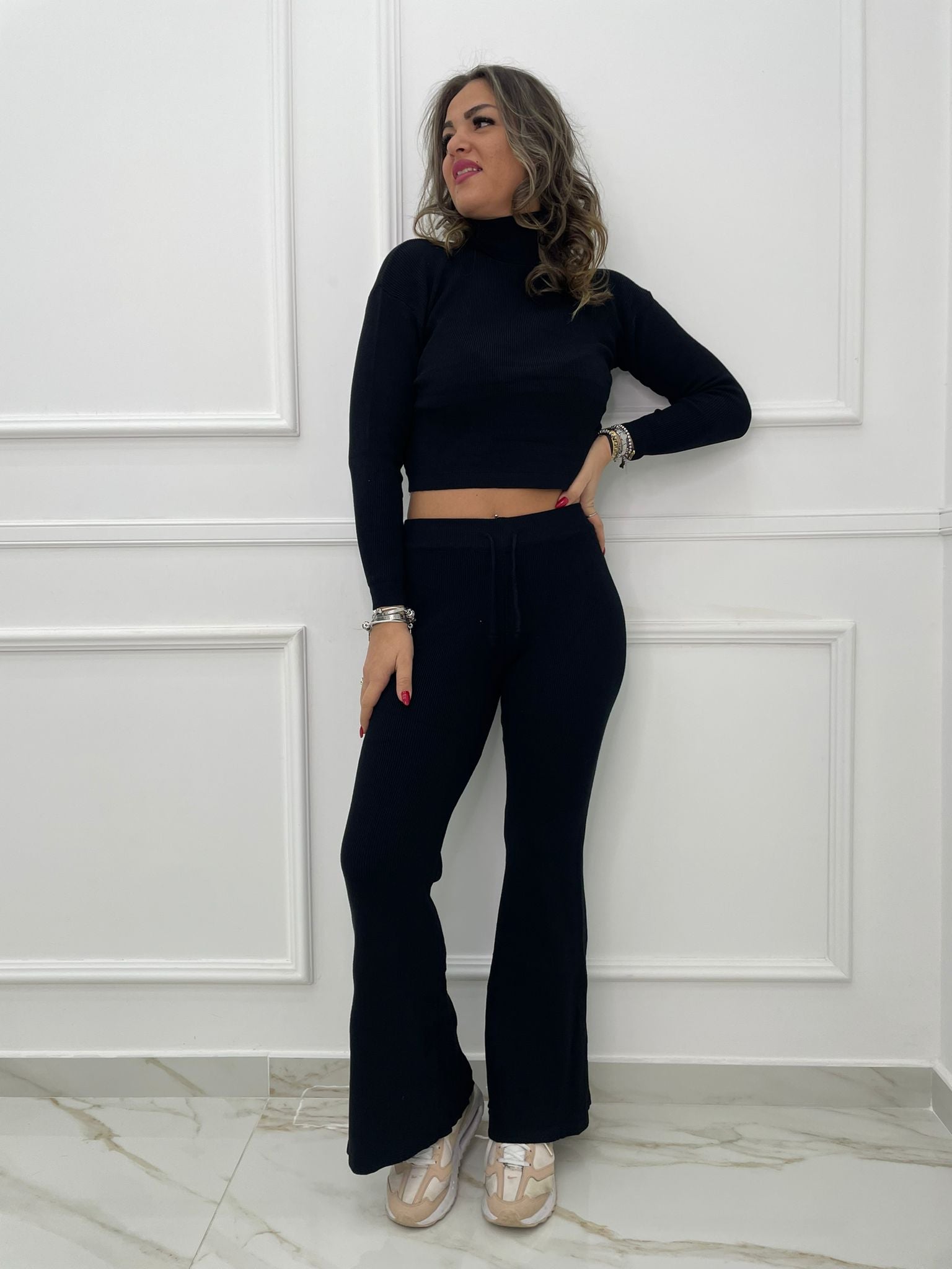 Coordinato 2 pezzi tinta unita con pantalone a zampa