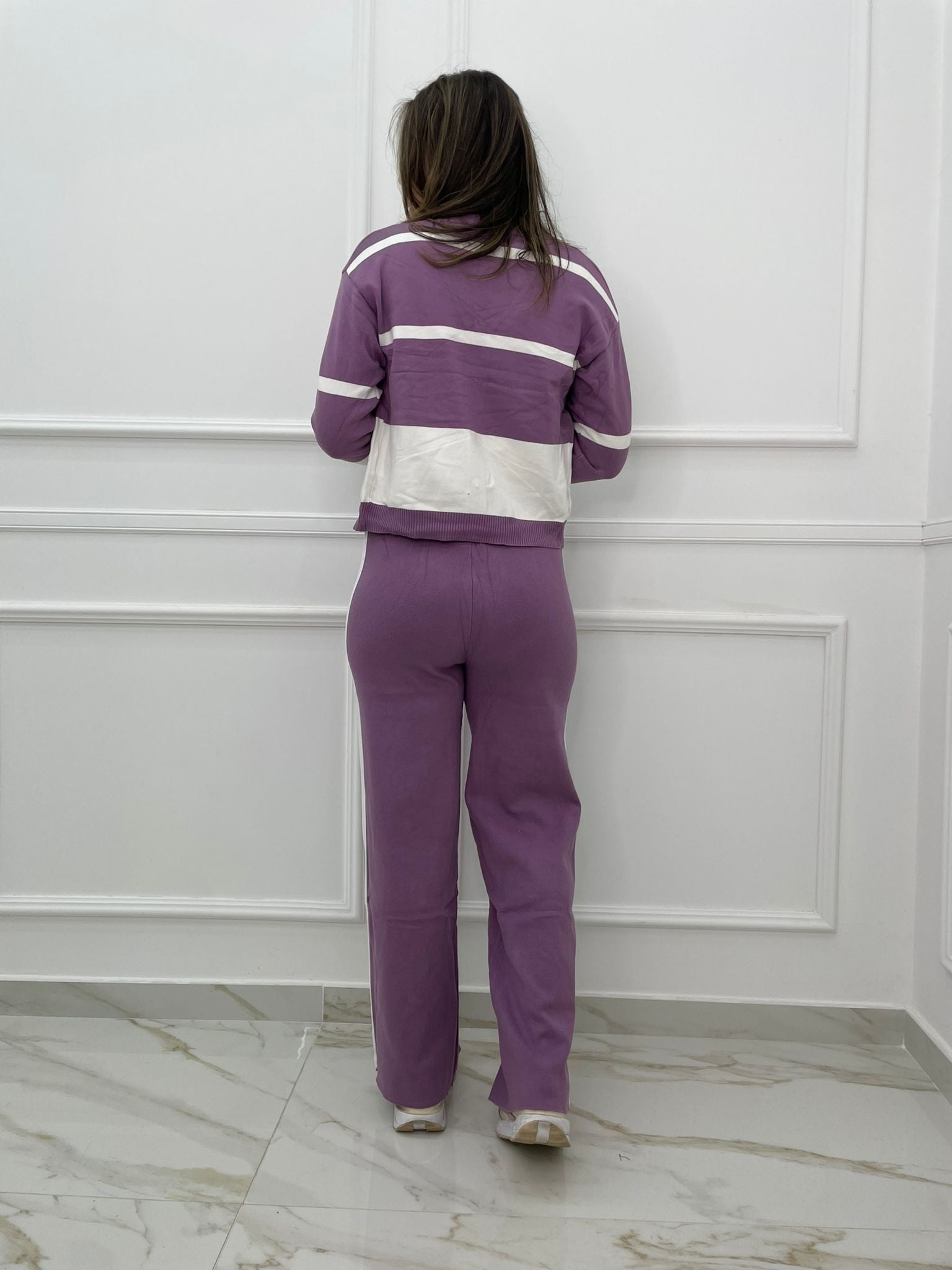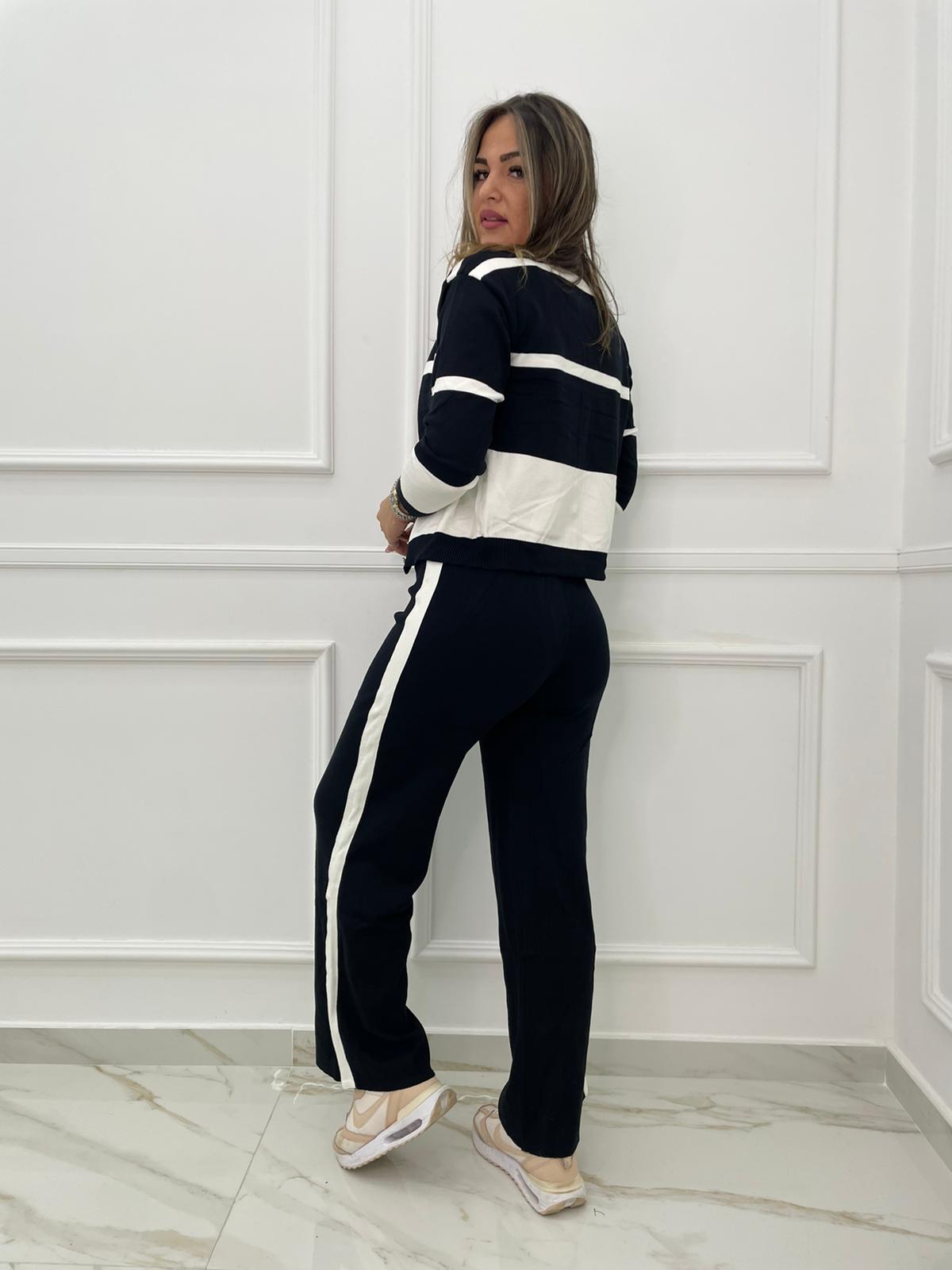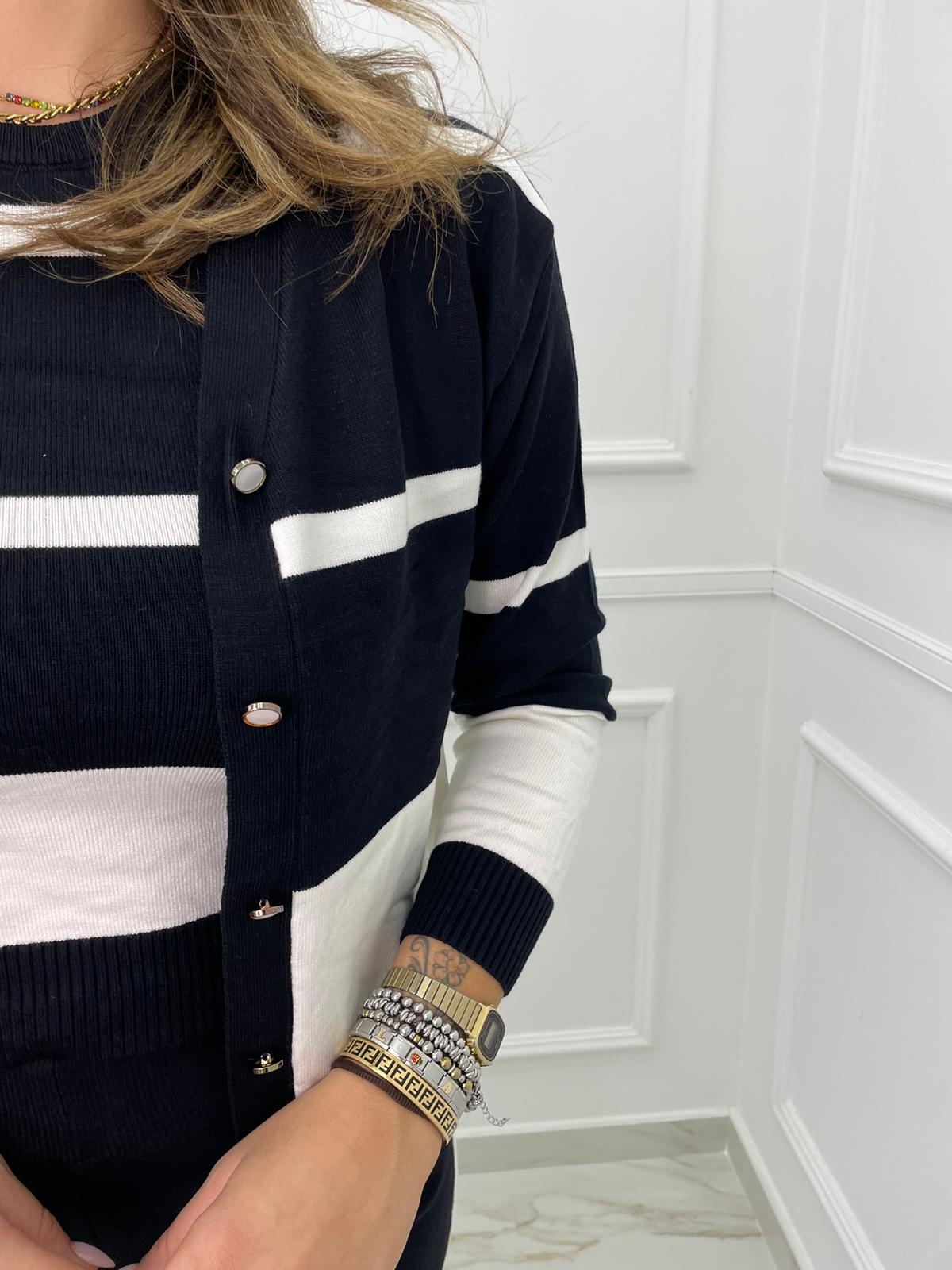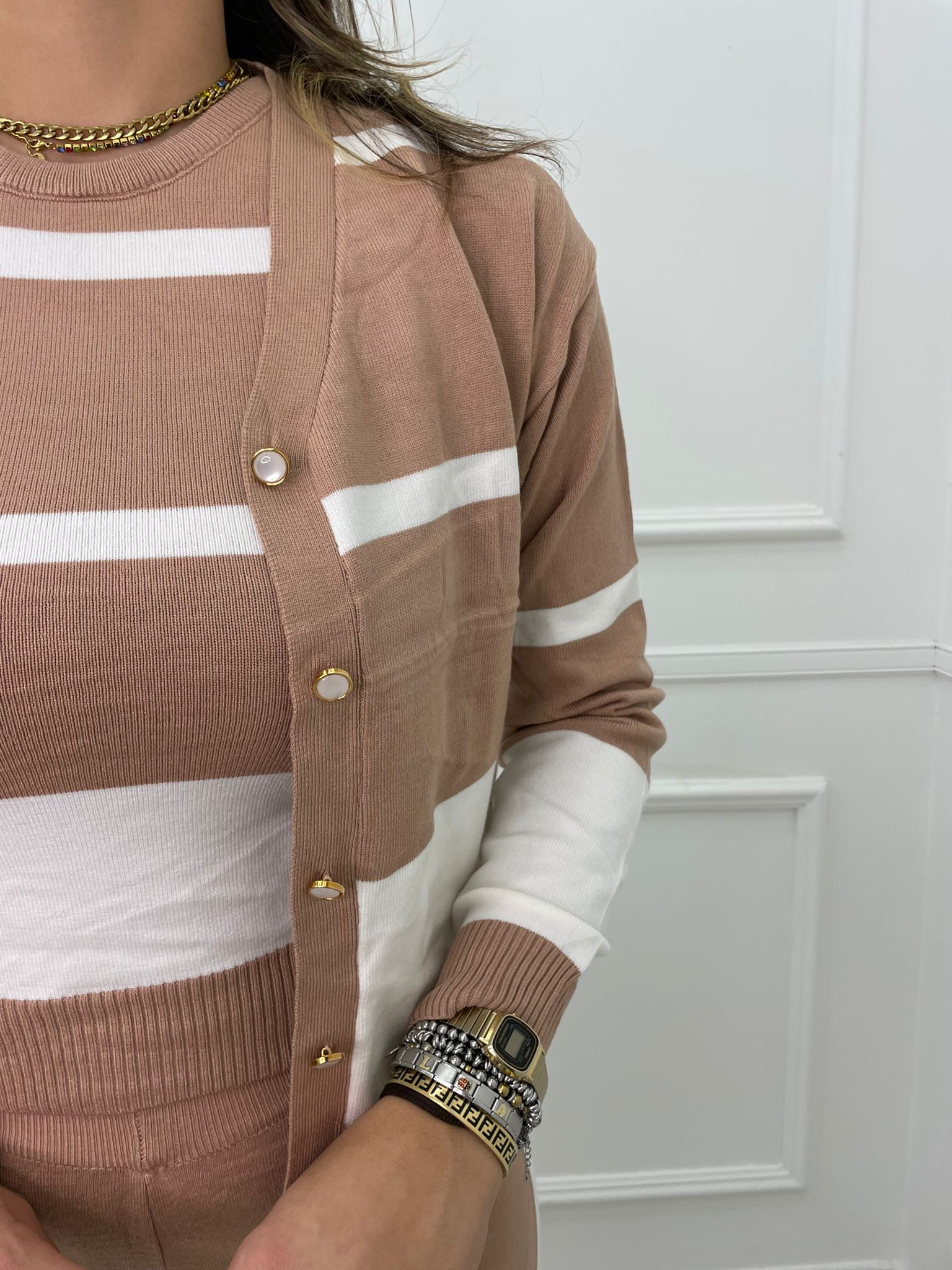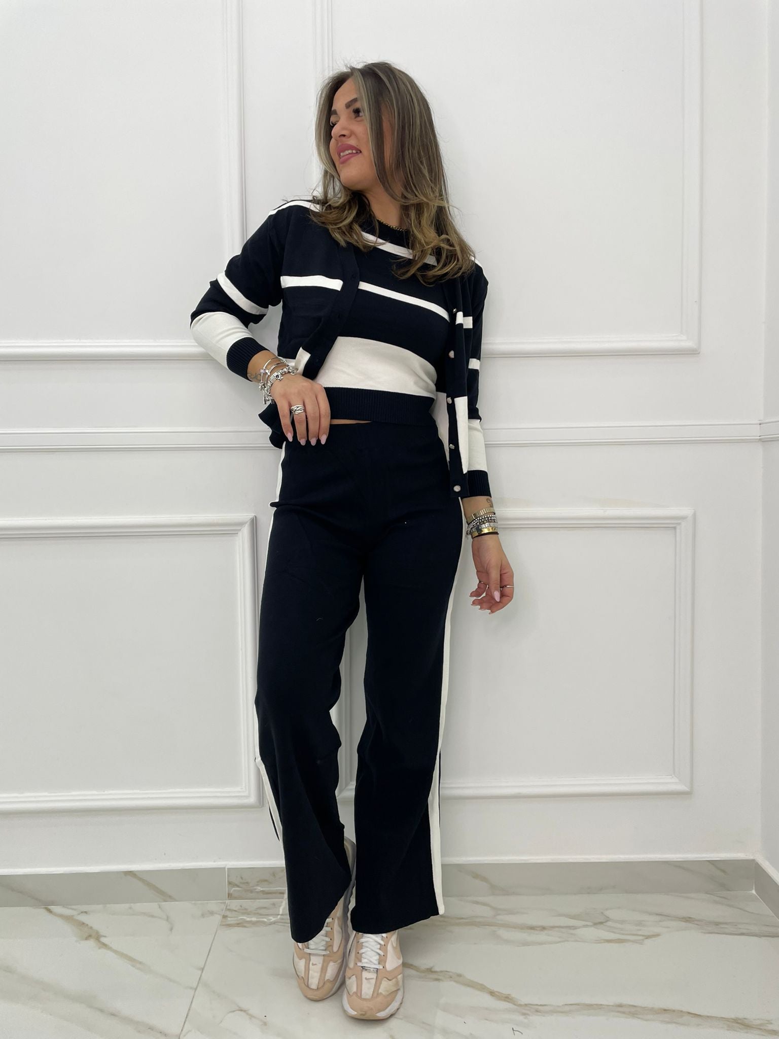 Coordinato 3 pezzi con pantalone palazzo e cardigan a righe