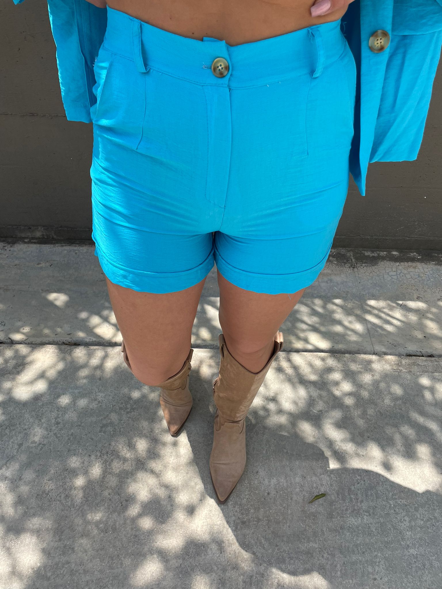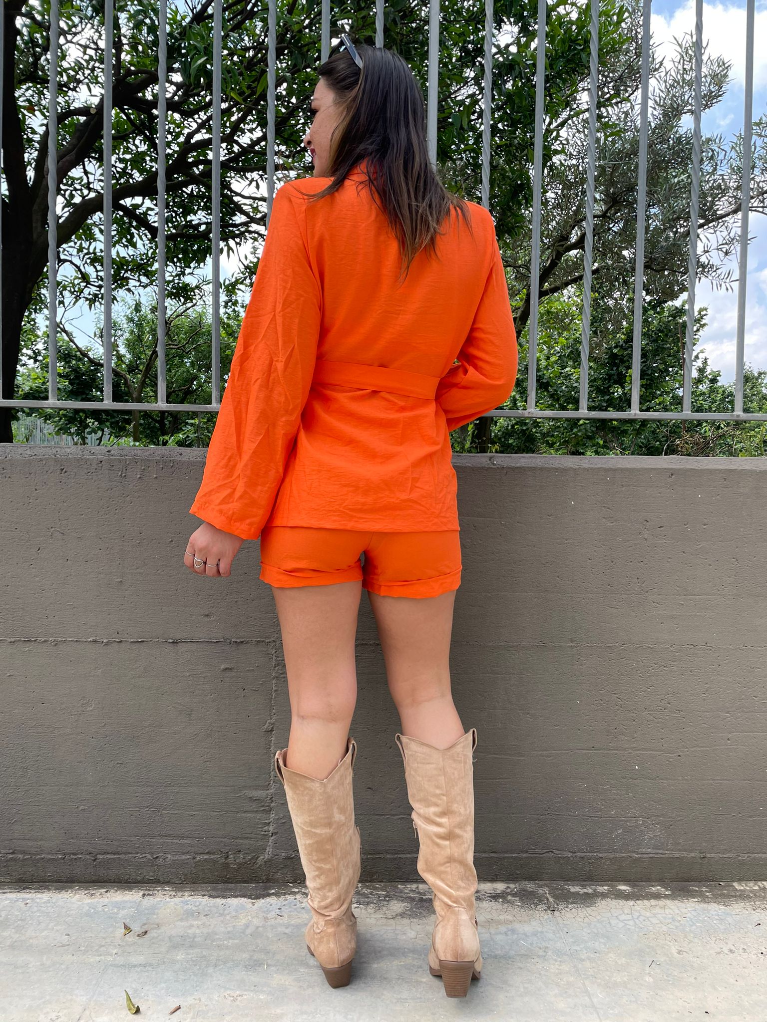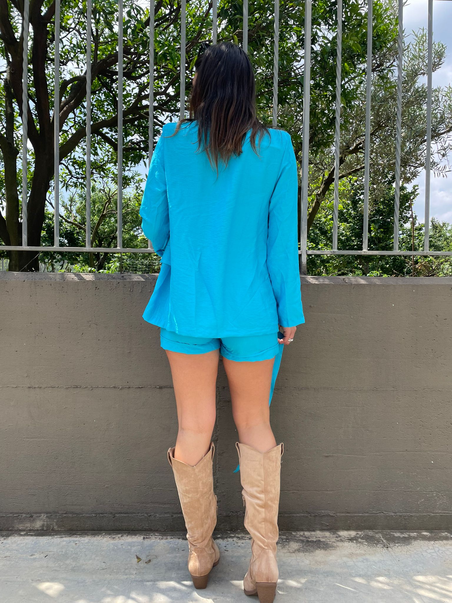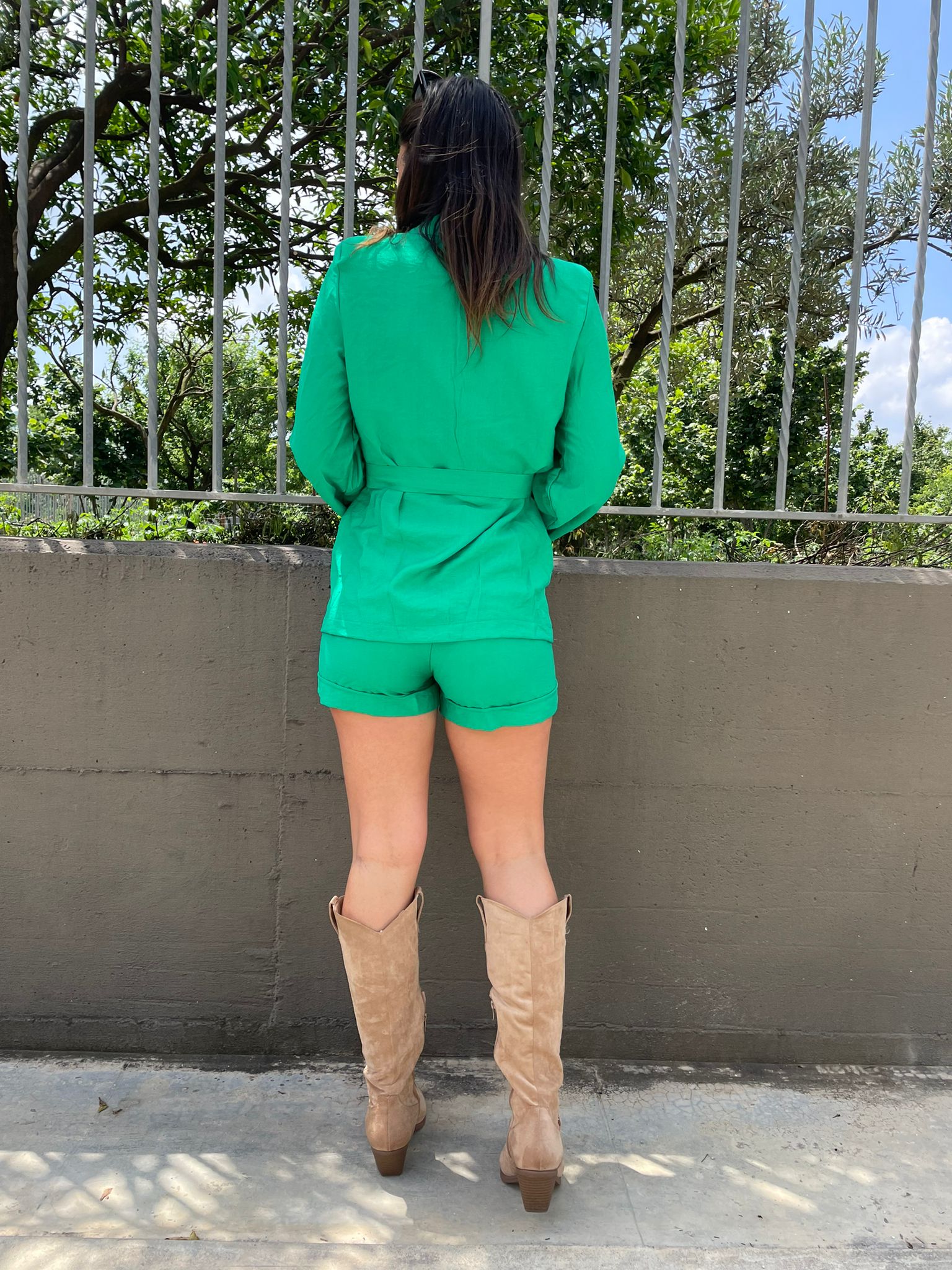 Coordinato 3 pezzi effetto lino con pantaloncino e top swarovski