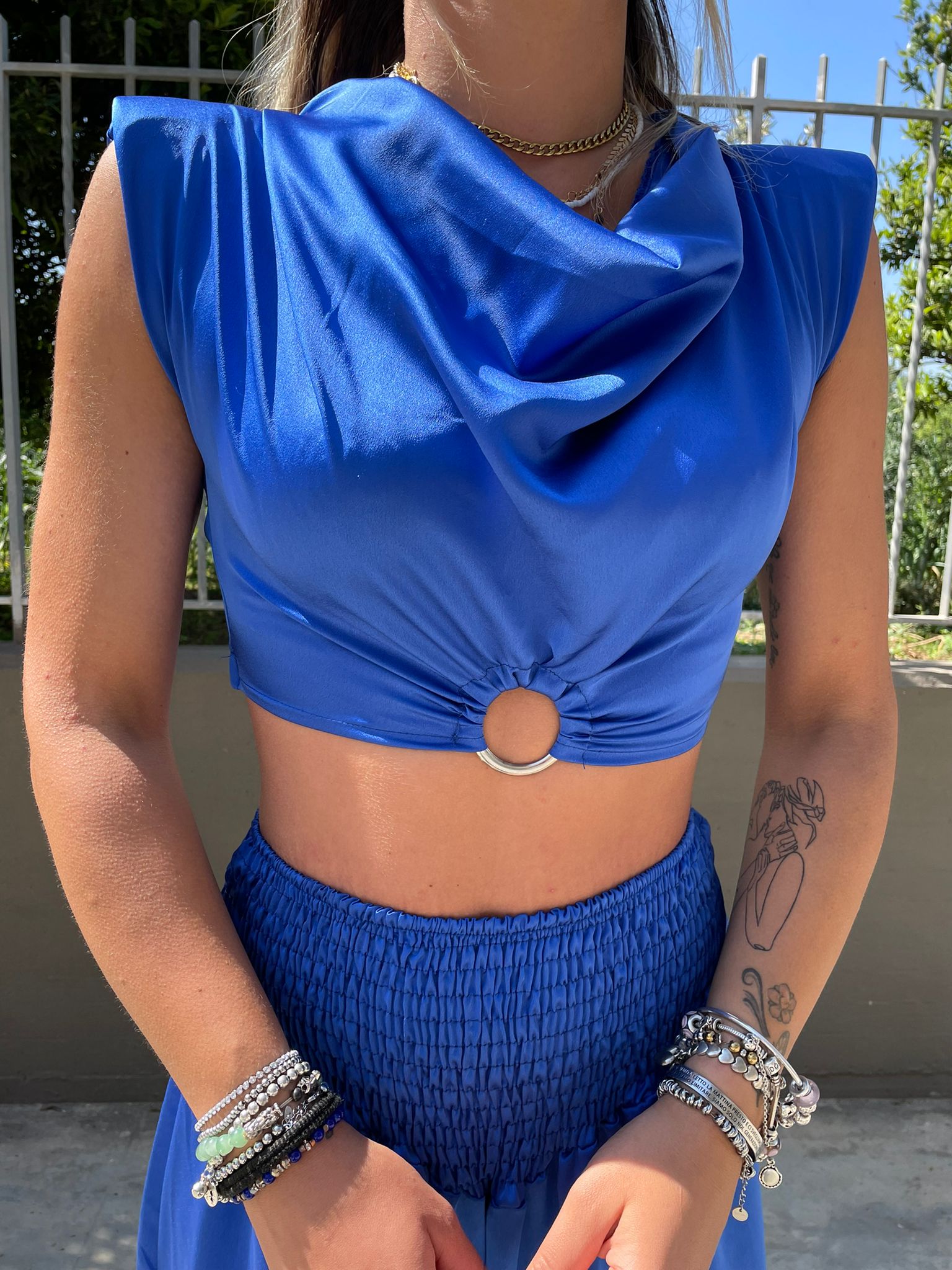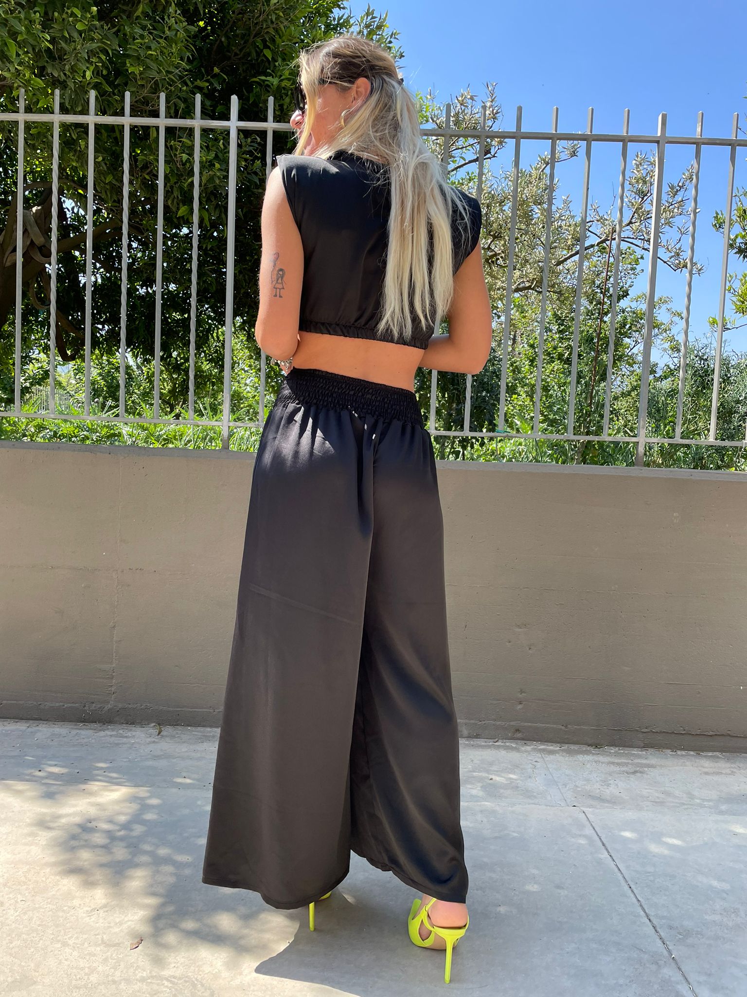 Coordinato effetto seta con pantalone palazzo e maglia con spalline